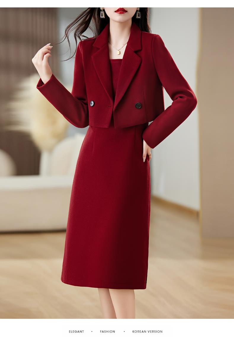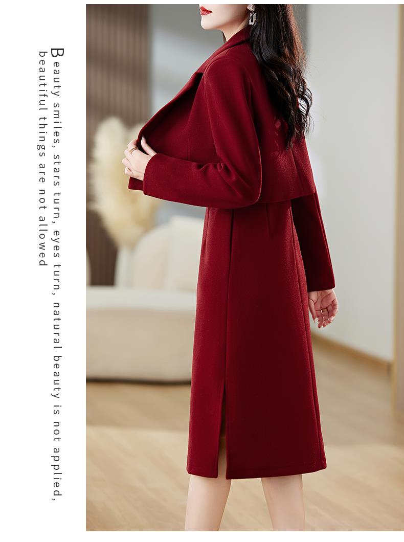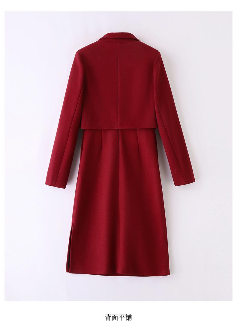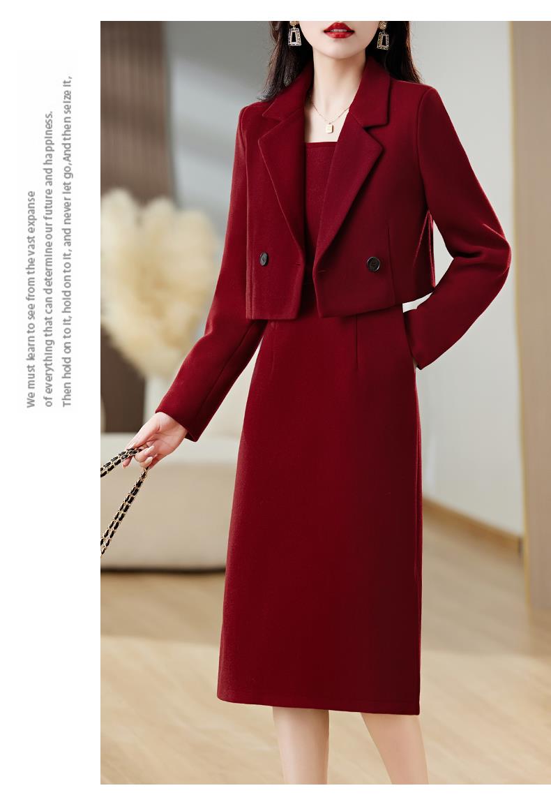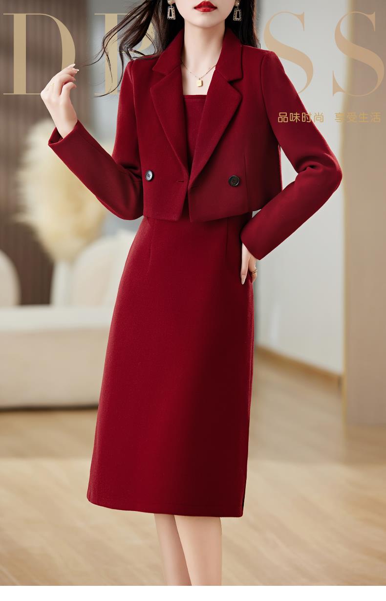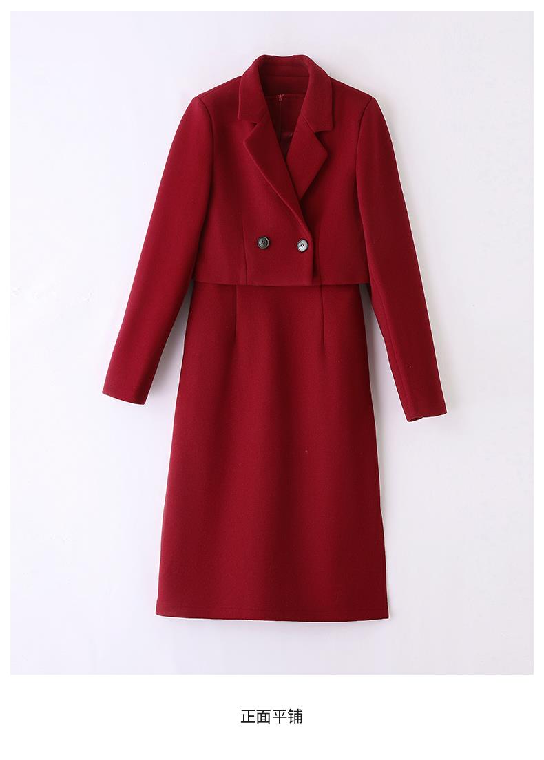红色毛呢套装女秋冬2023新款女装感气质时尚外套洋装搭配两件套