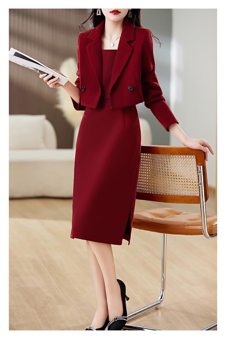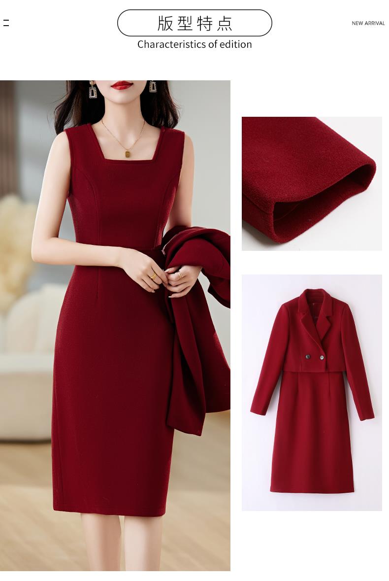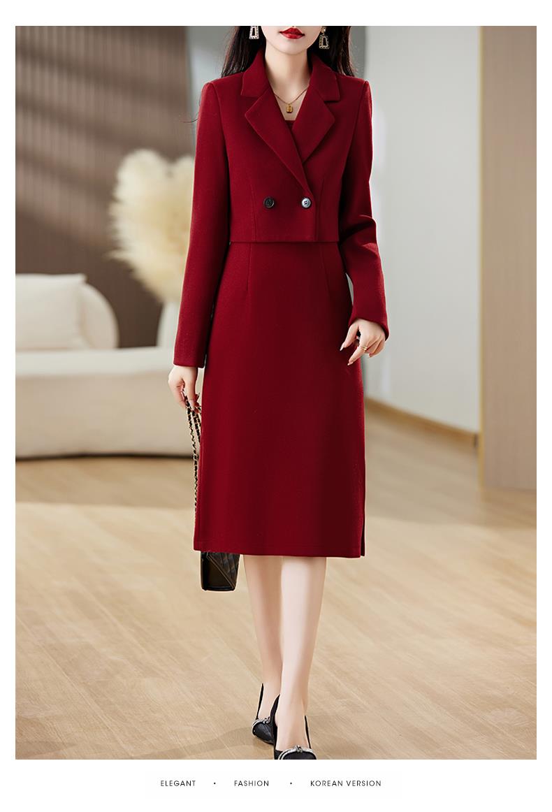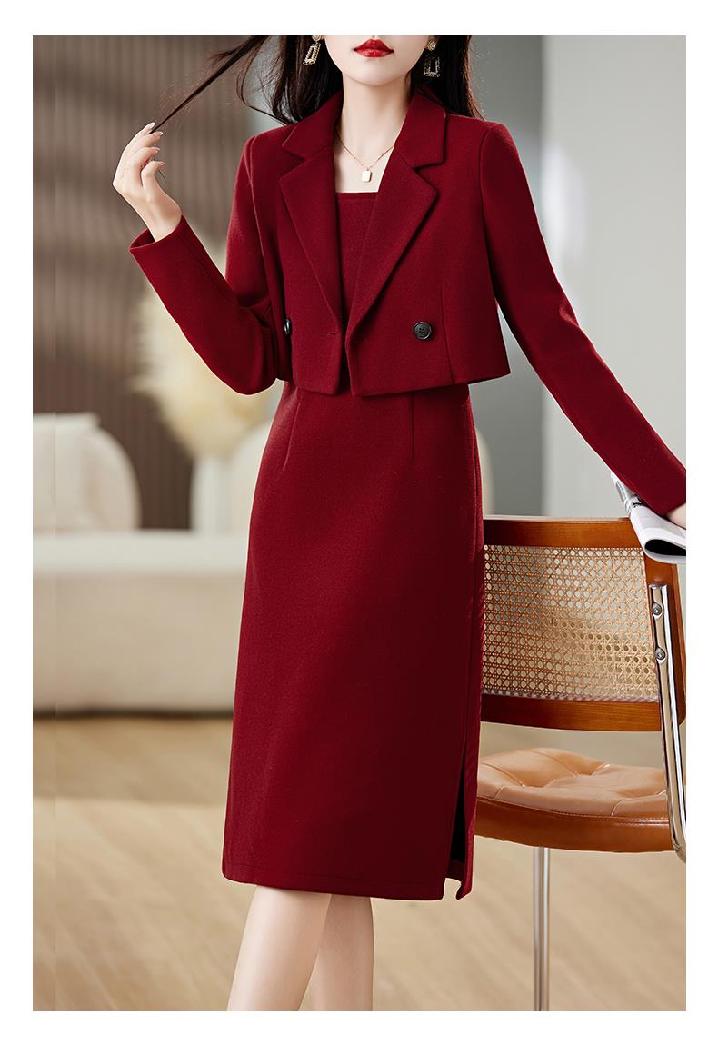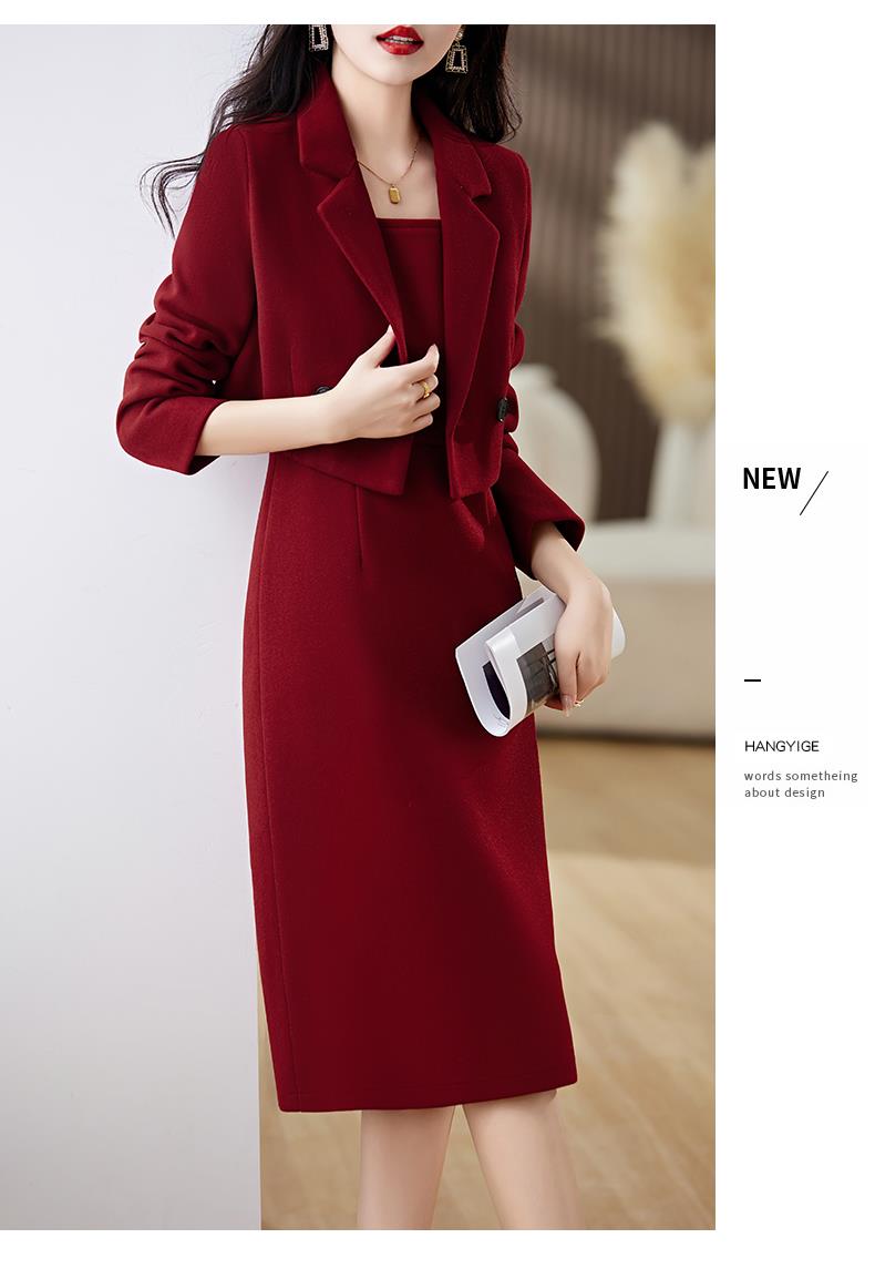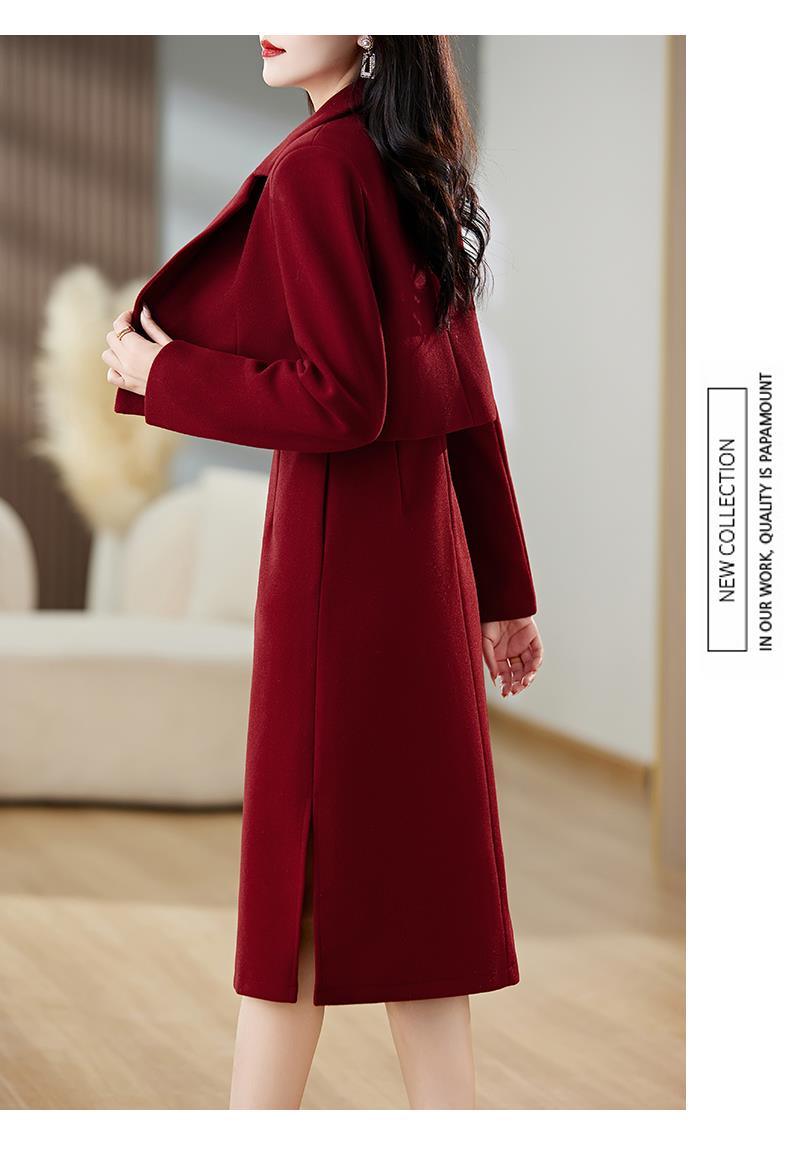 红色毛呢套装女秋冬2023新款女装感气质时尚外套洋装搭配两件套