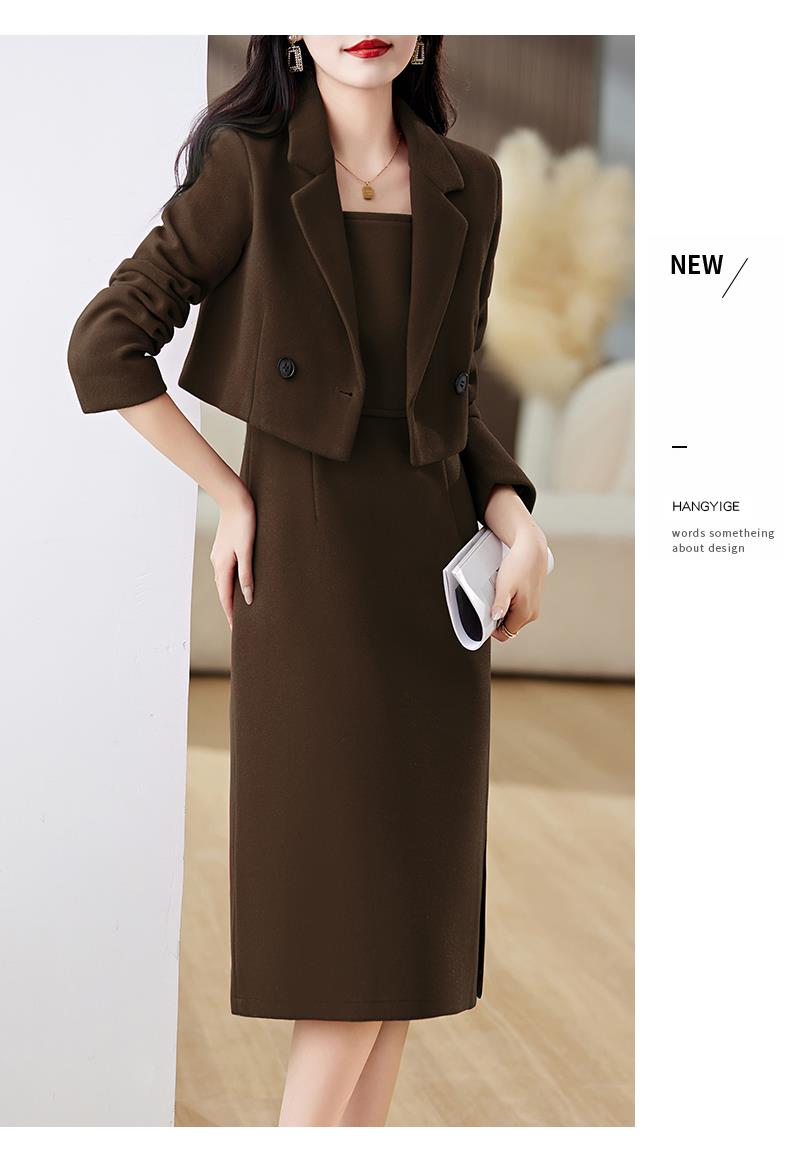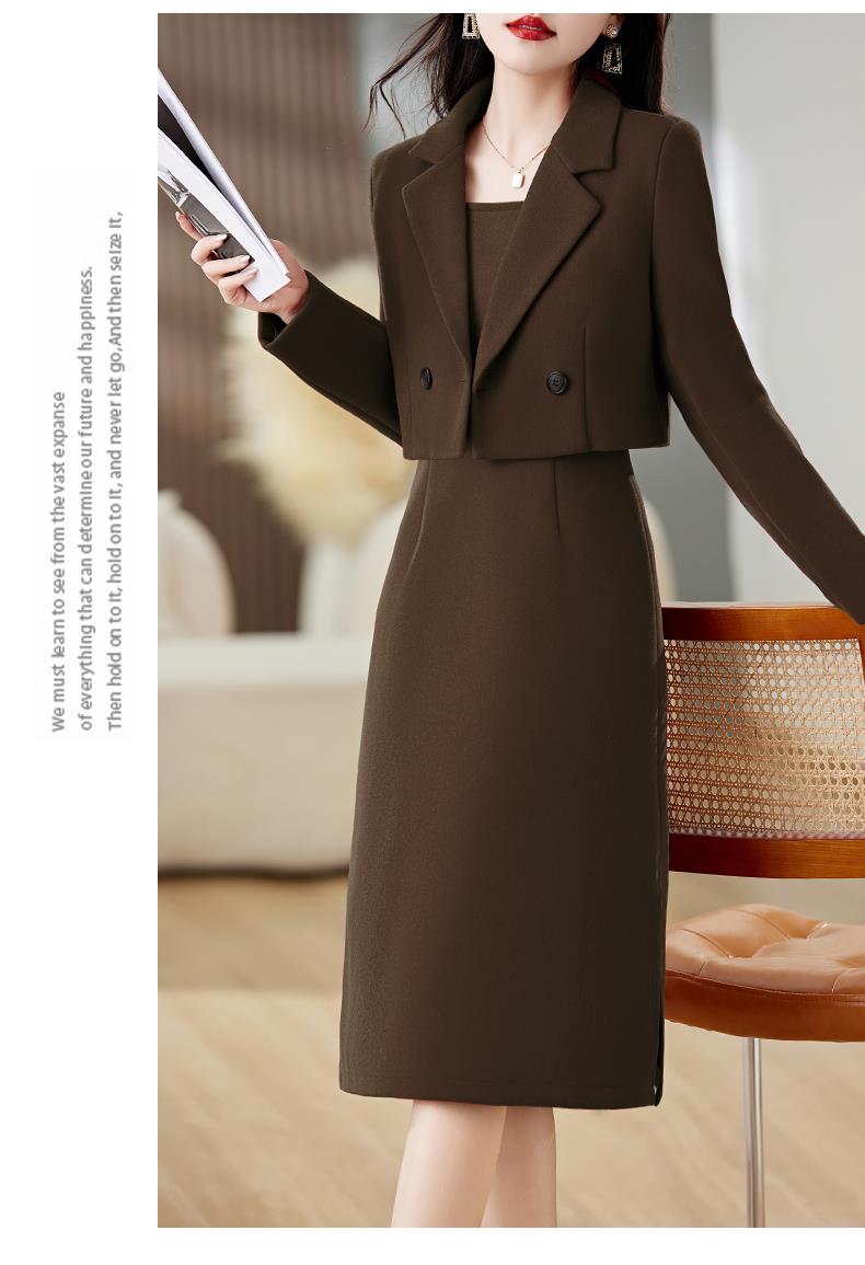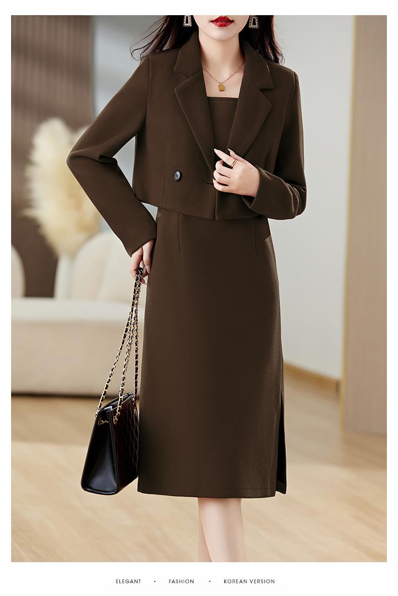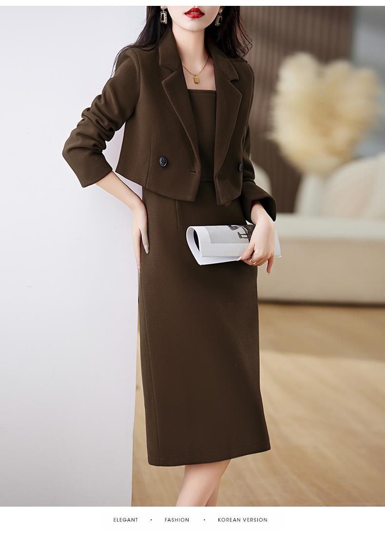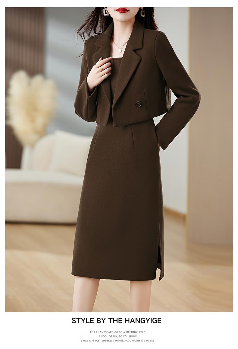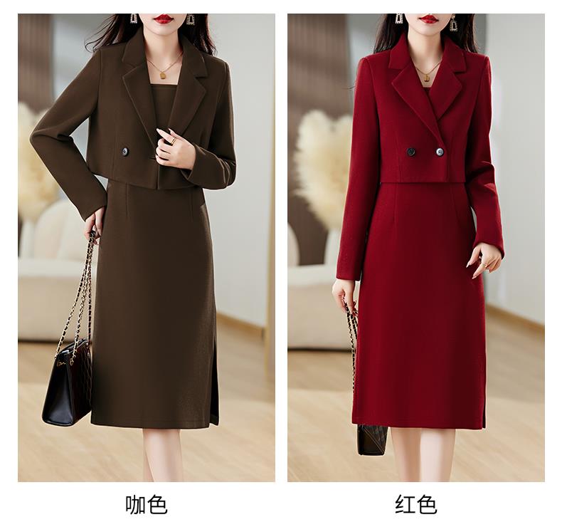 红色毛呢套装女秋冬2023新款女装感气质时尚外套洋装搭配两件套