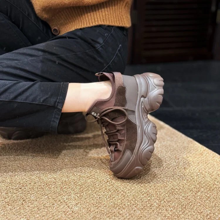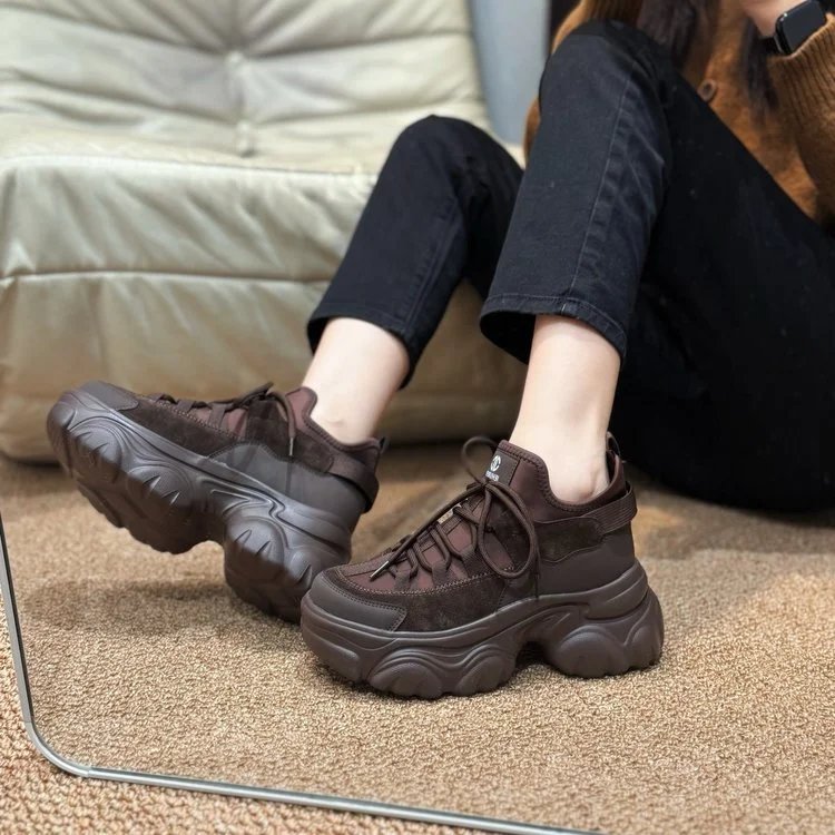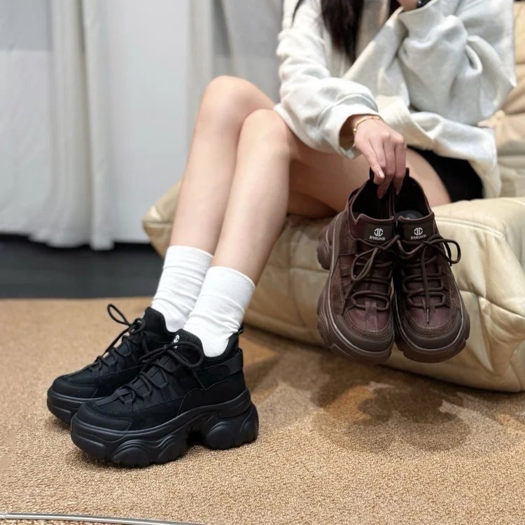 【JEHURFIE纪华菲】上新单里/绒里 专柜同款800拼接厚底老爹鞋,增高7cm,比手机还轻!牛绒皮莱卡鞋面,头层牛皮乳胶鞋垫 AB25569