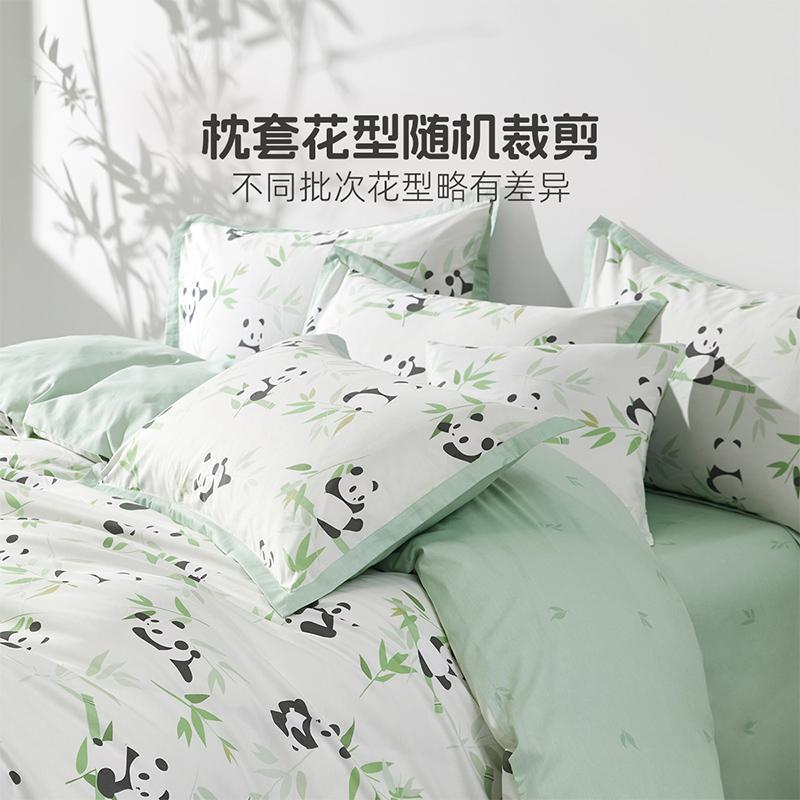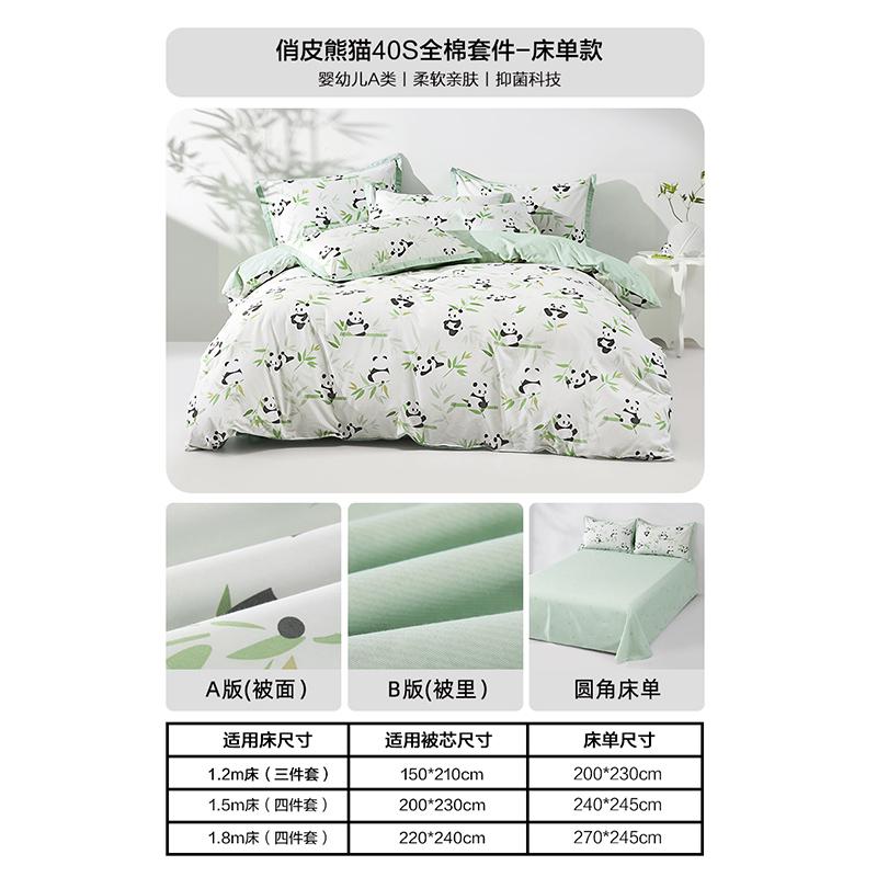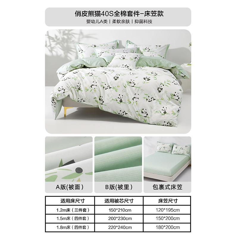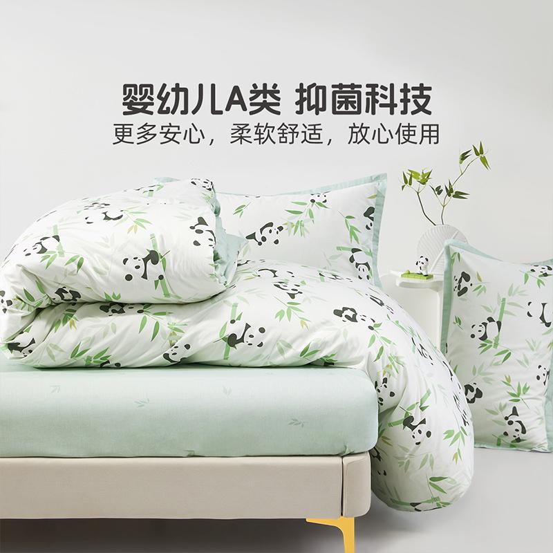 水星家纺kids系列母婴A类抗菌全棉俏皮熊猫床单/床笠款三/四件套