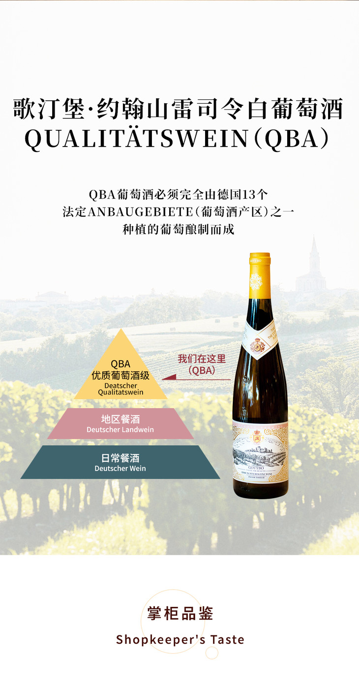 疯抢中!!【前500名买整箱多送2瓶+送电动开瓶器+送2支高脚杯】【德国原瓶进口】歌汀堡·雷司令半甜白葡萄酒 10%vol 750ml/瓶