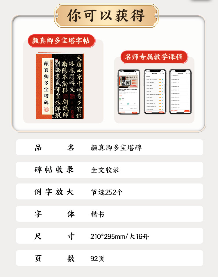 【书+课程】颜真卿多宝塔碑楷书字帖原碑全文收录例字放大视频教程墨点字帖