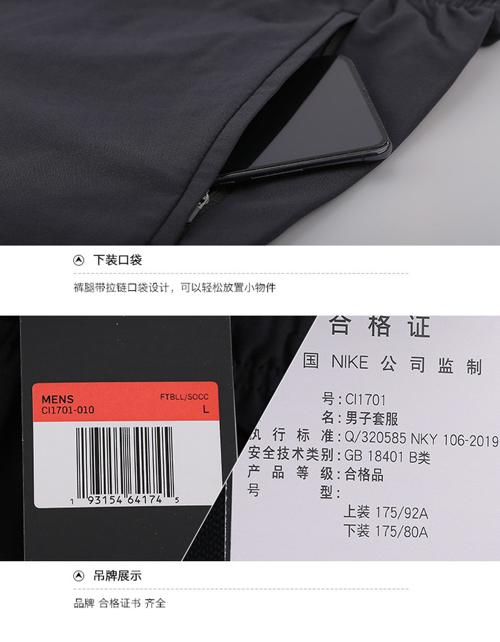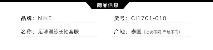 NIKE耐克足球运动训练长袖长裤套装男CI1701-010