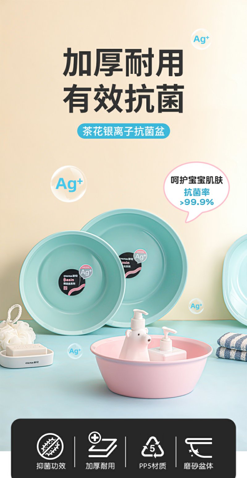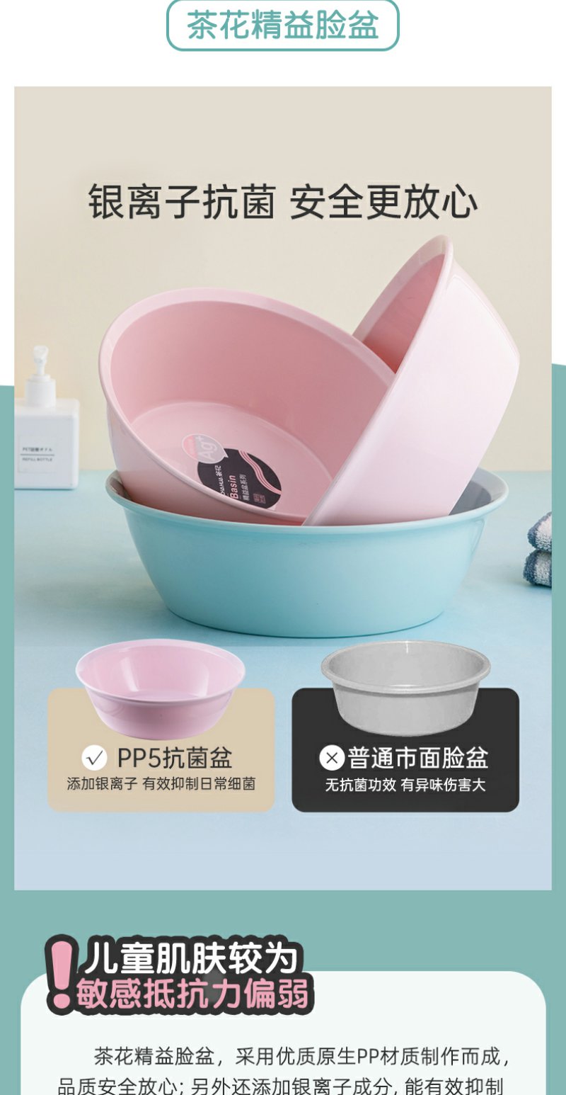 【茶花】精益抑菌抗菌脸盆儿童洗脸盆