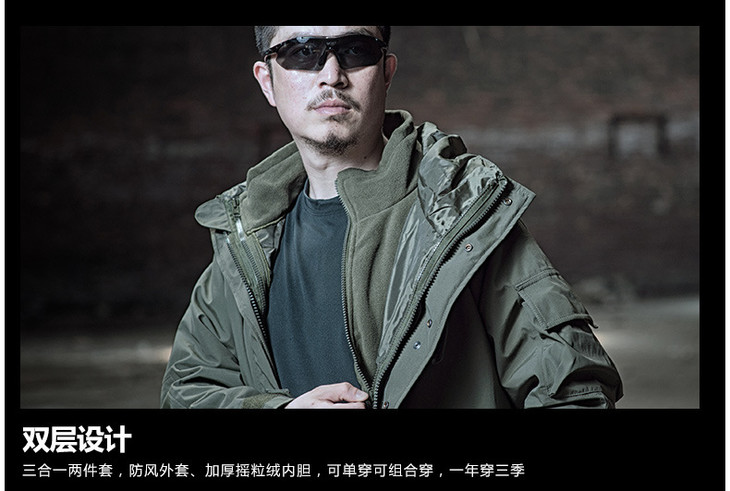 G8战术风衣外套全压胶双层防风防水户外战术三合一外套 保暖设计 内胆可拆卸