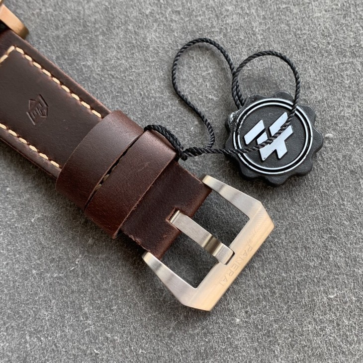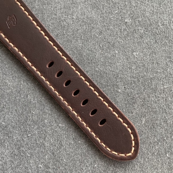 【字面】极具辨识性大表盘,与青铜相呼应的棕色表盘深邃沉稳,刻度钉精致圆润,填充超强夜光,3字位简洁的日历窗口对应9字位沛纳海经典的小秒盘。