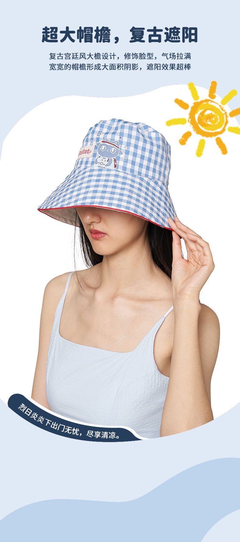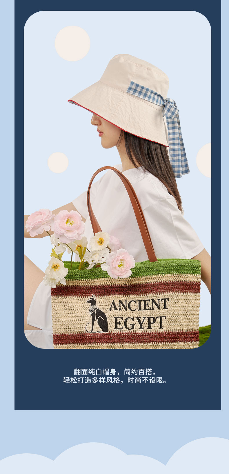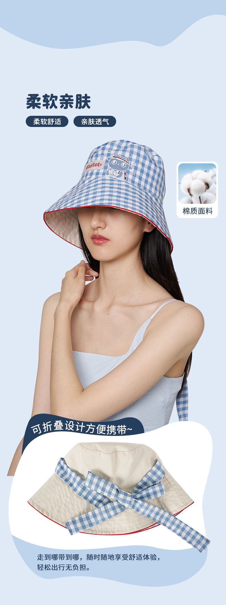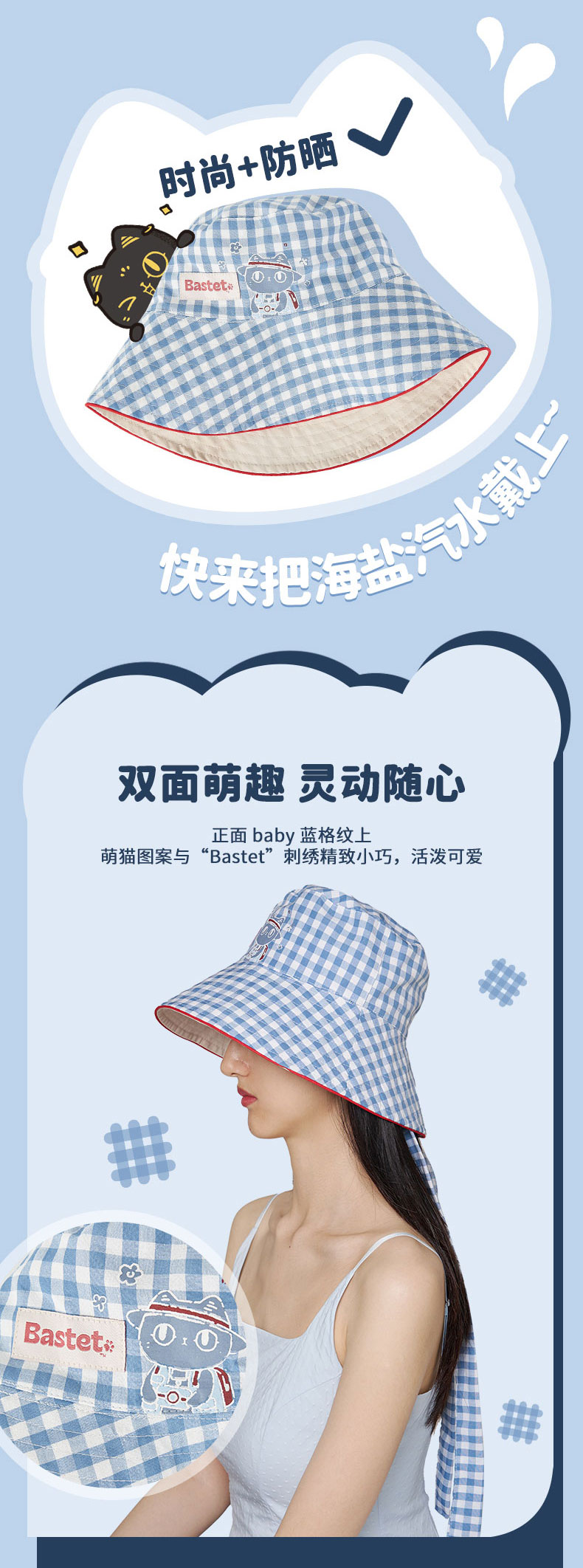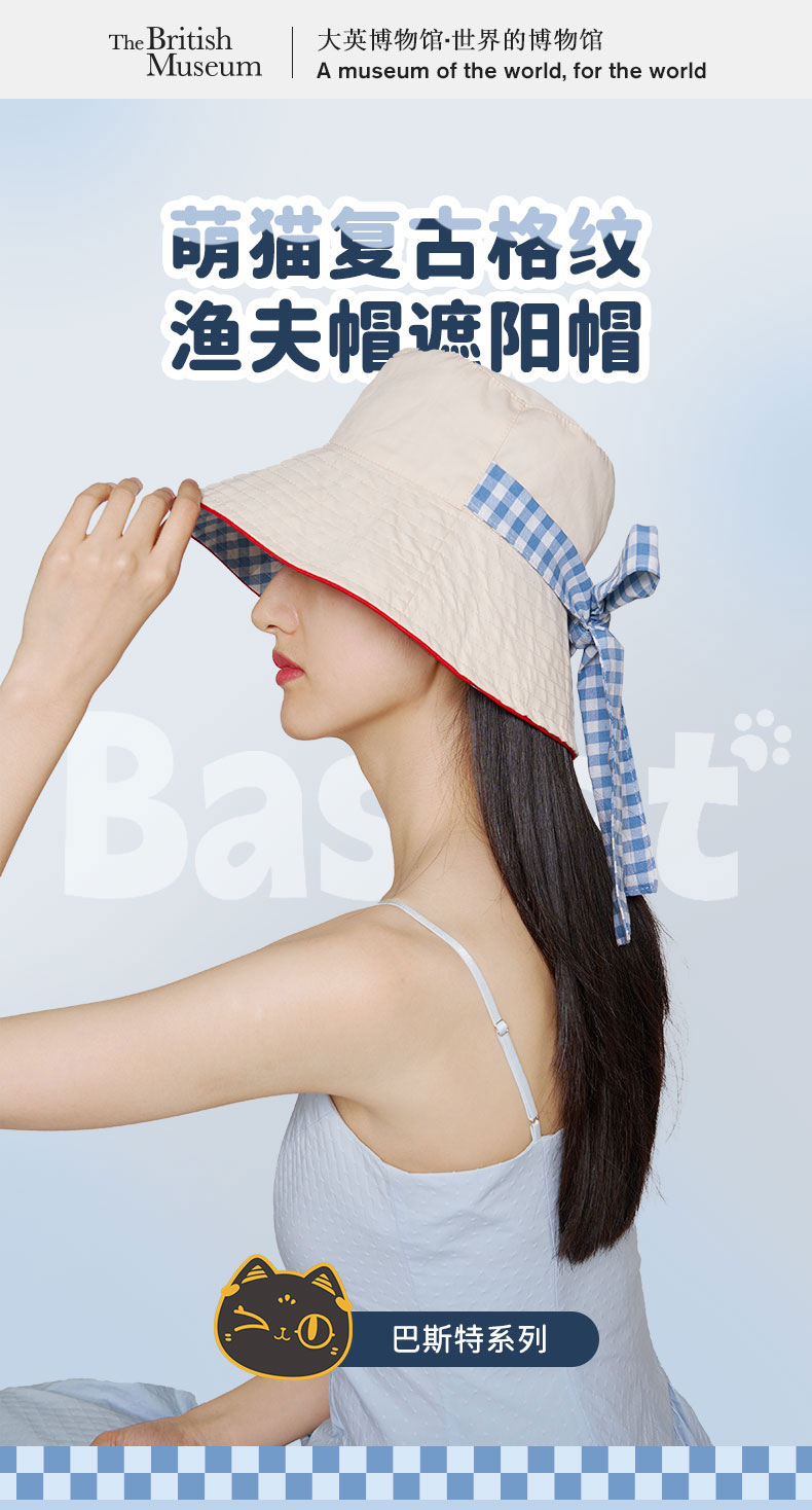 大英博物馆 巴斯特系列 萌猫复古 格纹 渔夫帽遮阳帽