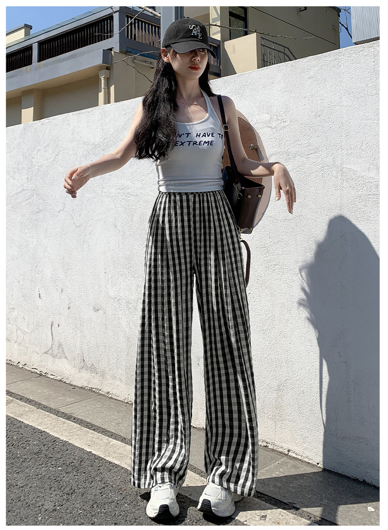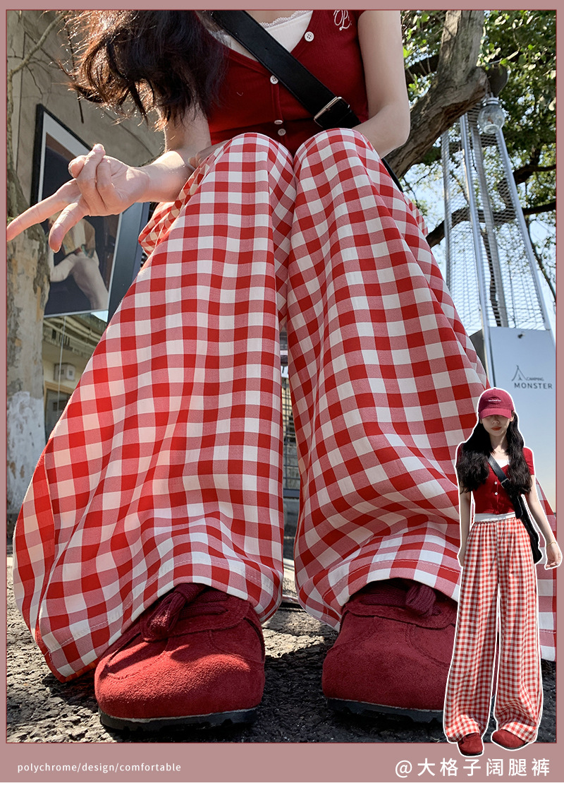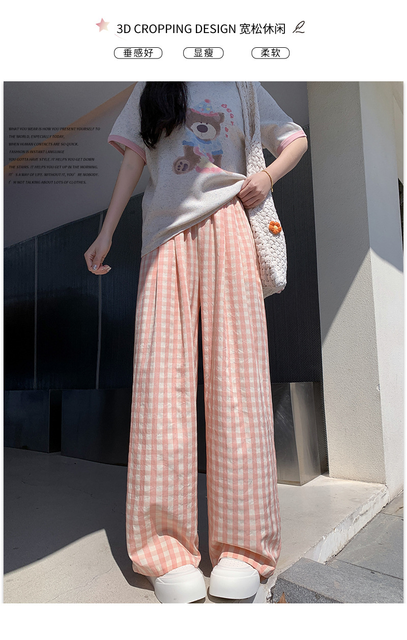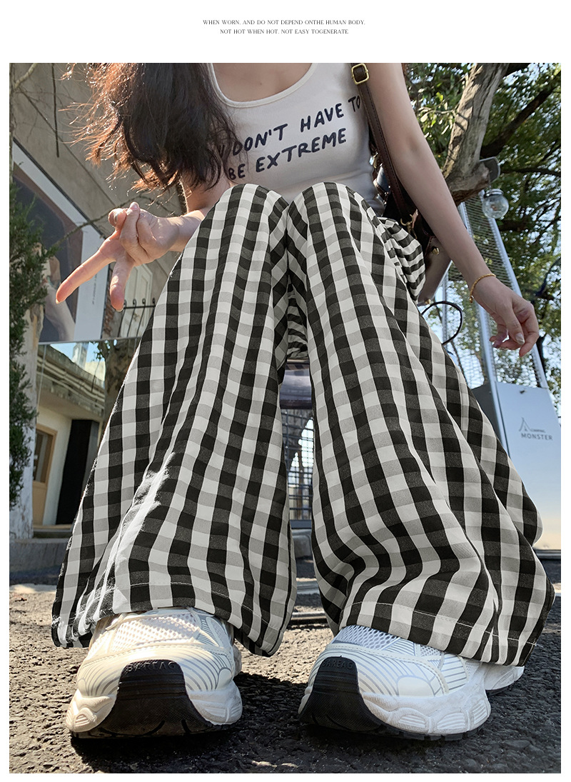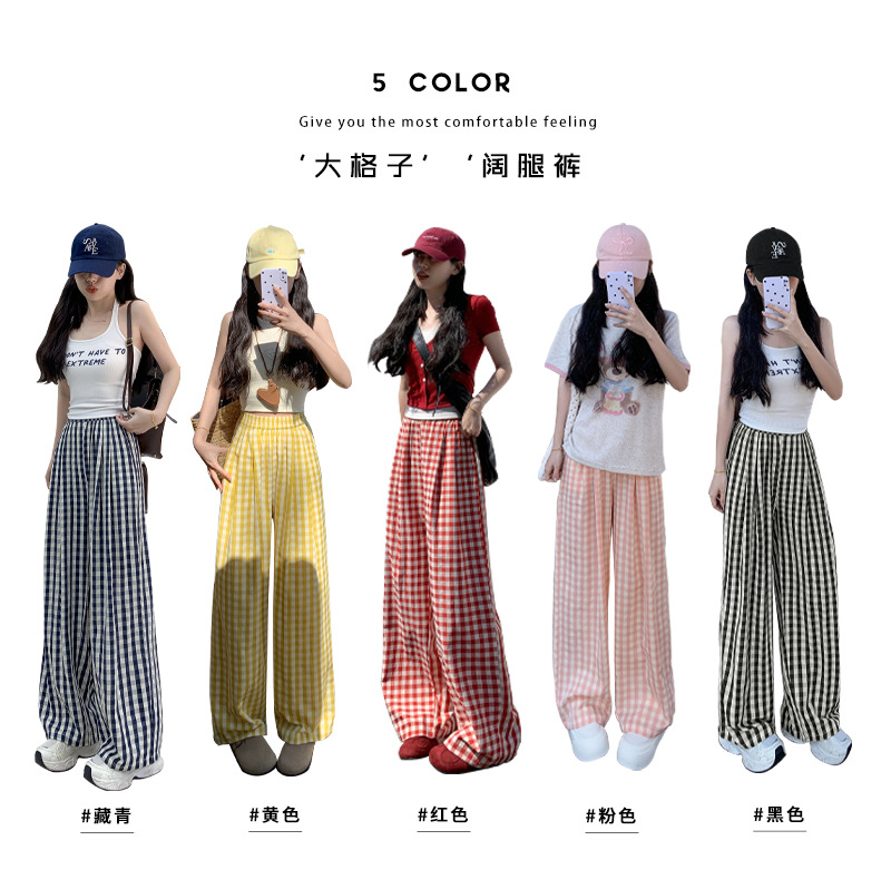 【YW】无忧购韩系慵懒风大格子休闲垂感阔腿裤H-1741(截单后3-5天发货)