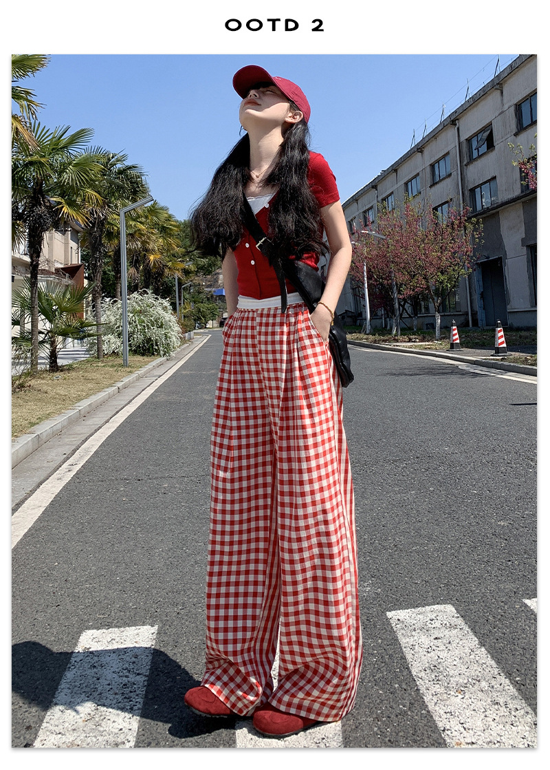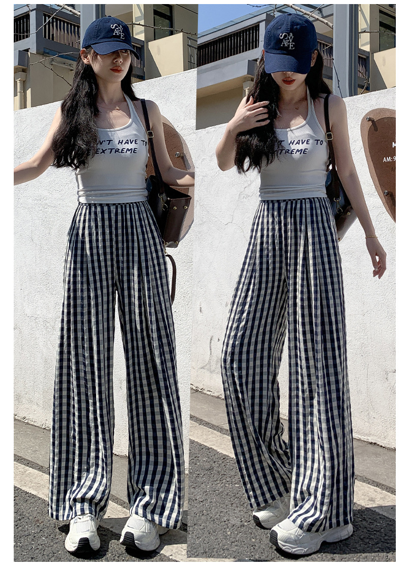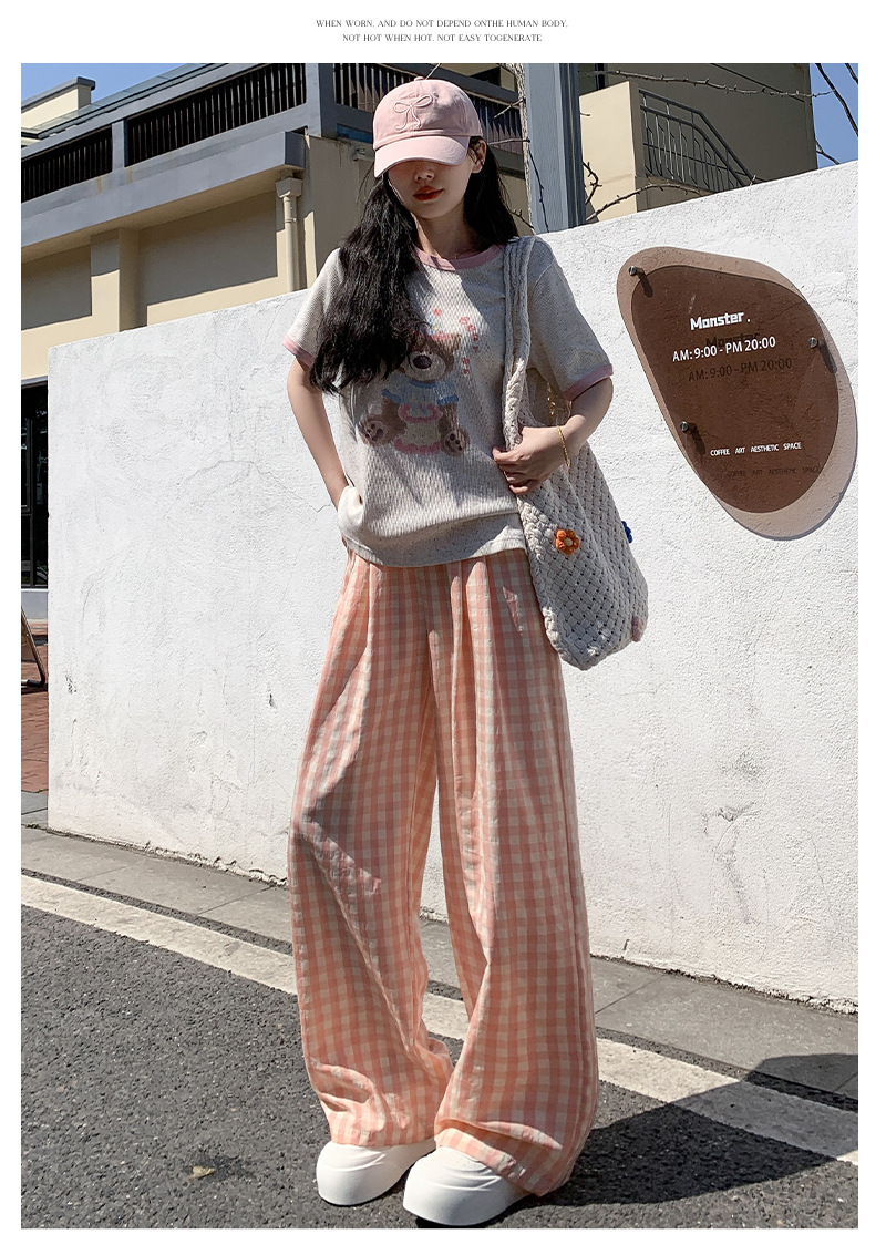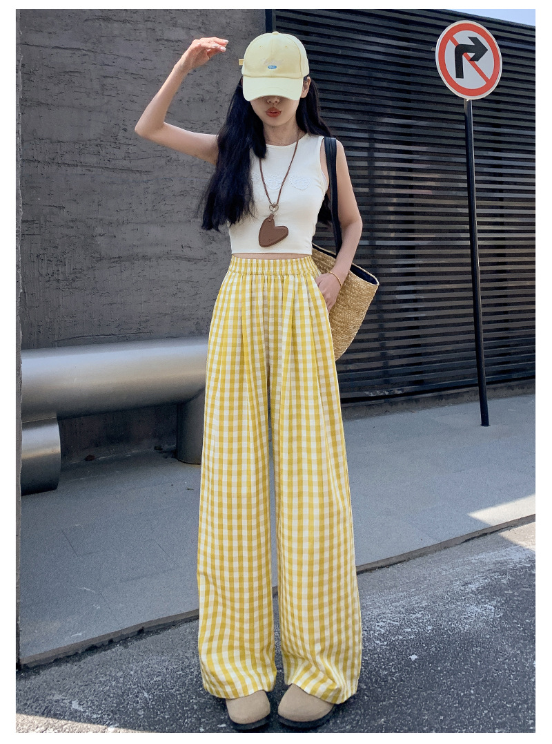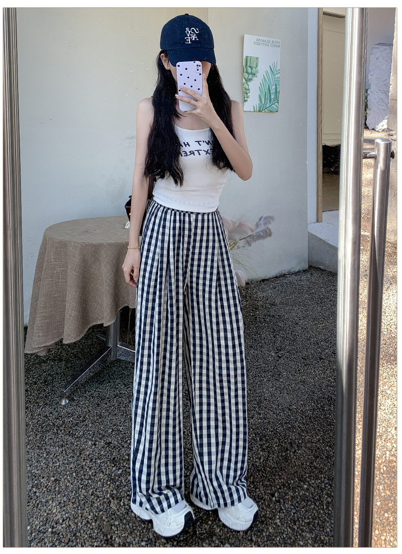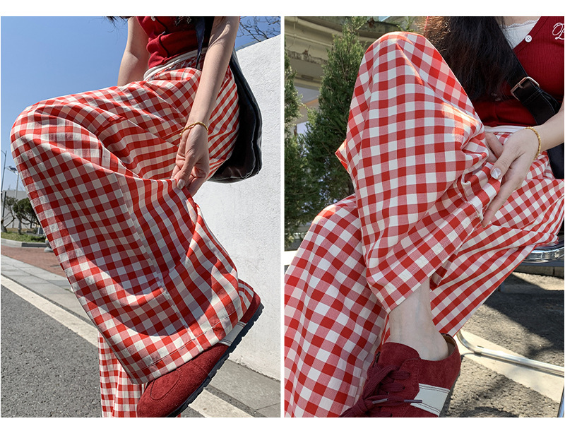 【YW】无忧购韩系慵懒风大格子休闲垂感阔腿裤H-1741(截单后3-5天发货)