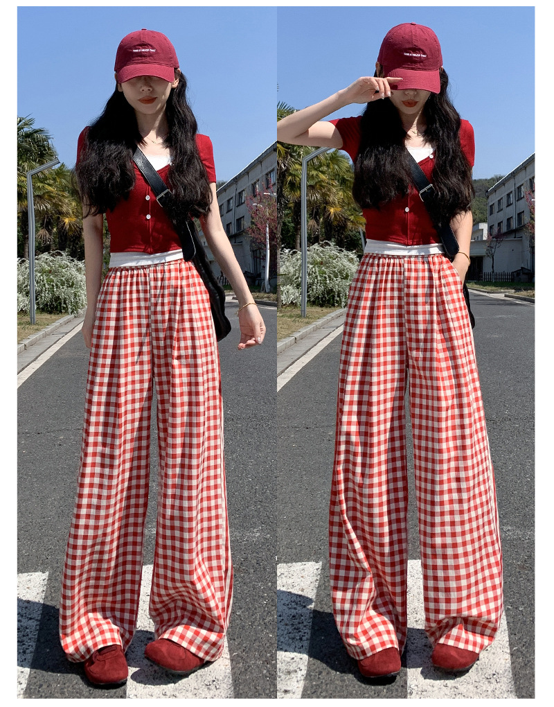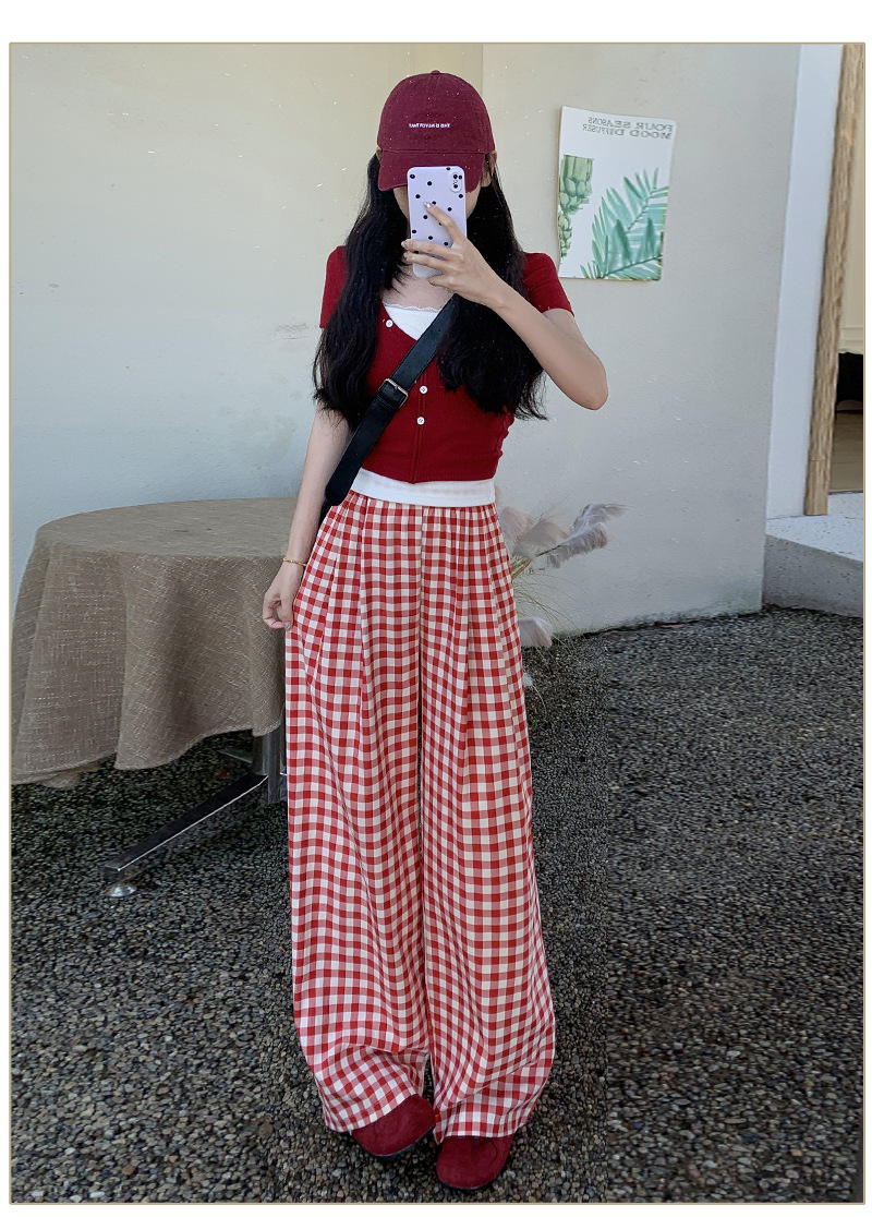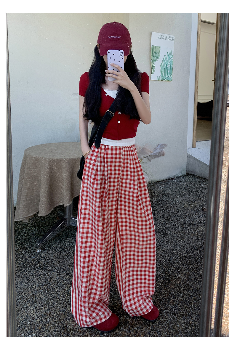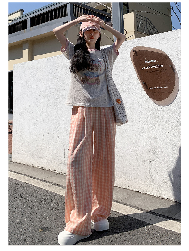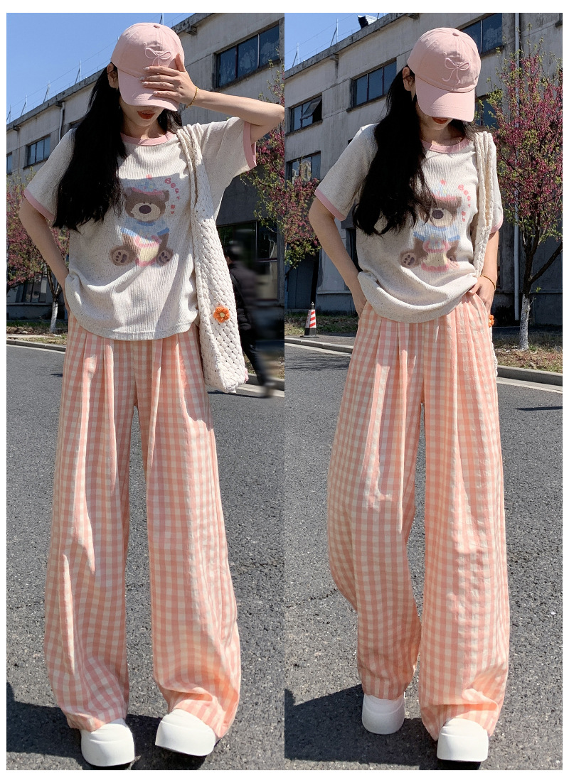 【YW】无忧购韩系慵懒风大格子休闲垂感阔腿裤H-1741(截单后3-5天发货)