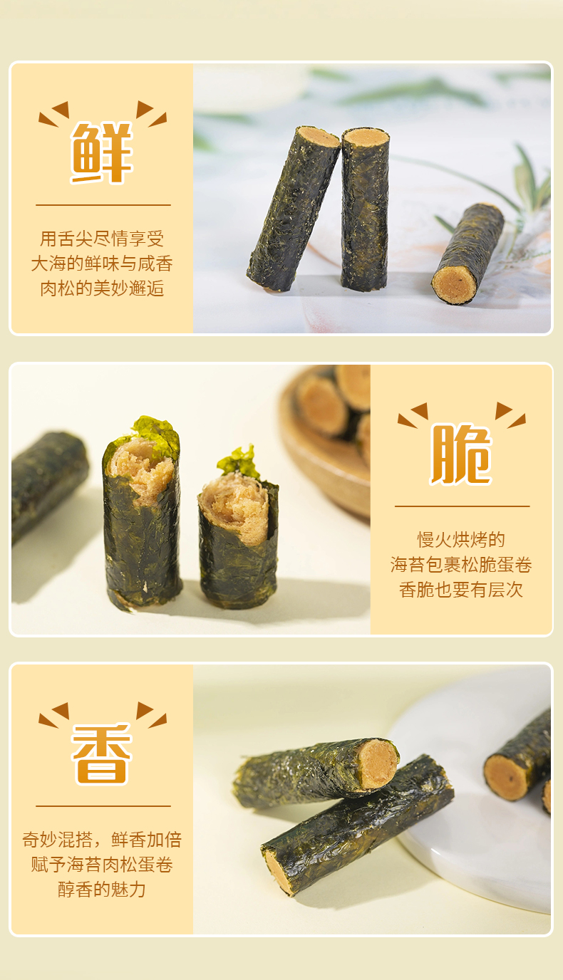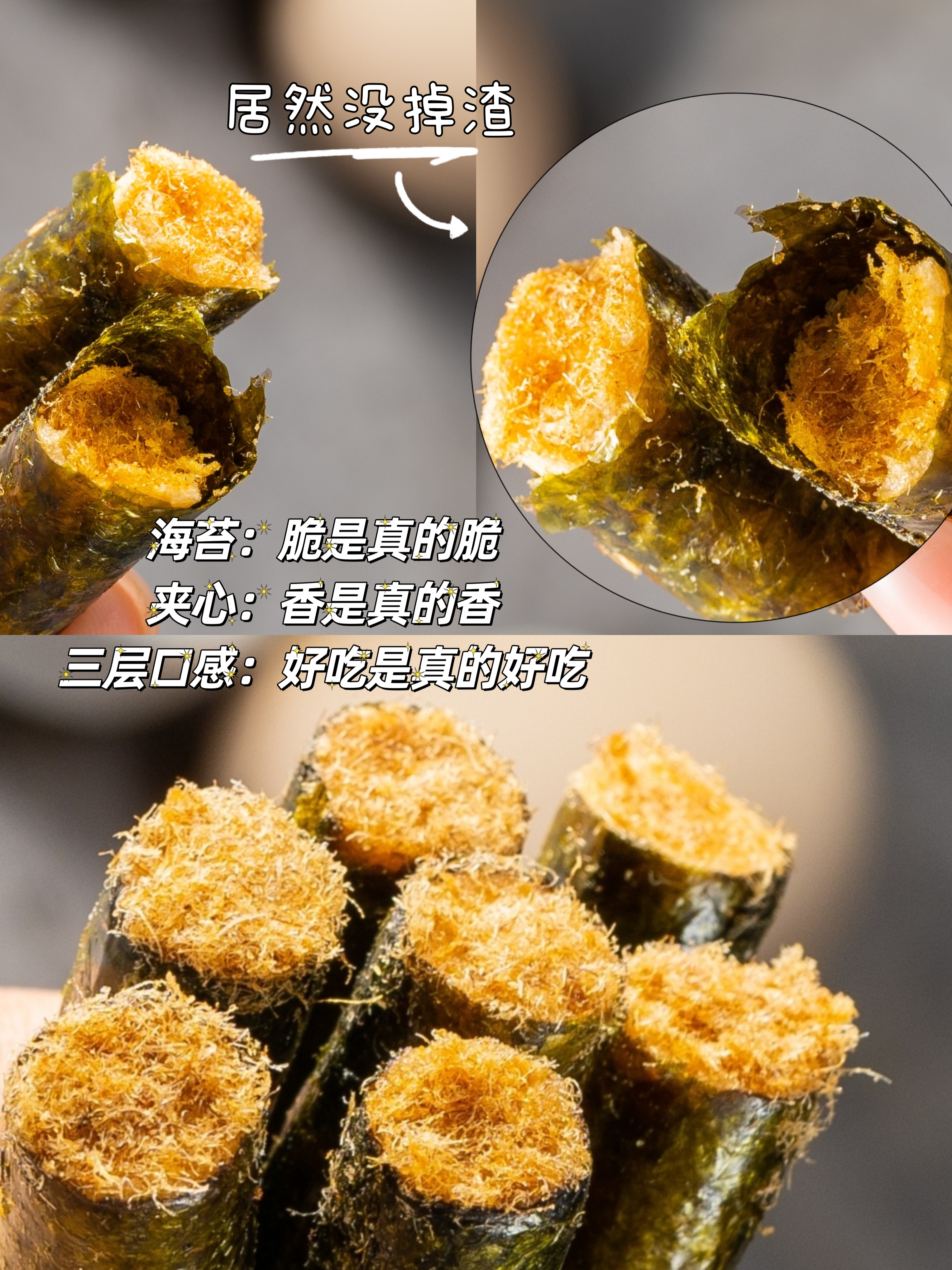 咬一口满嘴都是浓郁的海苔蛋卷肉松香气,酥到掉渣