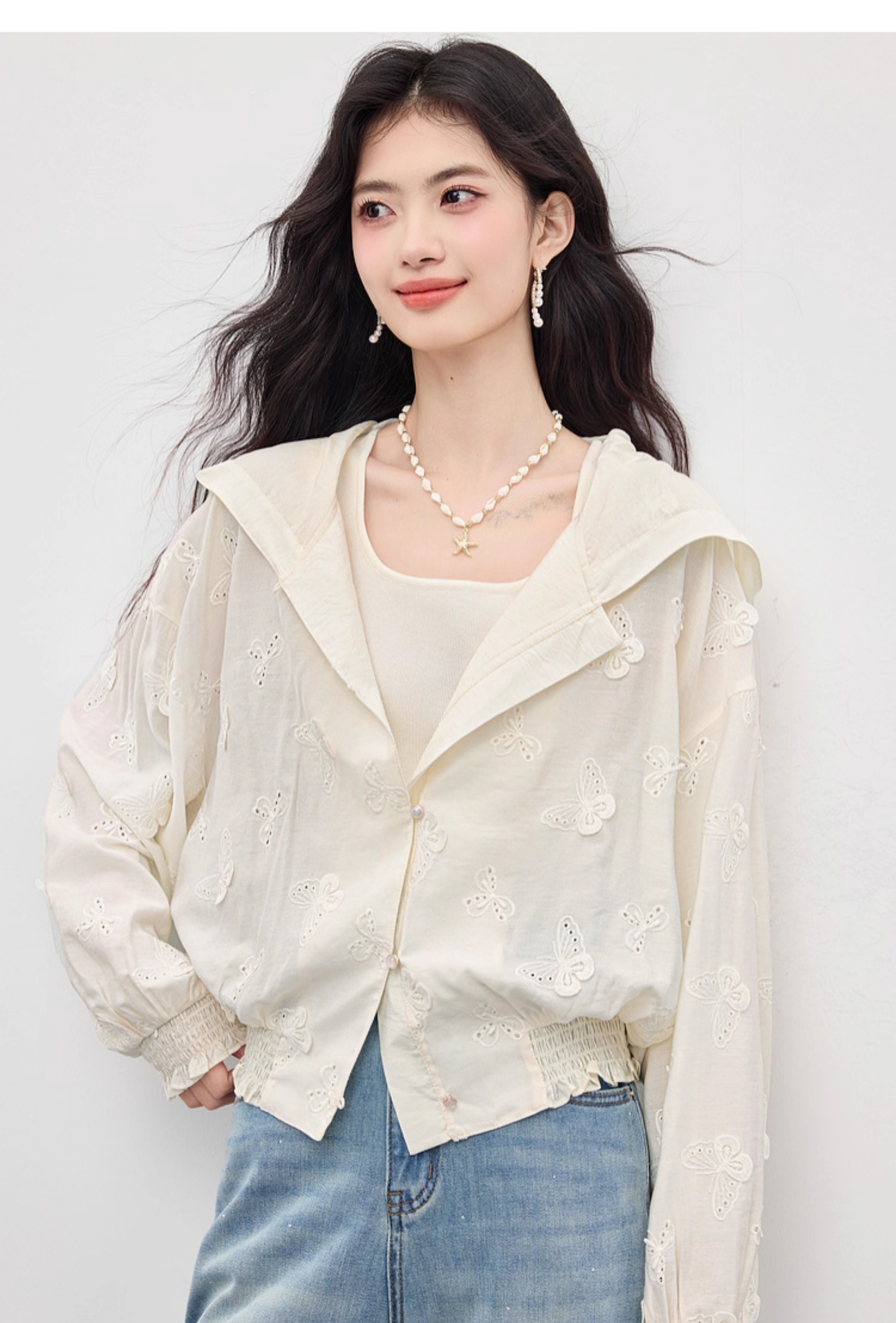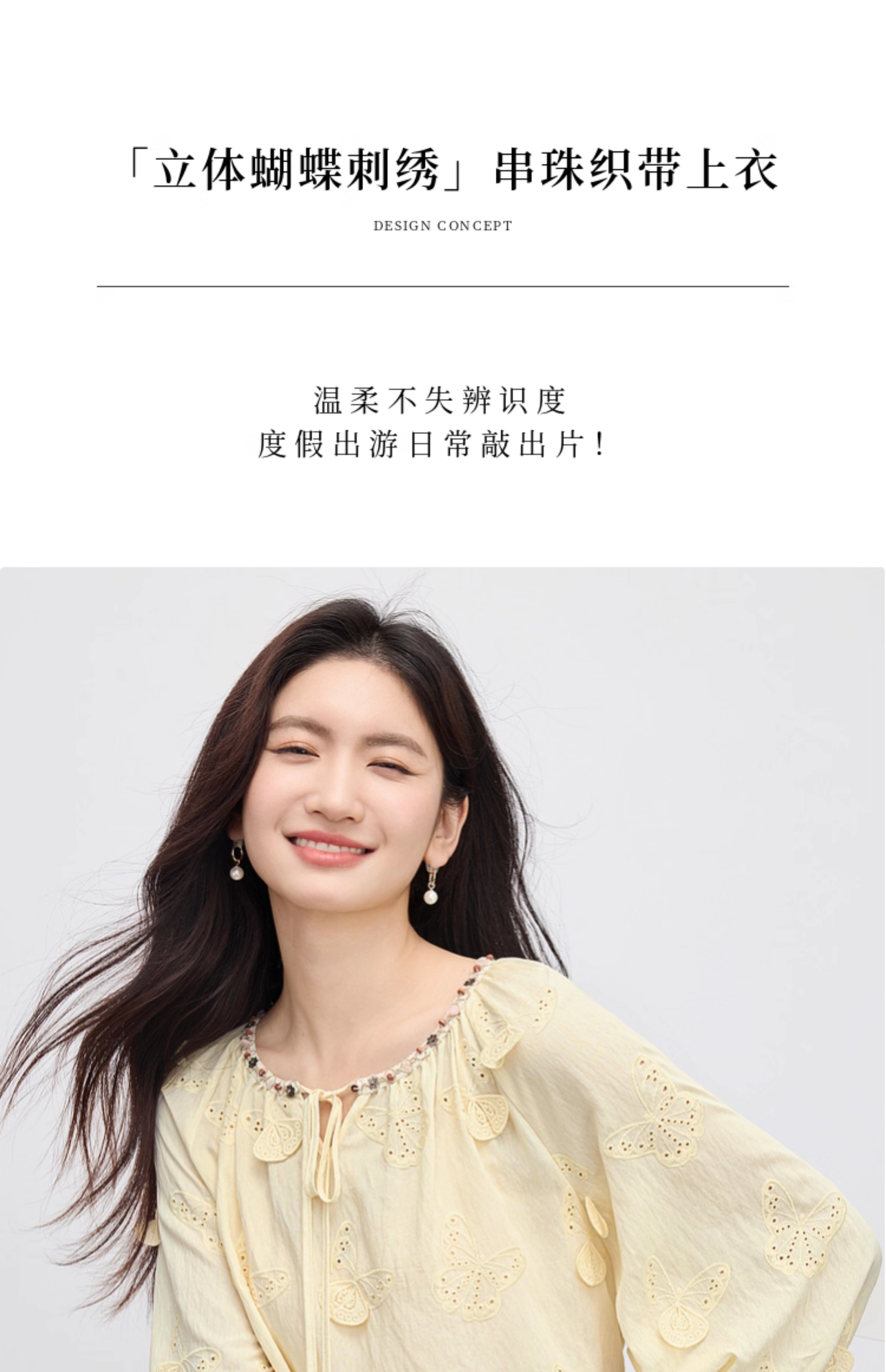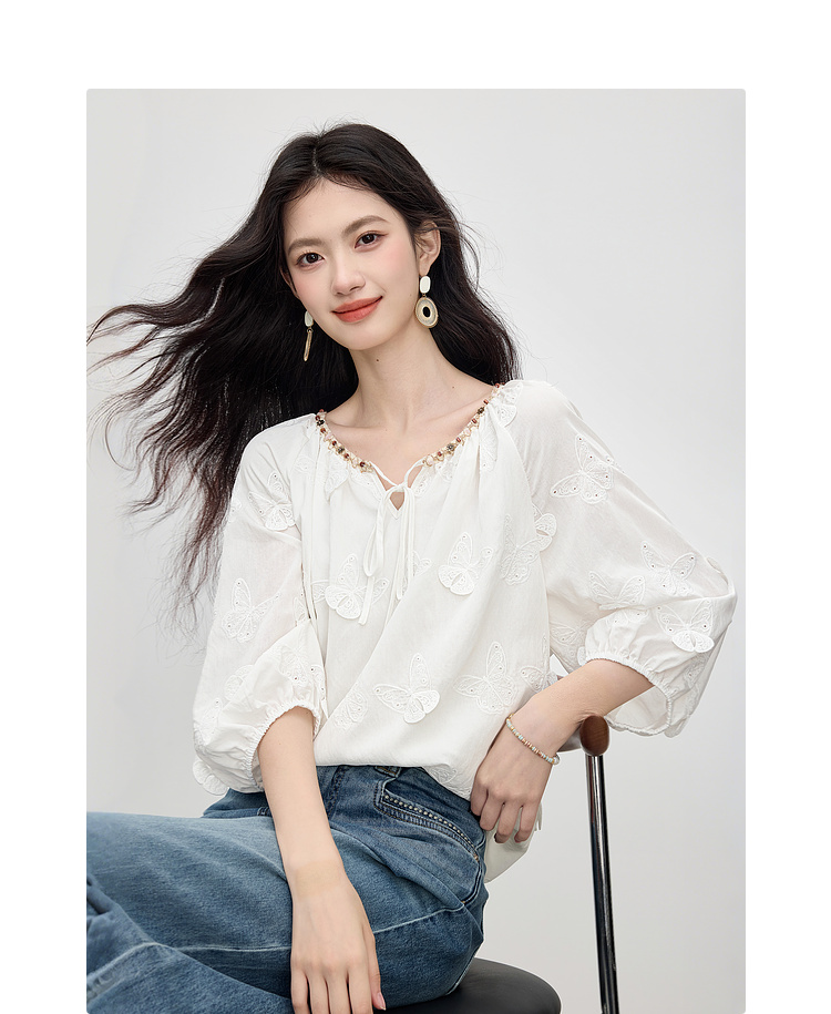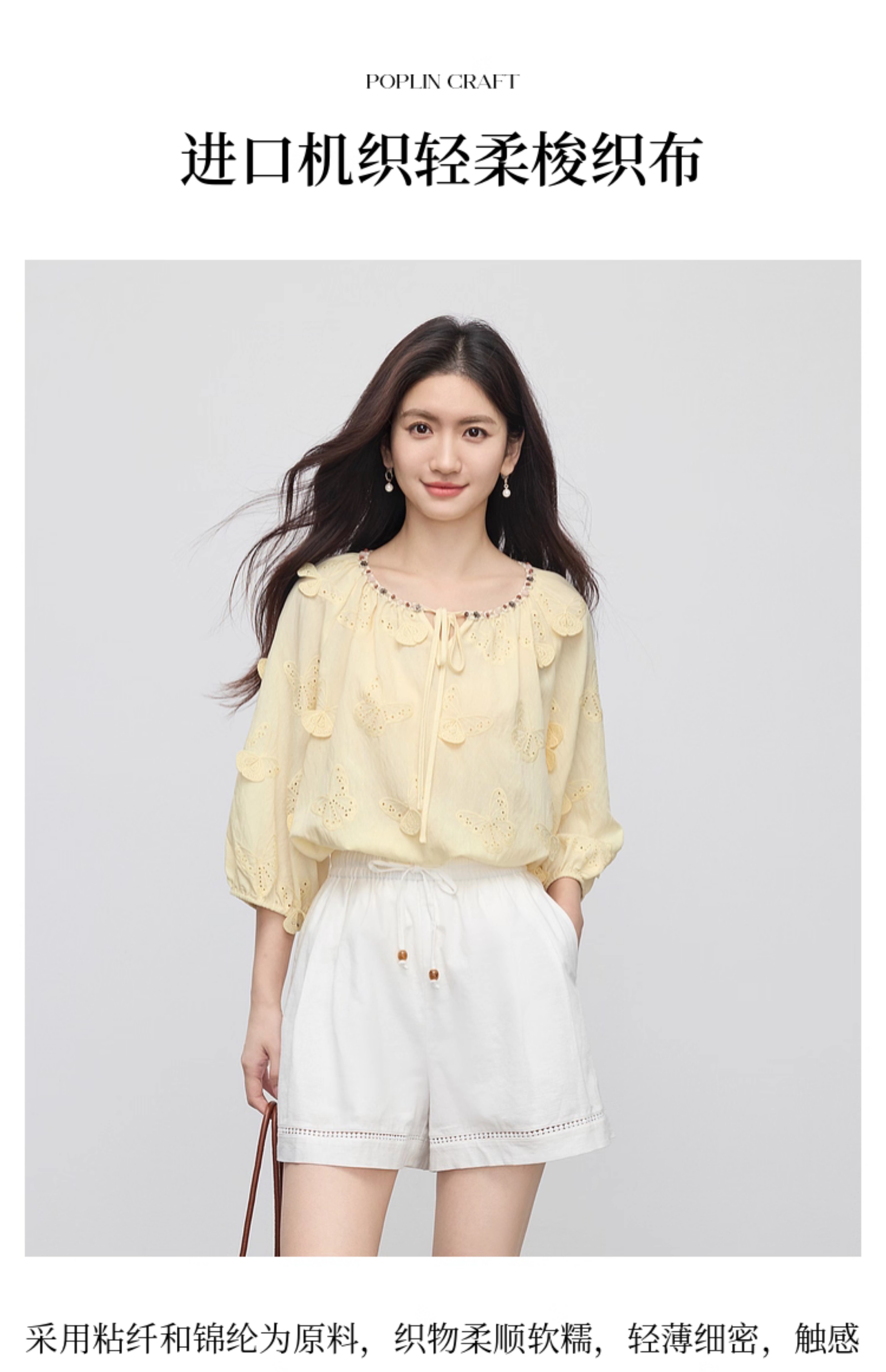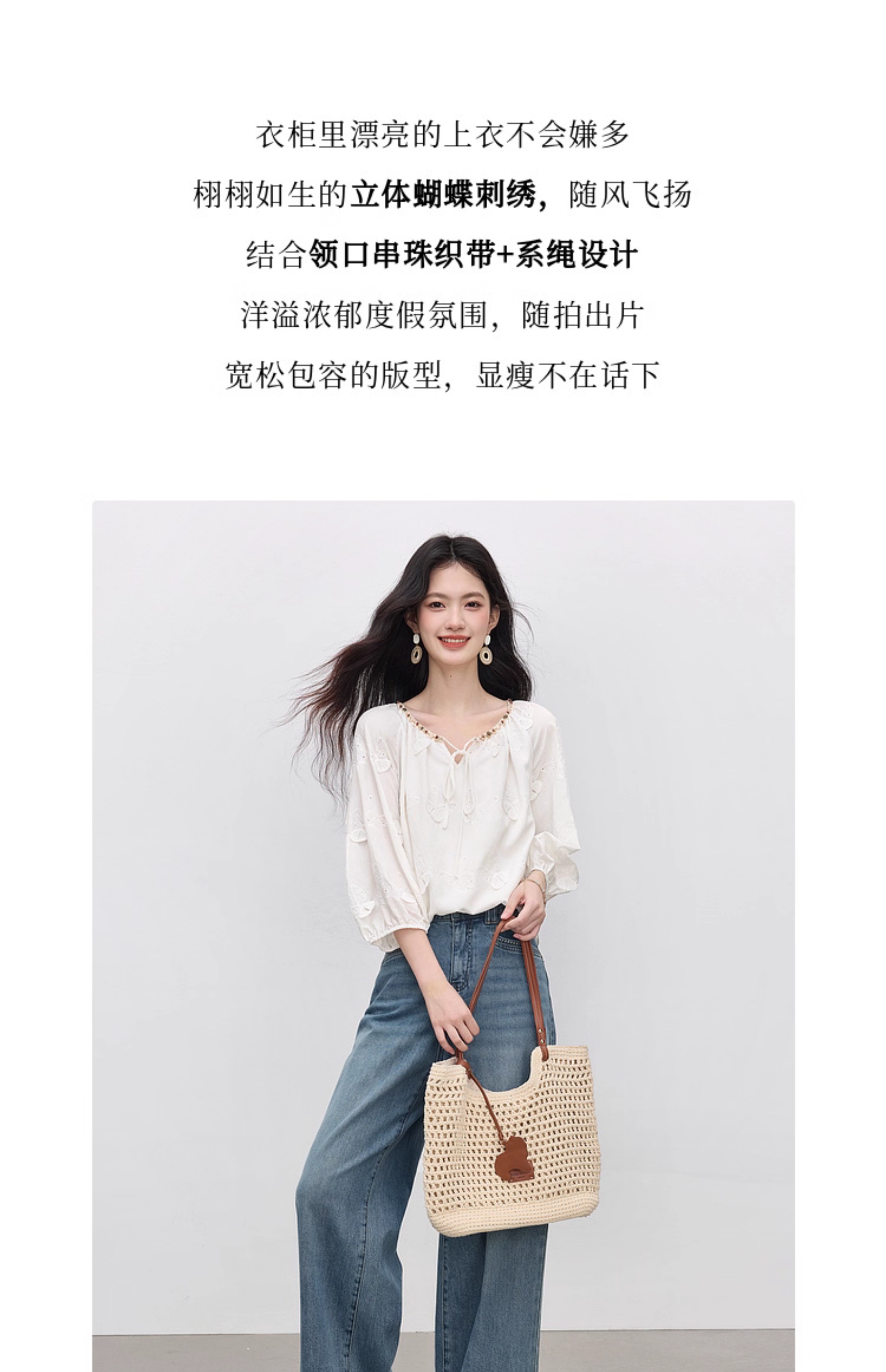 【08/06新品】熙世界轻民族风立体蝴蝶刺绣衬衫女2025初秋新款设计感七分袖上衣