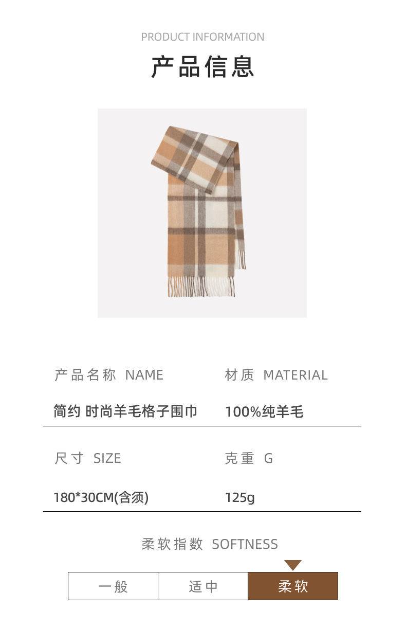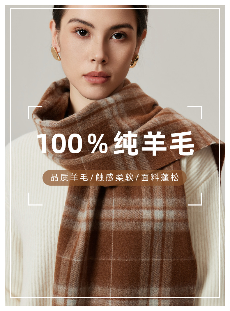 「100%羊毛围巾!几十款可选」韩系女秋冬围巾 氛围感简约女士格子男士流苏围脖配饰