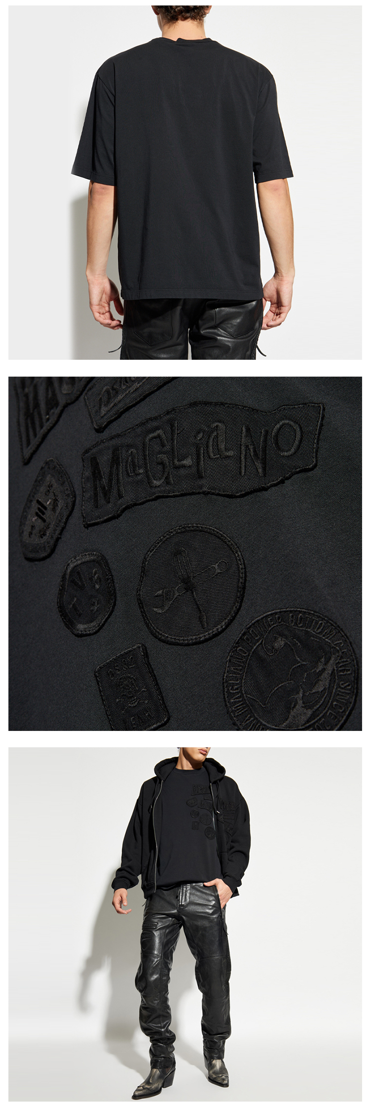 DSQUARED2 男士Magliano联名徽标刺绣贴片棉质圆领短袖T恤 黑色 S71GD1597 D20035 900