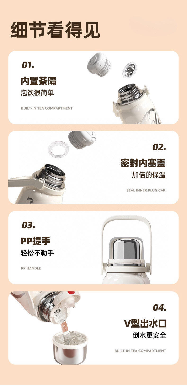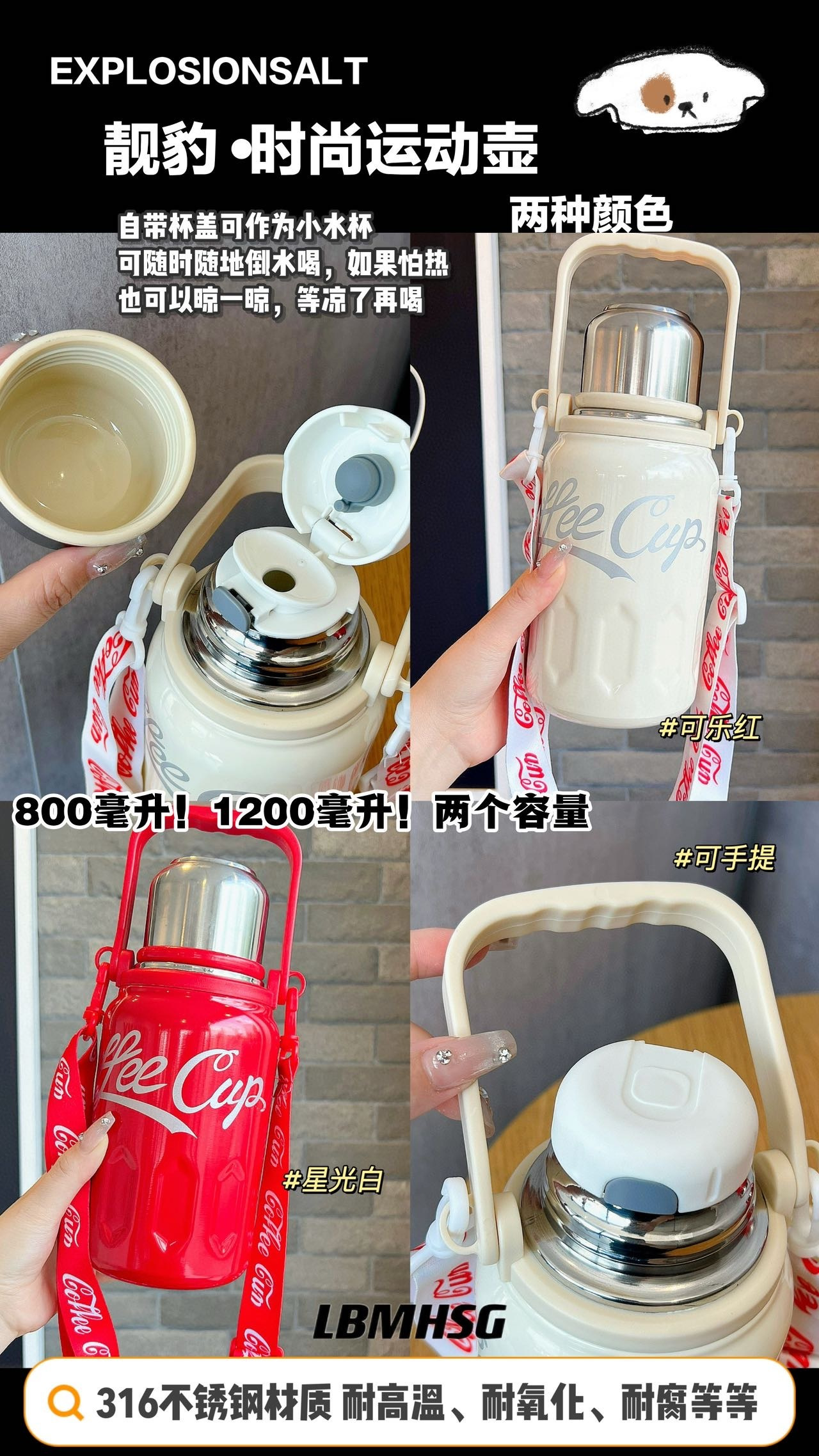 🔸杯盖自带提手,还送肩带,可单肩+斜跨+手提
