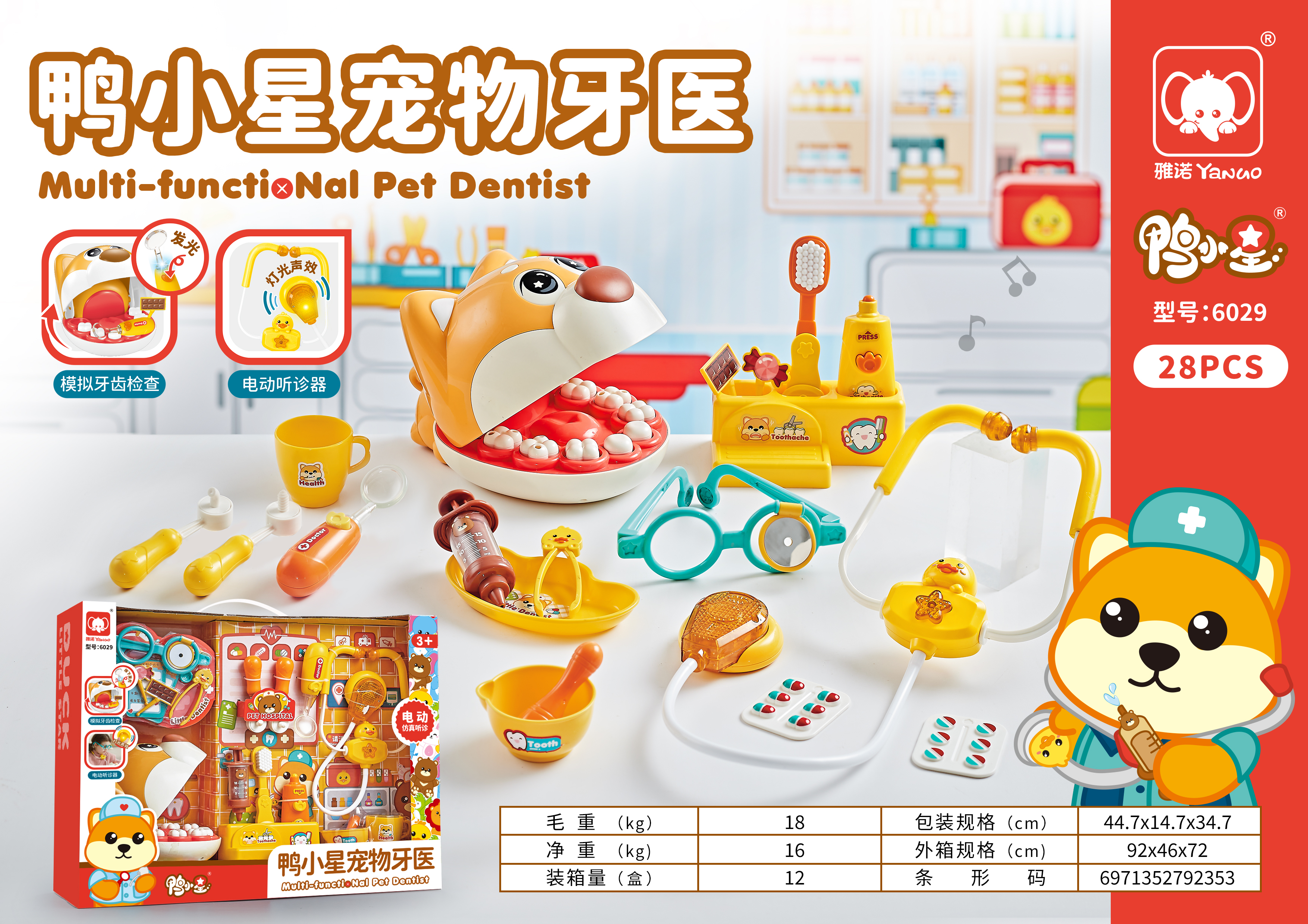 雅诺鸭小星宠物牙医小医生扮演听诊器医具护士服装套装过家家儿童玩具