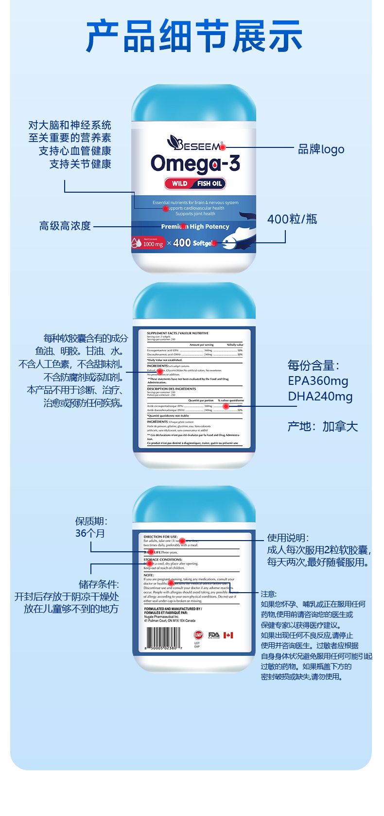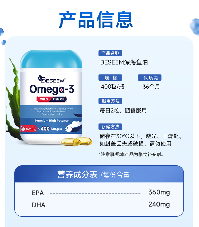 【分销专属】原装进口BESEEM高纯度深海鱼油软胶囊
