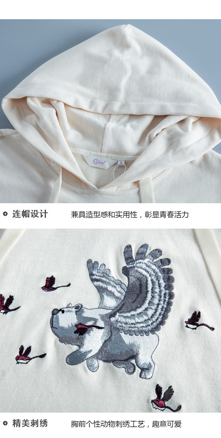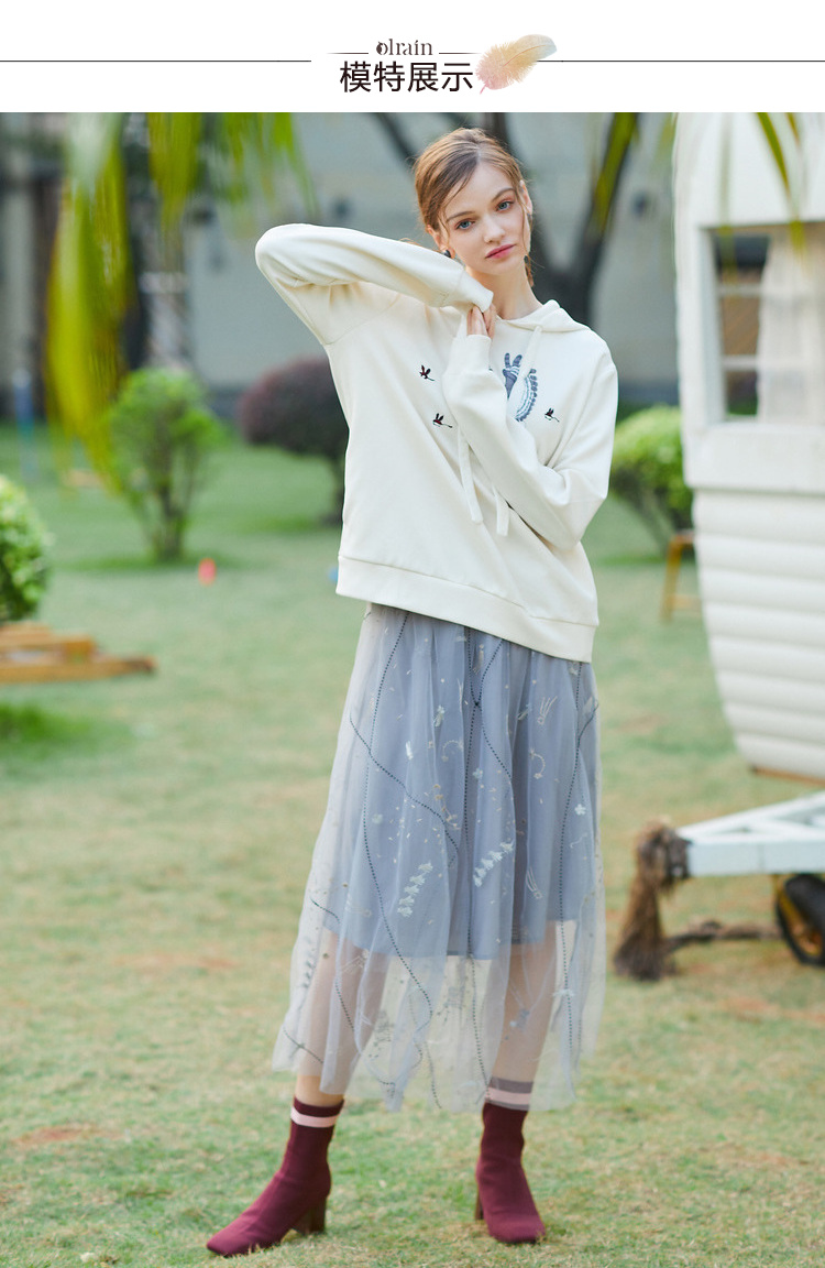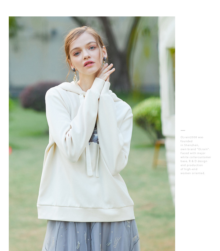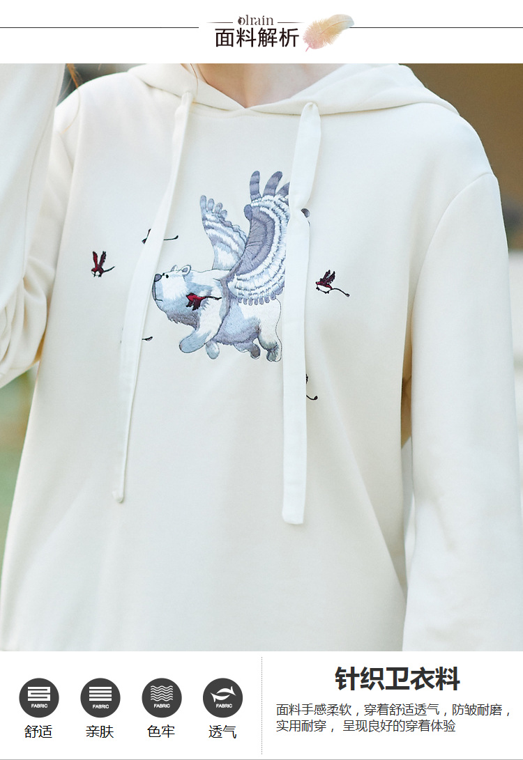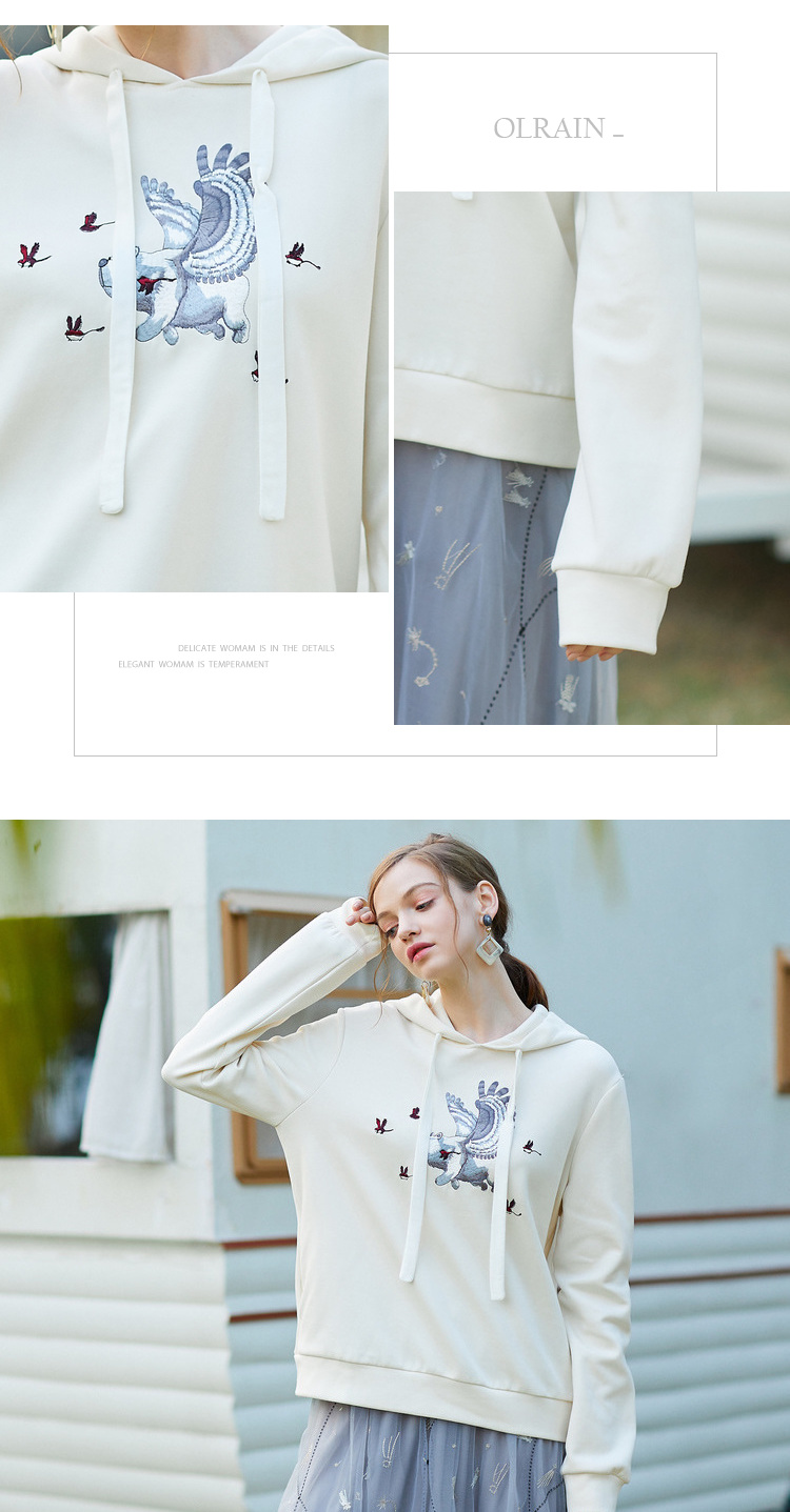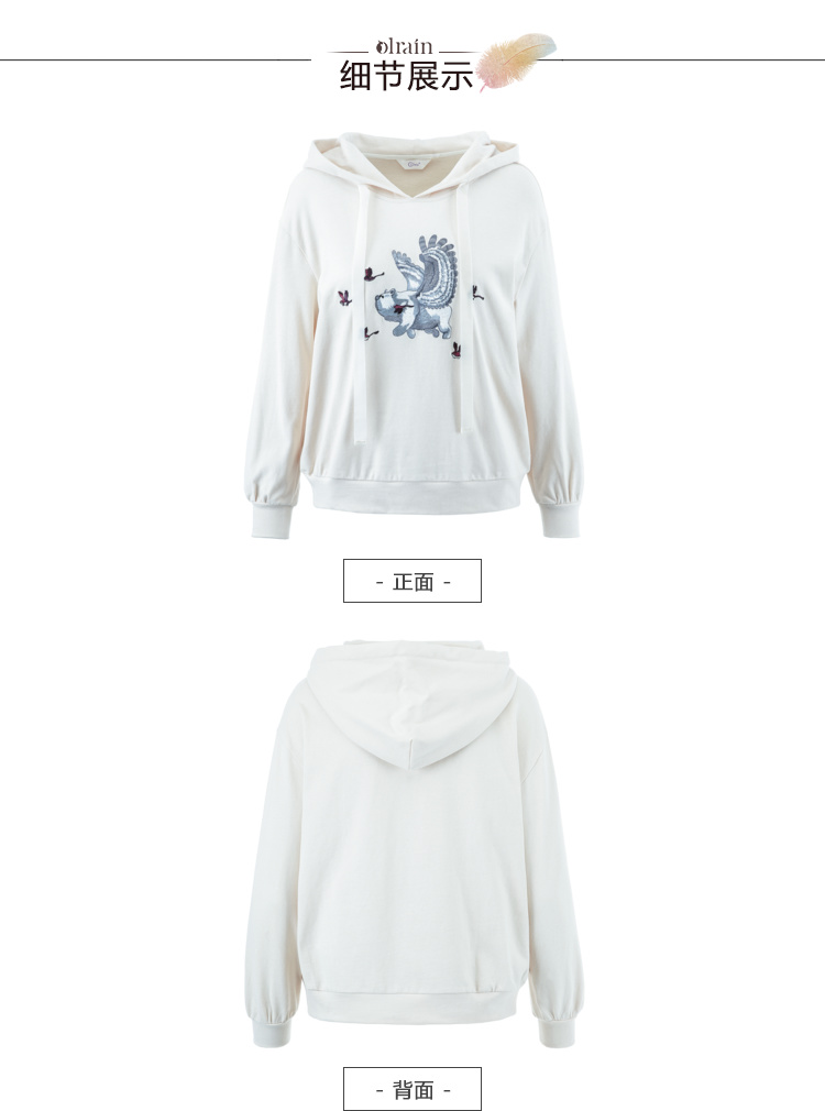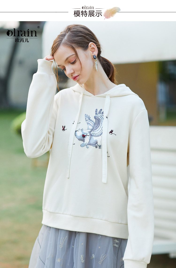 欧芮儿 秋装2019新款女装绣花卫衣女连帽百搭宽松保暖上衣