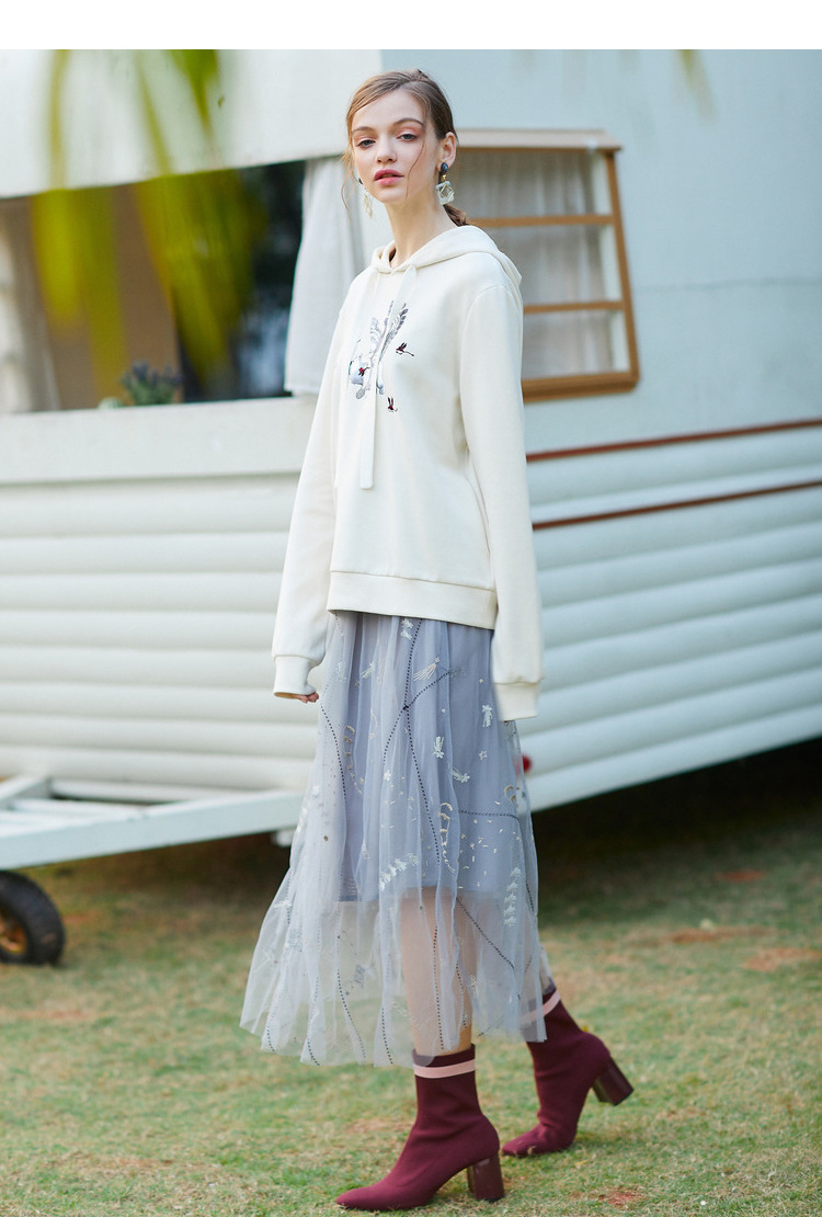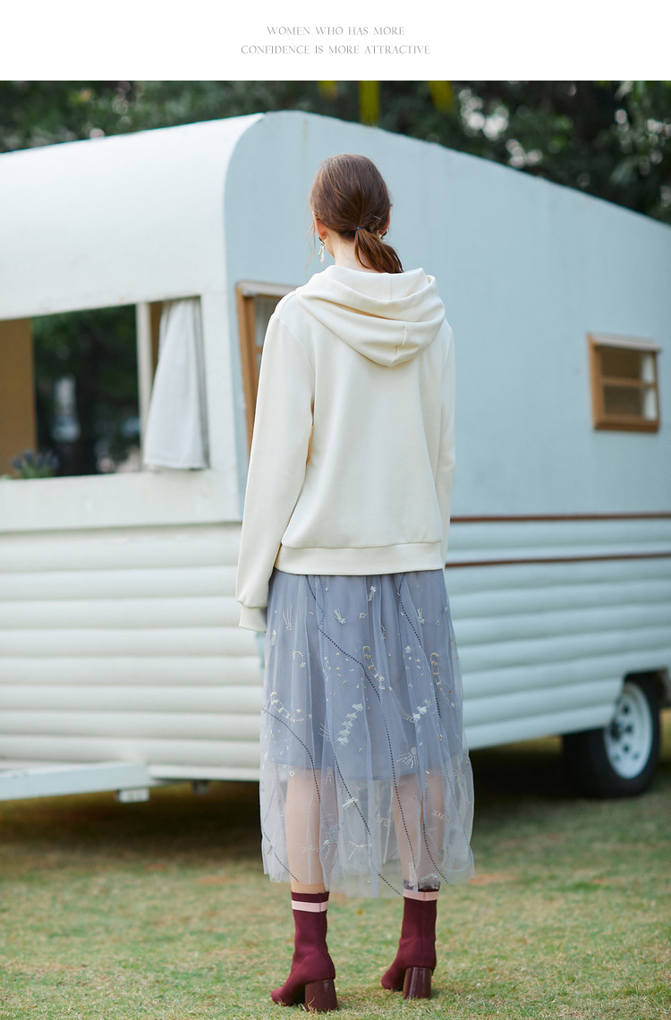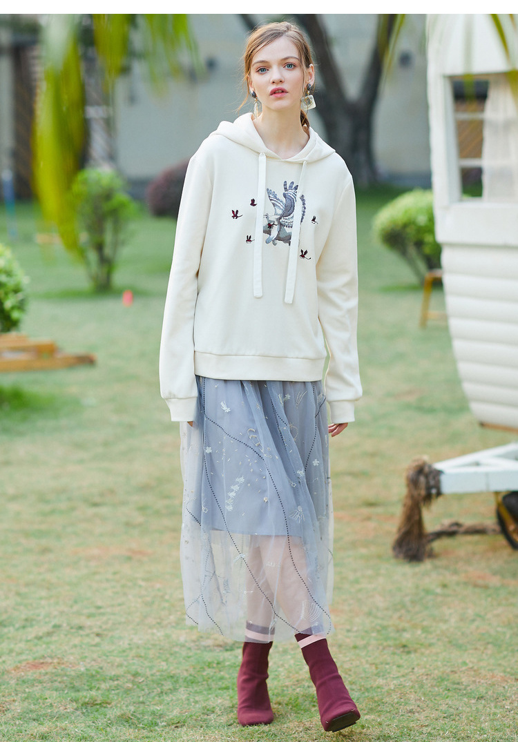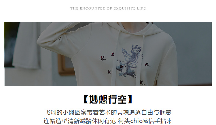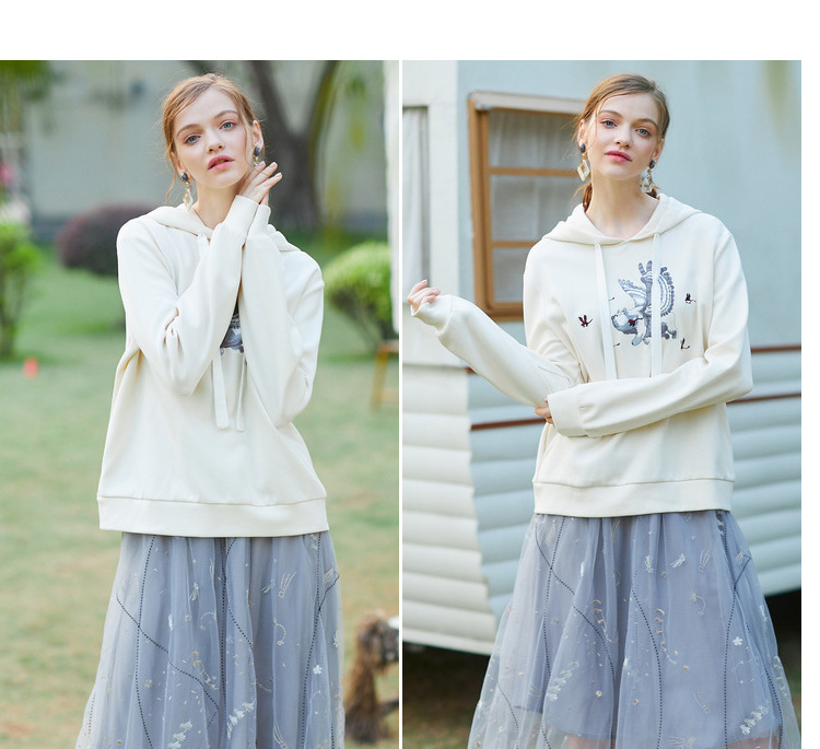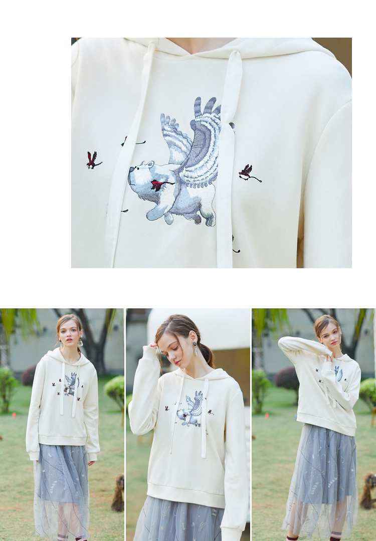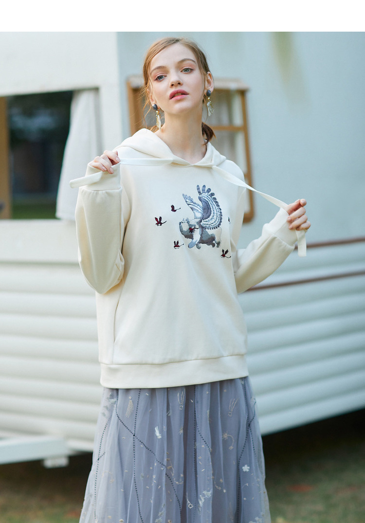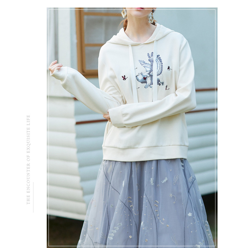 欧芮儿 秋装2019新款女装绣花卫衣女连帽百搭宽松保暖上衣