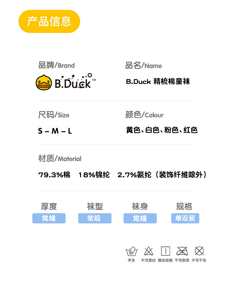 【专柜同款精品】B.Duck精梳棉童袜S/M/L