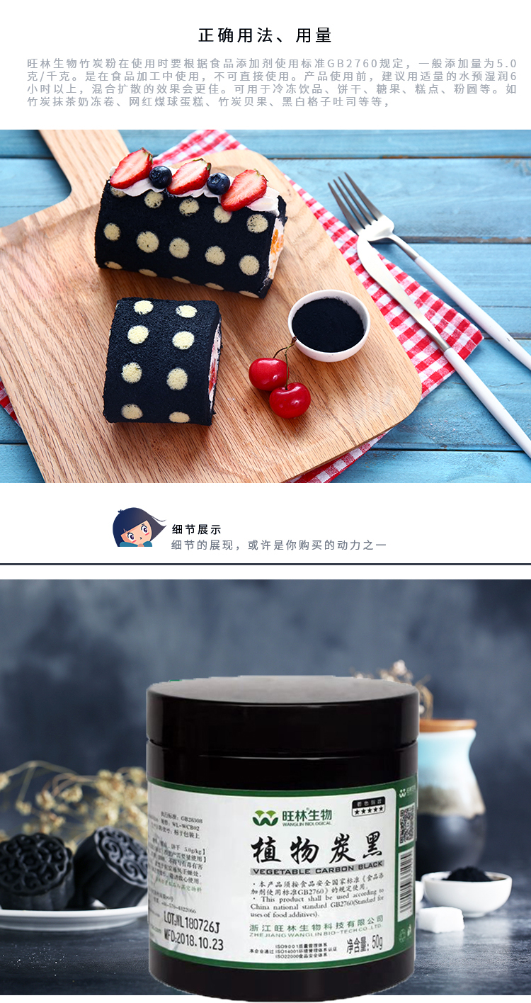旺林生物植物炭黑20g/50g/200g 炭黑粉竹炭粉 食用黑色素 煤球 蛋糕烘焙原料