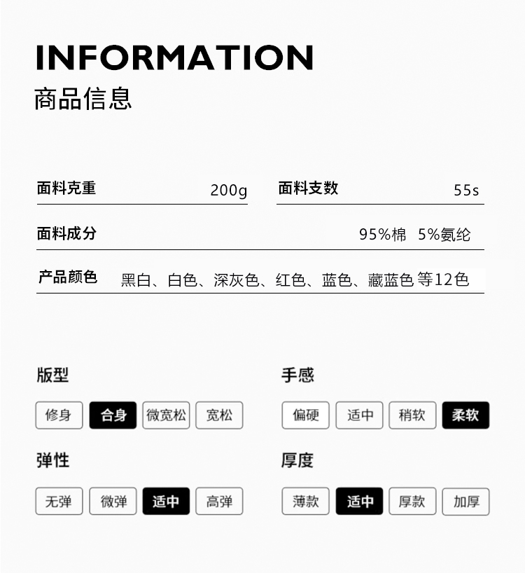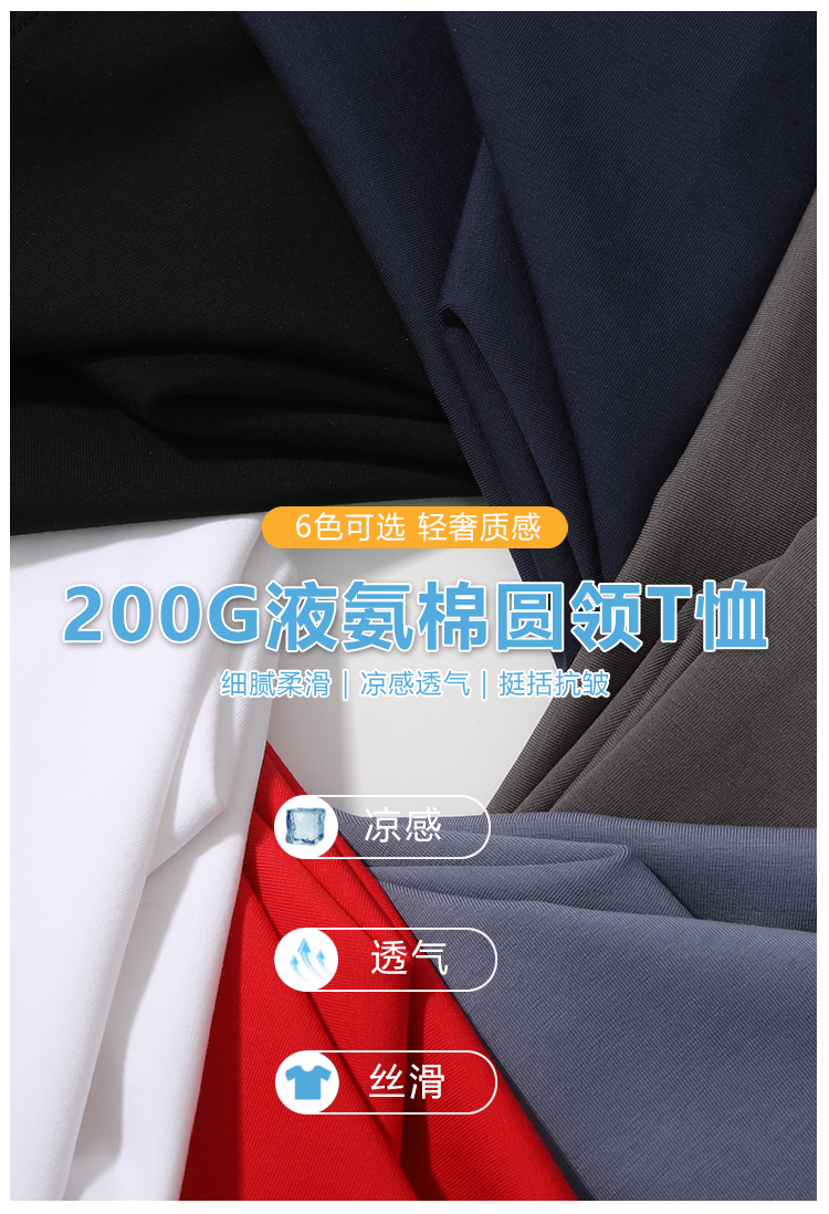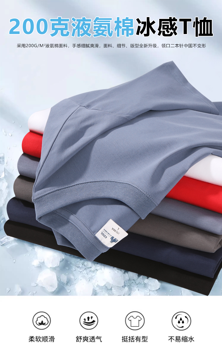 200g液氨棉冰感圆领T恤短袖男女同款95%棉2111