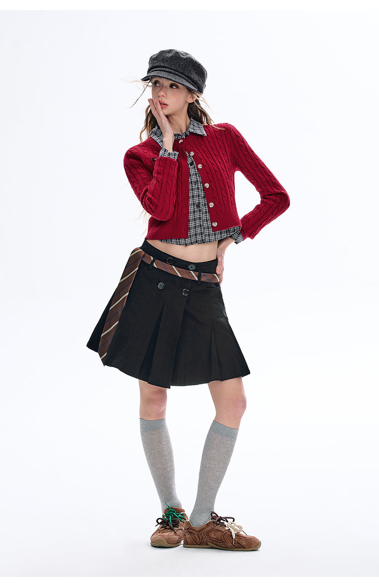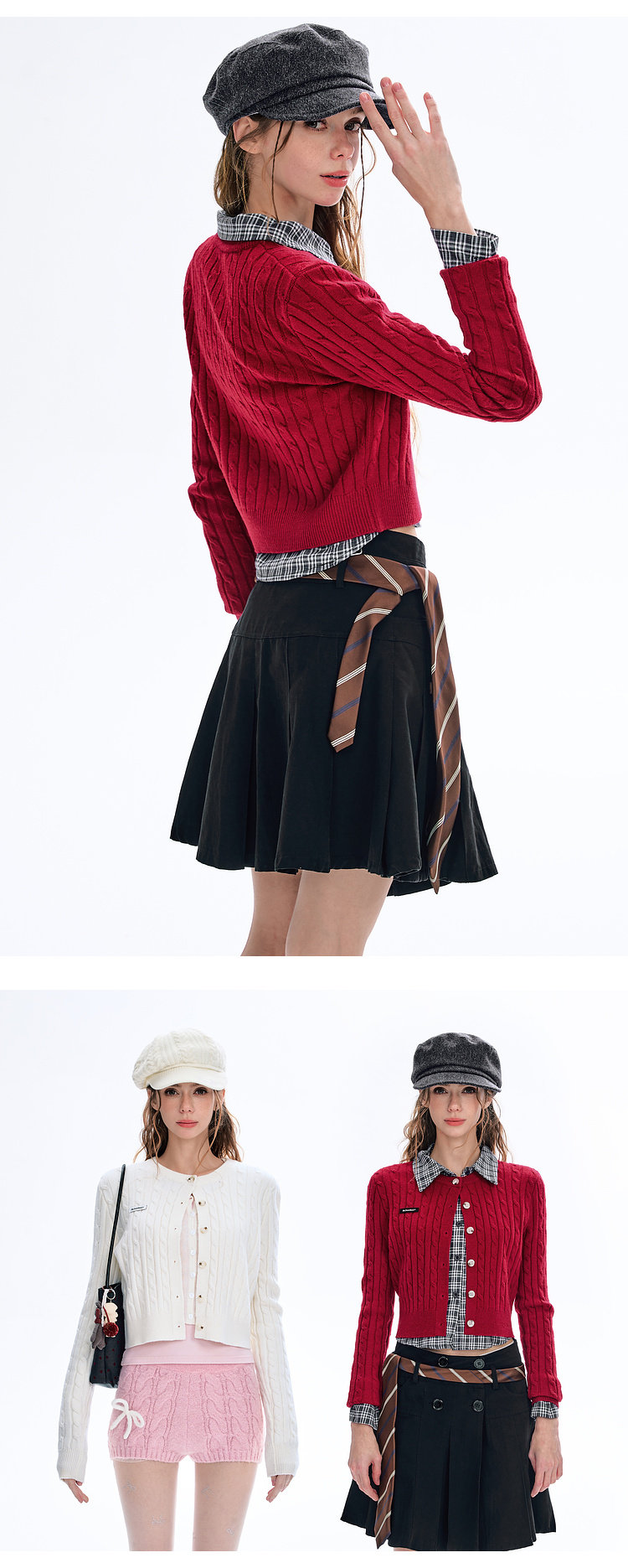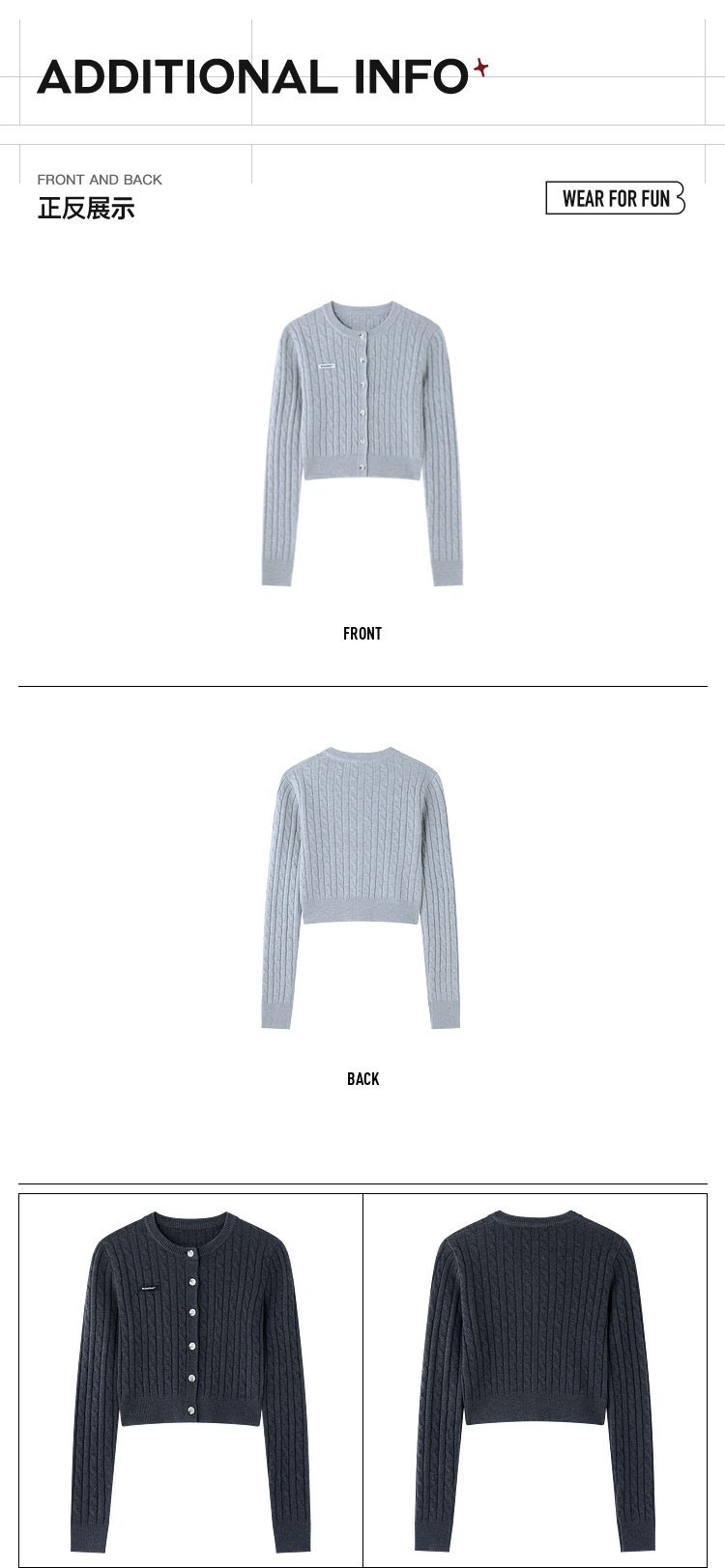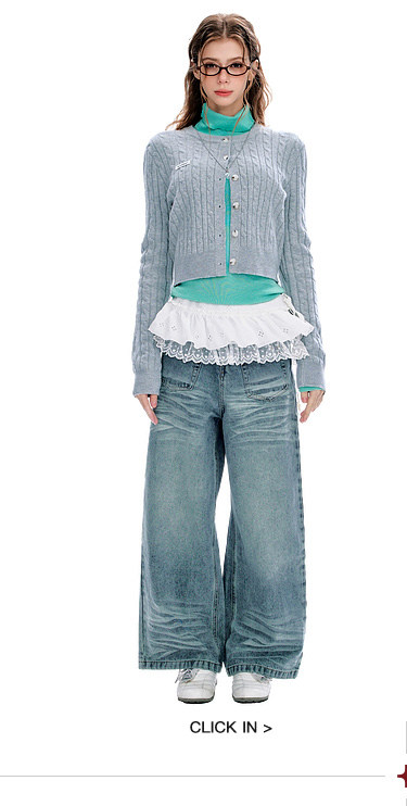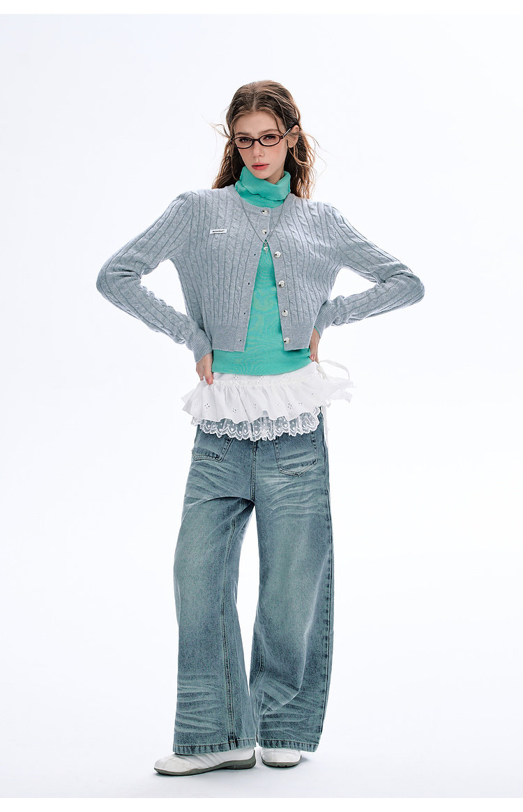 BJHG不计后果圆领针织开衫女春季修身设计感复古绞花短款毛衣外套