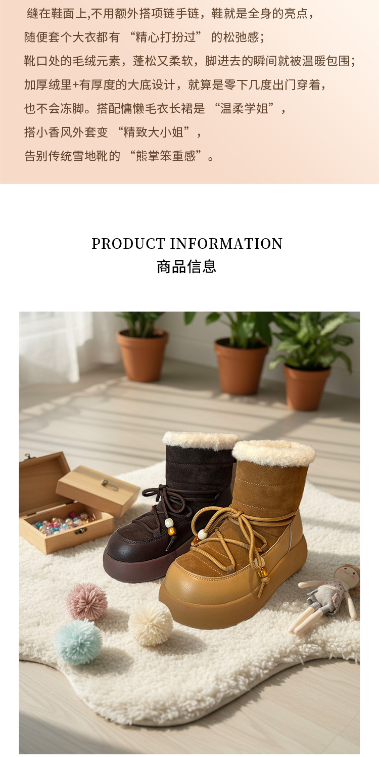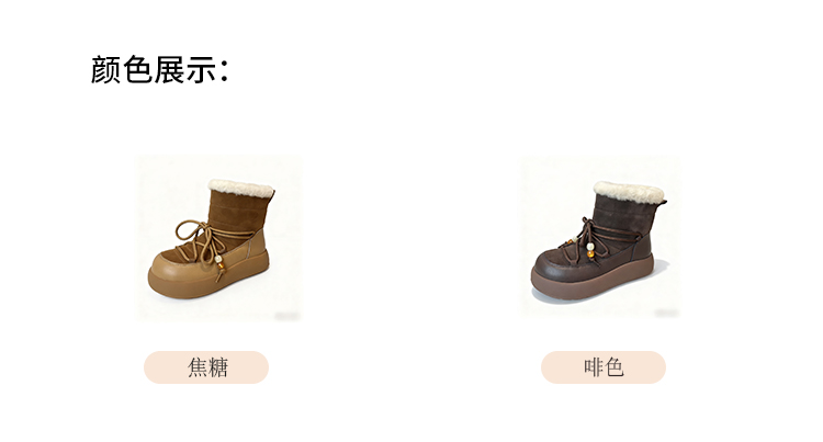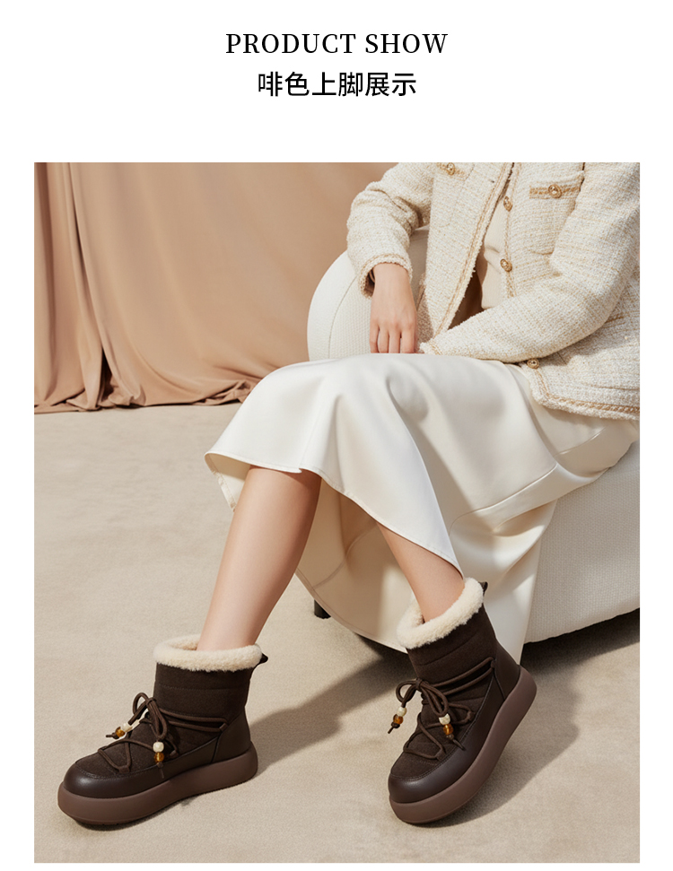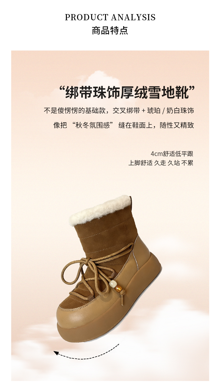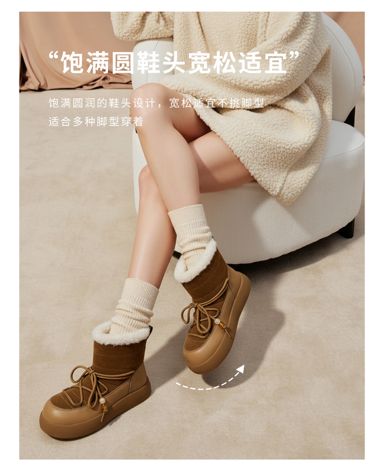 西村名物2025年冬季新款厚底防滑厚绒绑带饱满圆通毛绒内里雪地靴毛毛鞋T25DS40041