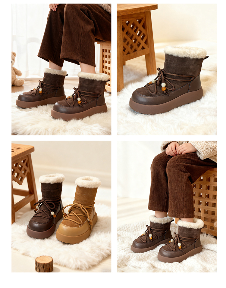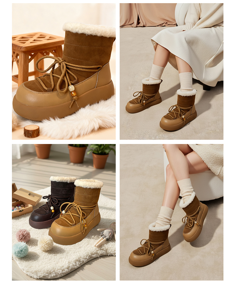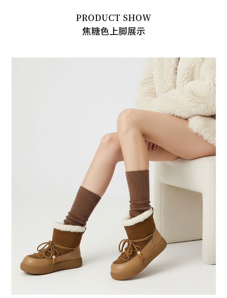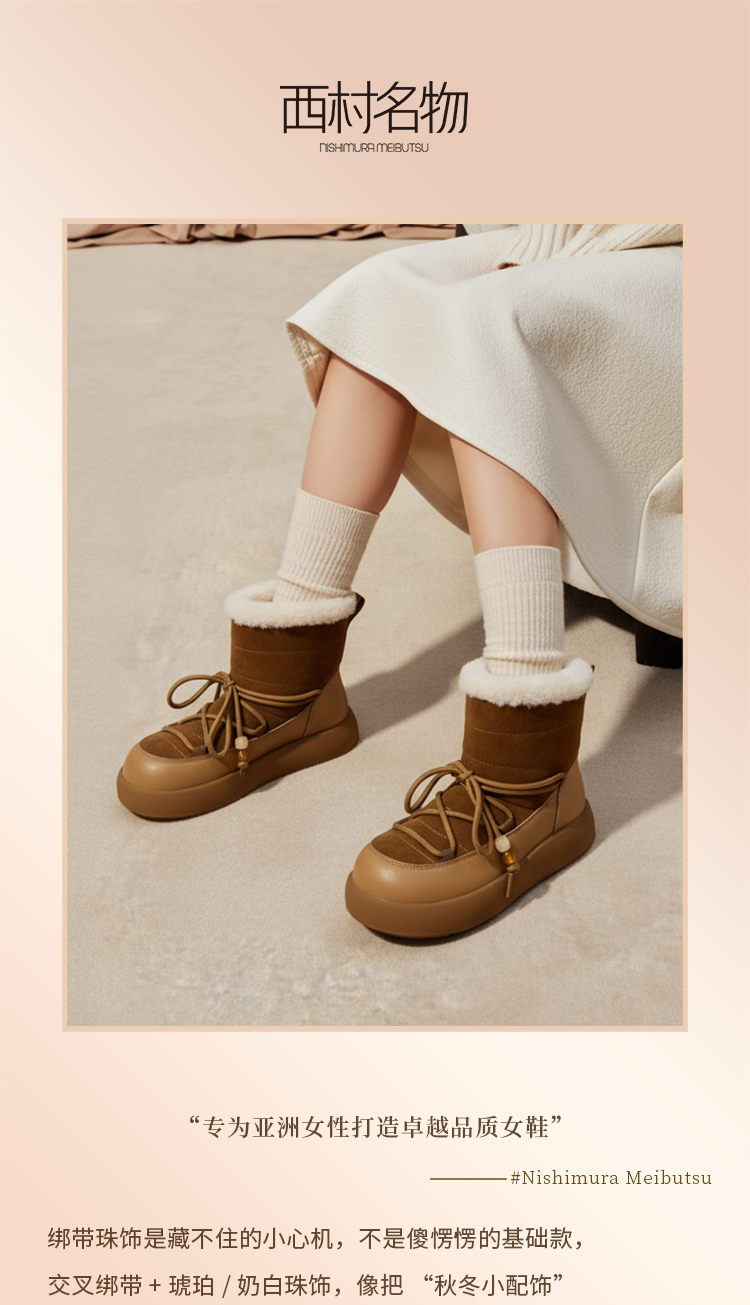西村名物2025年冬季新款厚底防滑厚绒绑带饱满圆通毛绒内里雪地靴毛毛鞋T25DS40041
