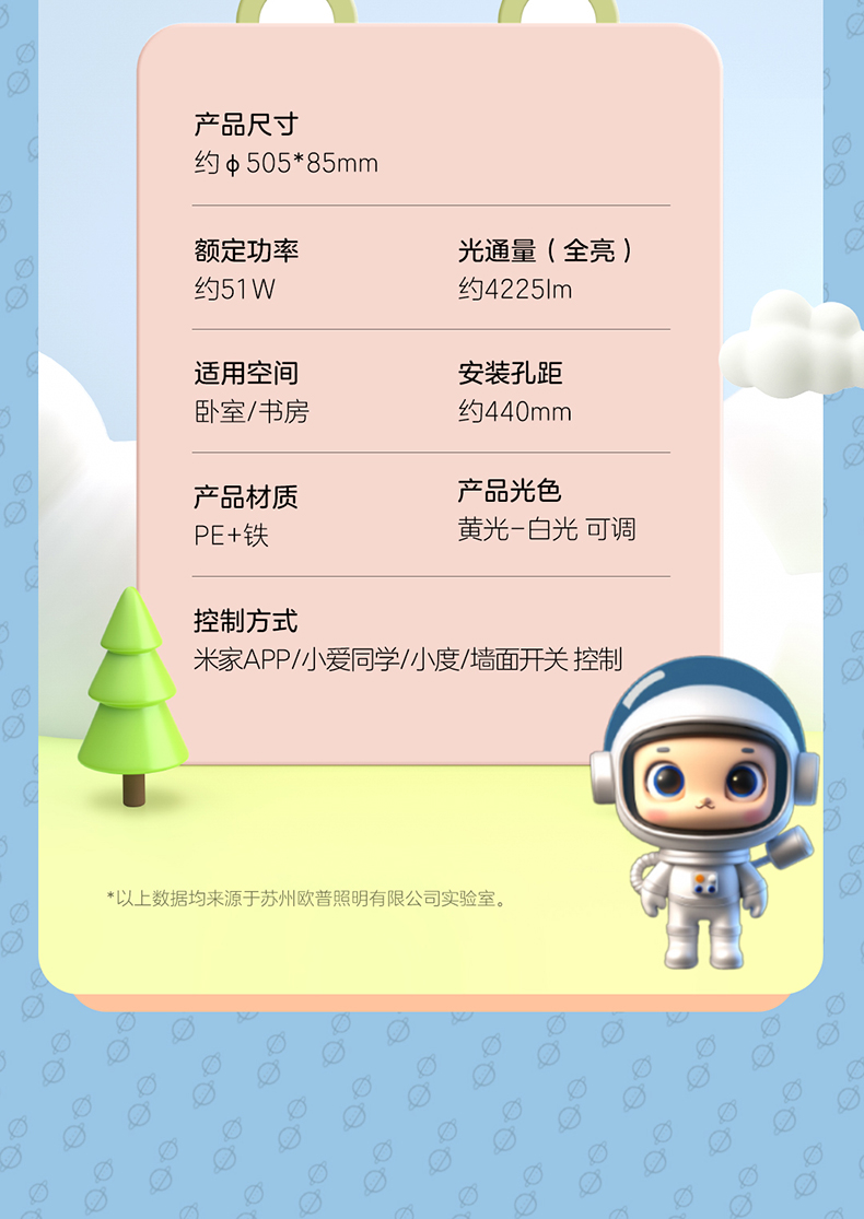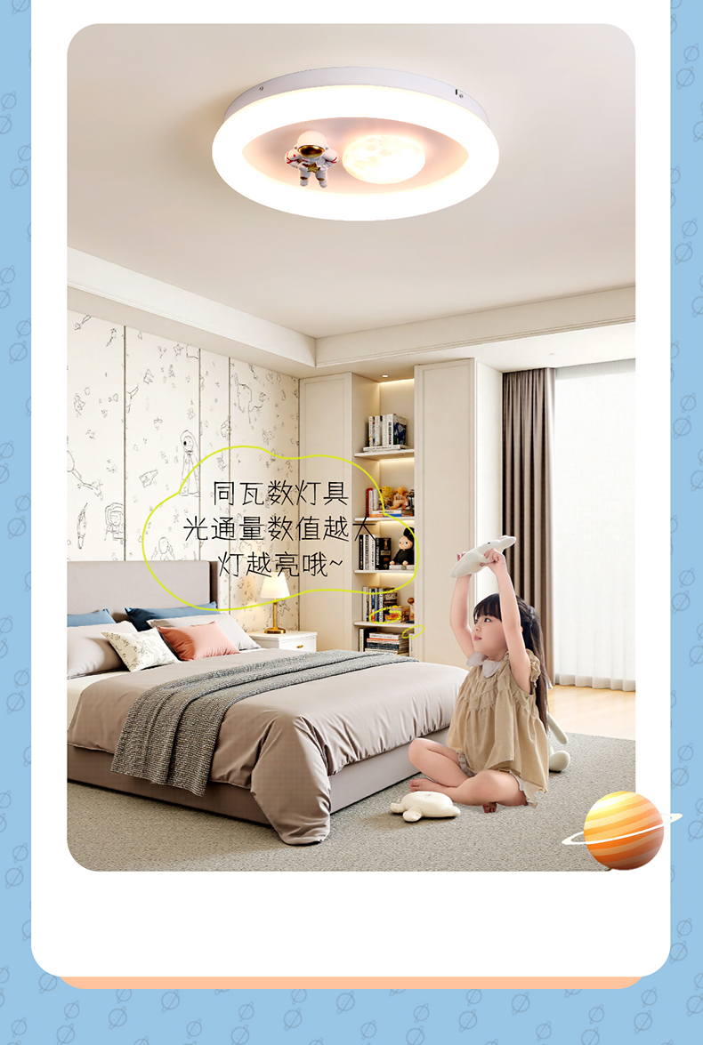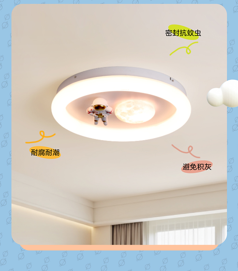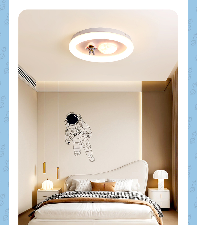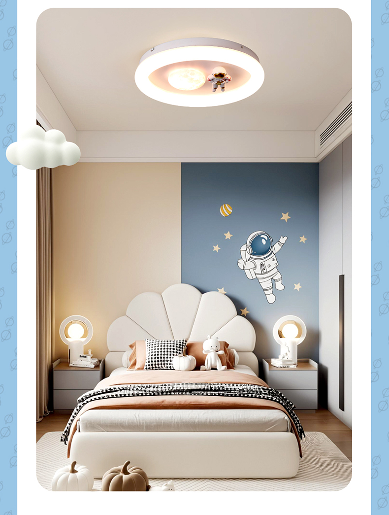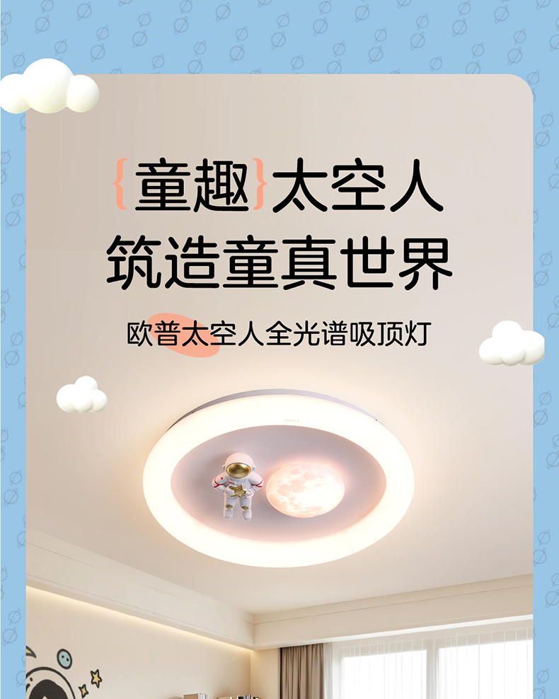 欧普(OPPLE)太空人卧室奶油风卡通圆形儿童房吸顶灯