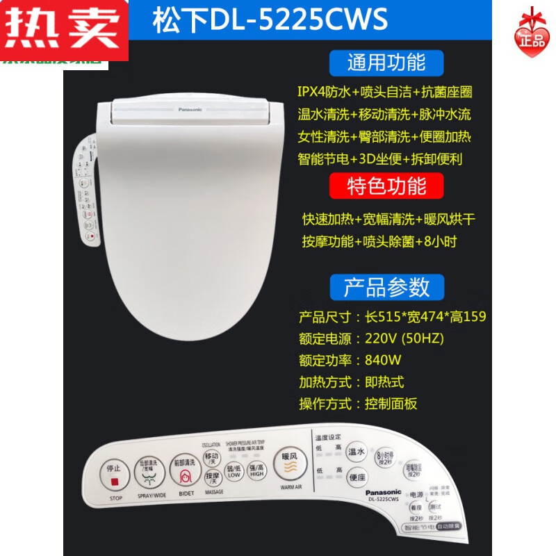 松下智能马桶盖除菌抗菌通用即热式快速加热洁身器DL-5225CWS