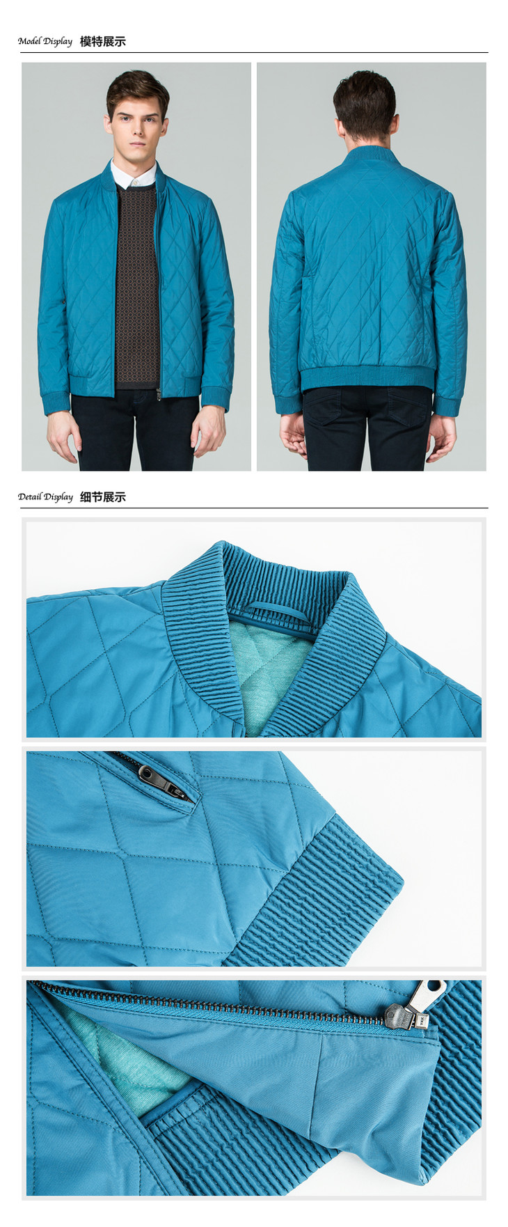 Marco Azzali 蓝绿色棒球领夹克款棉服 M3506600
