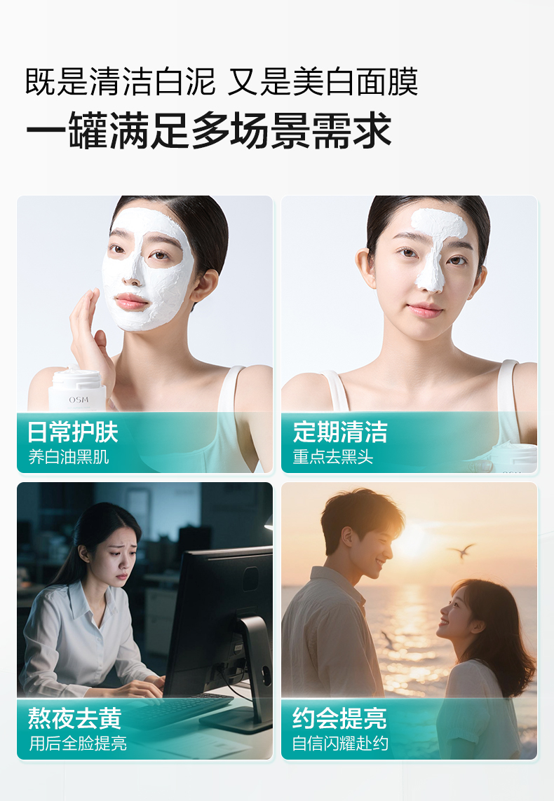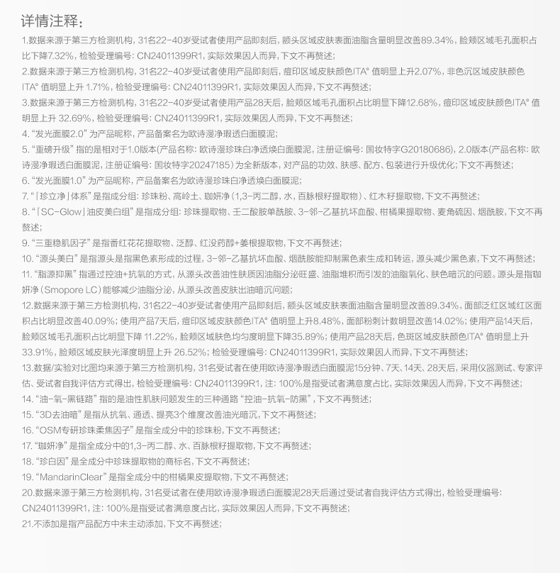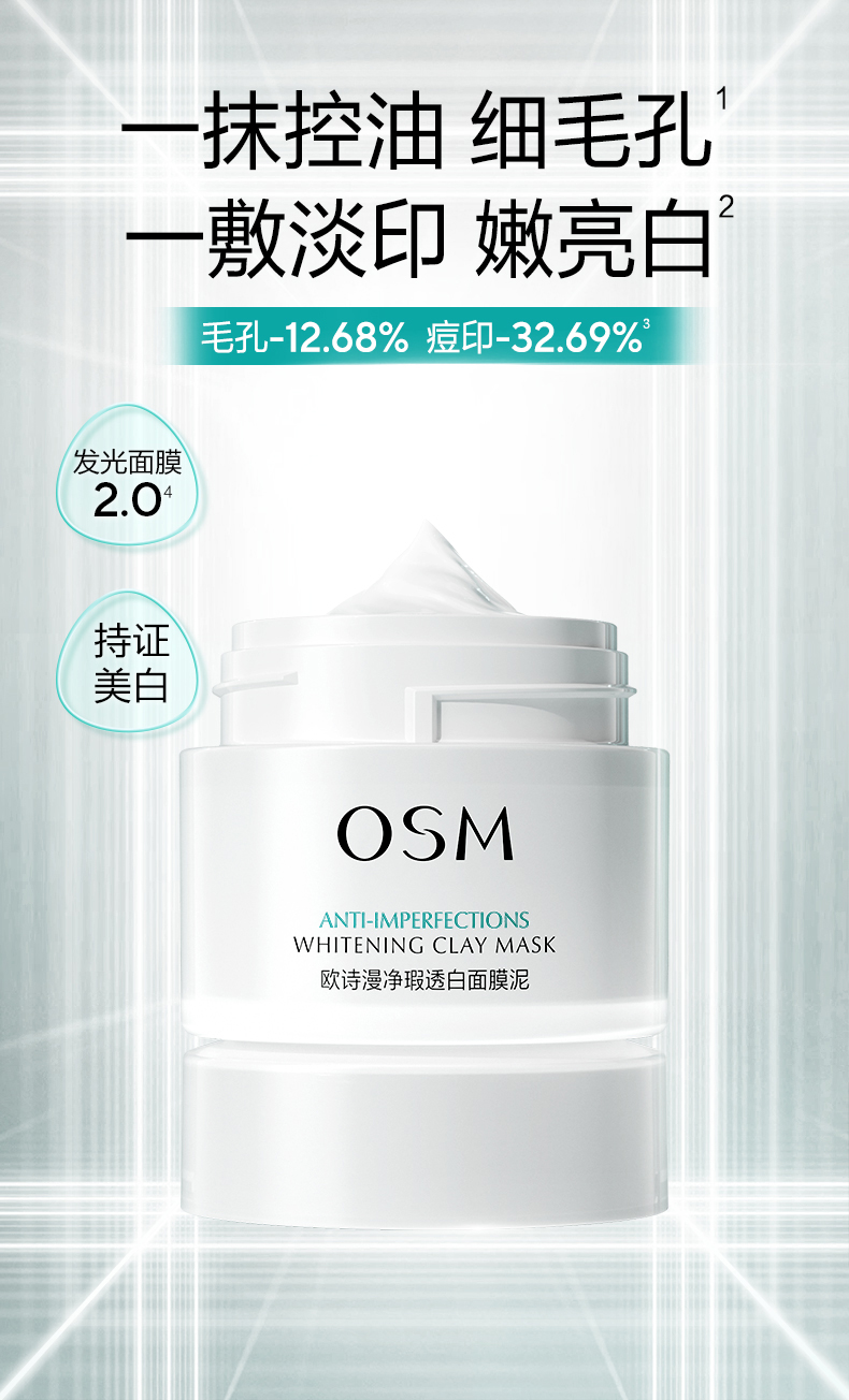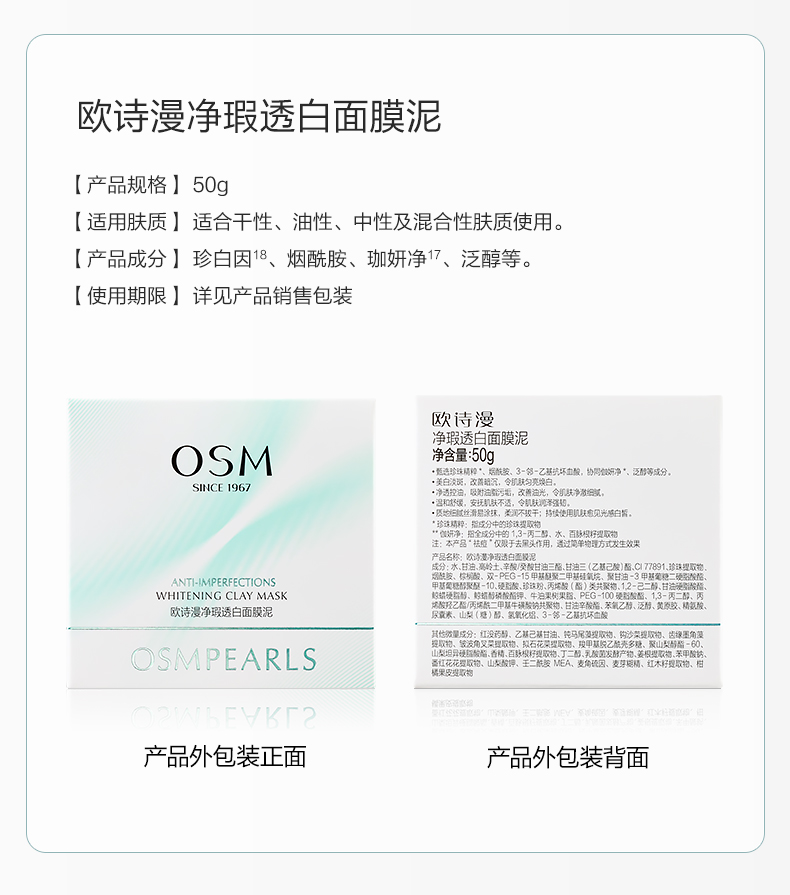 【到手108g】欧诗漫发光面膜清洁面膜泥珍珠美白去黄提亮油皮