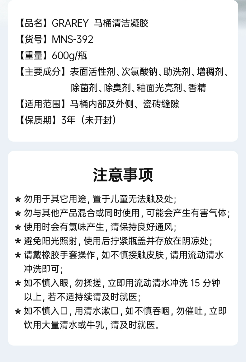 【GRAREY格瑞亚-马桶清洁凝胶】无需动手顽固污渍自动溶解,杀菌去异味,还你干净马桶~