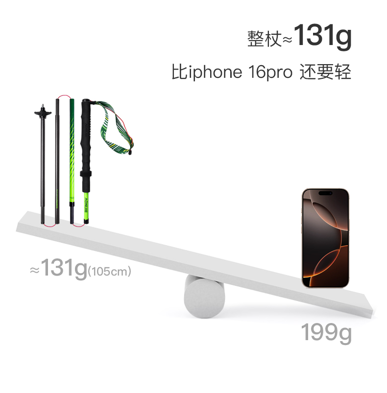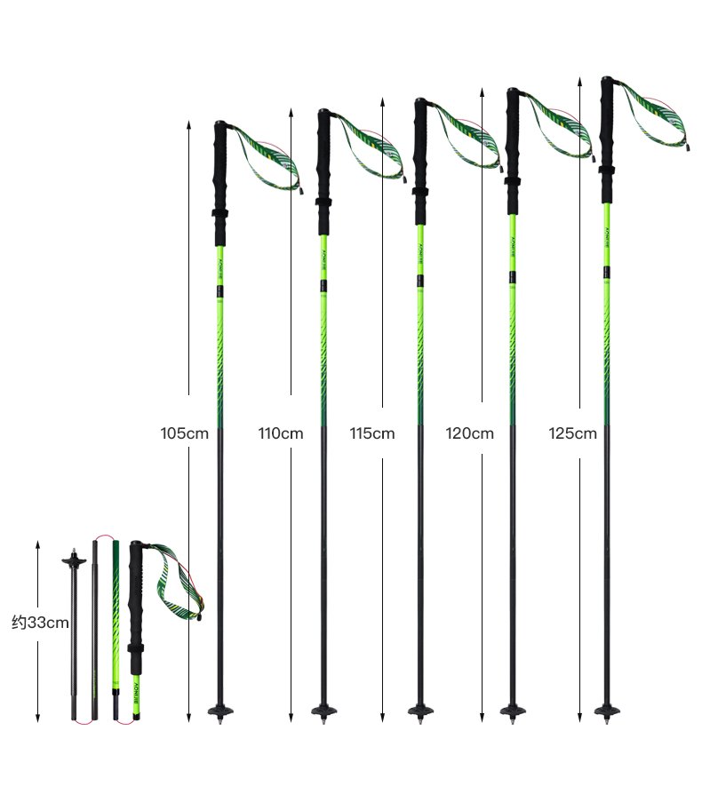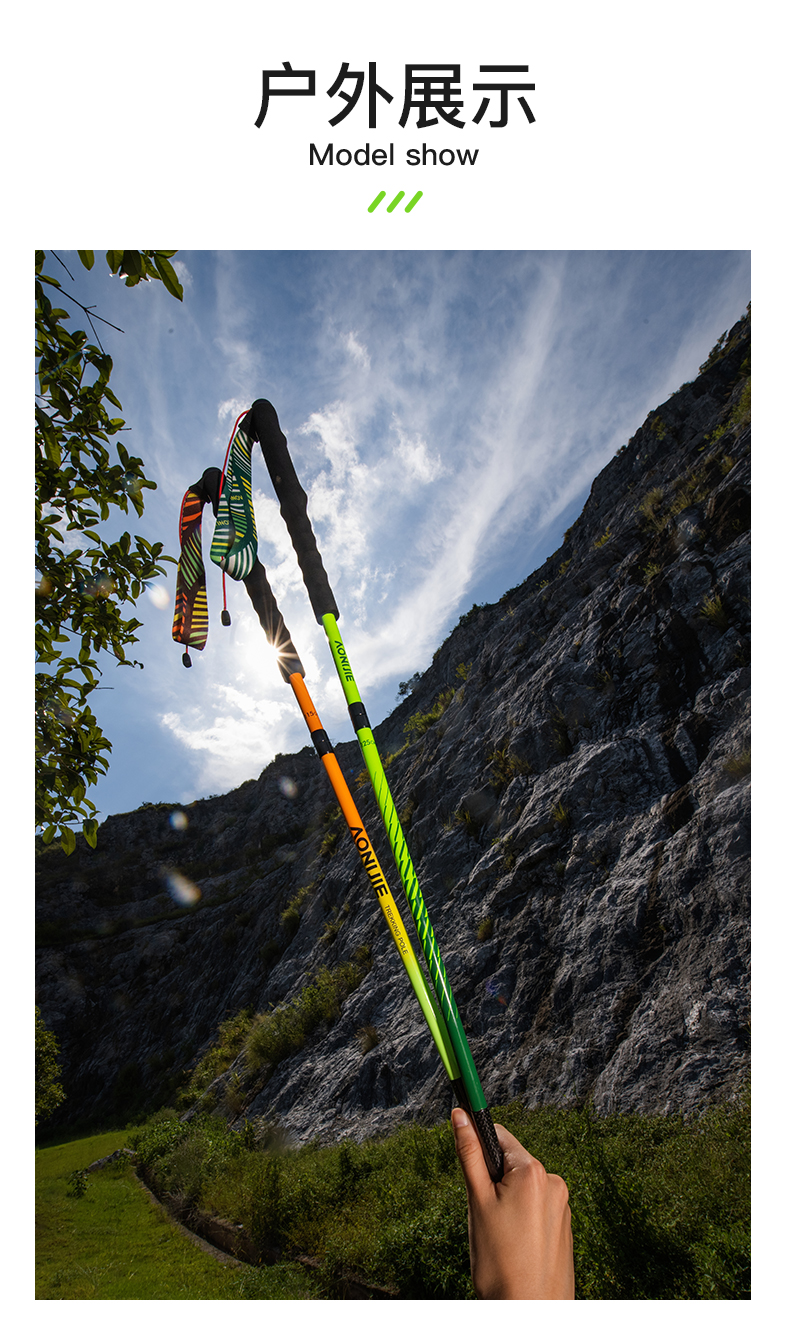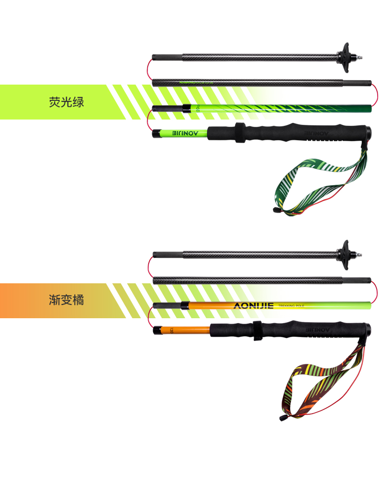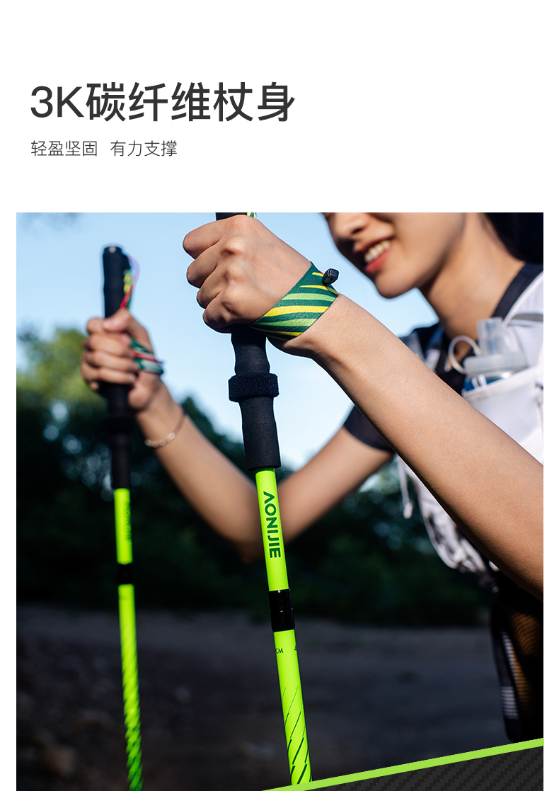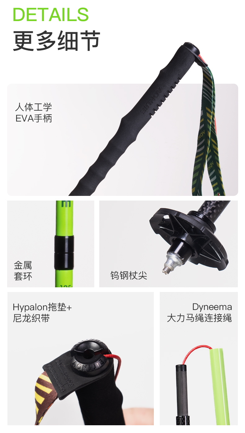 奥尼捷全碳素登山杖跑越野登山荧光绿轻量化四折叠登山越野徒步杖E4204 单根装