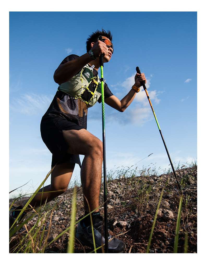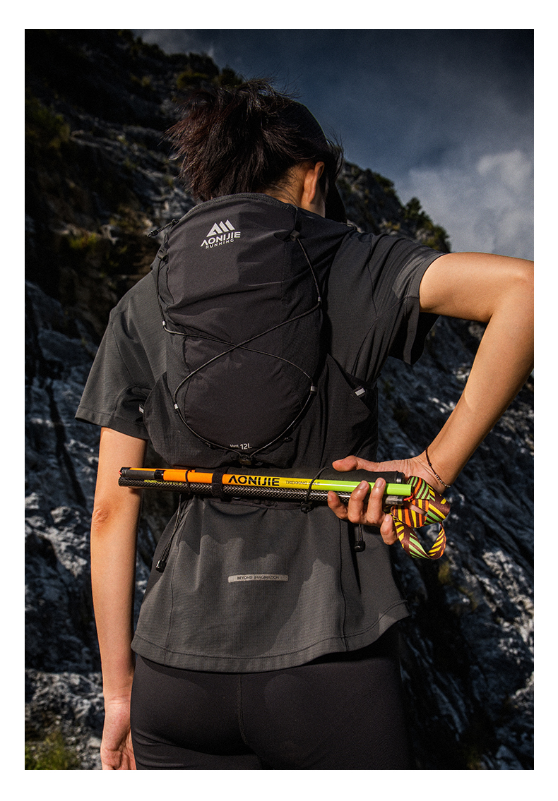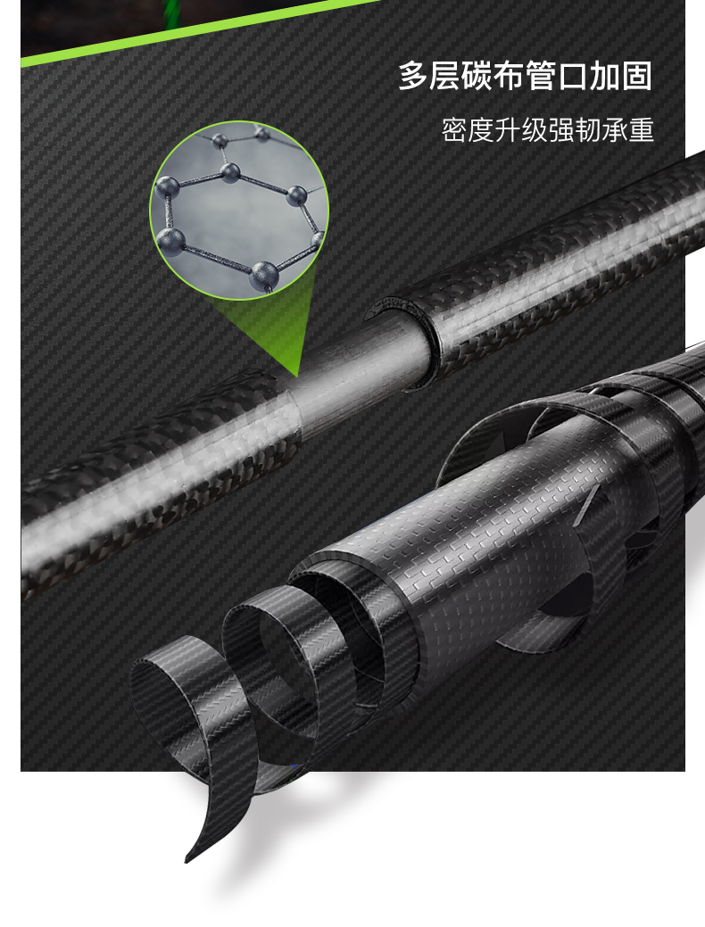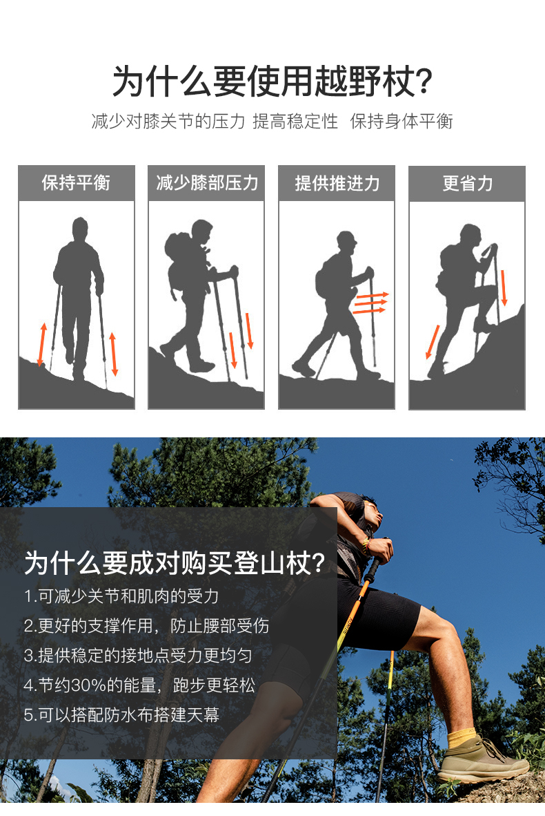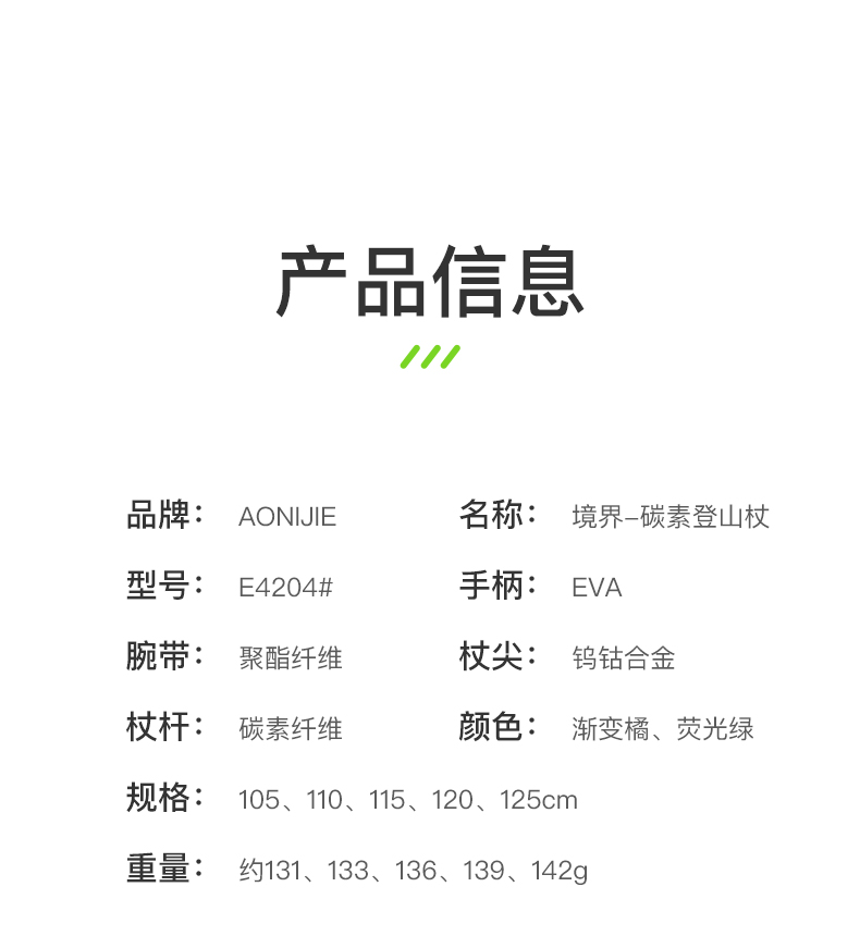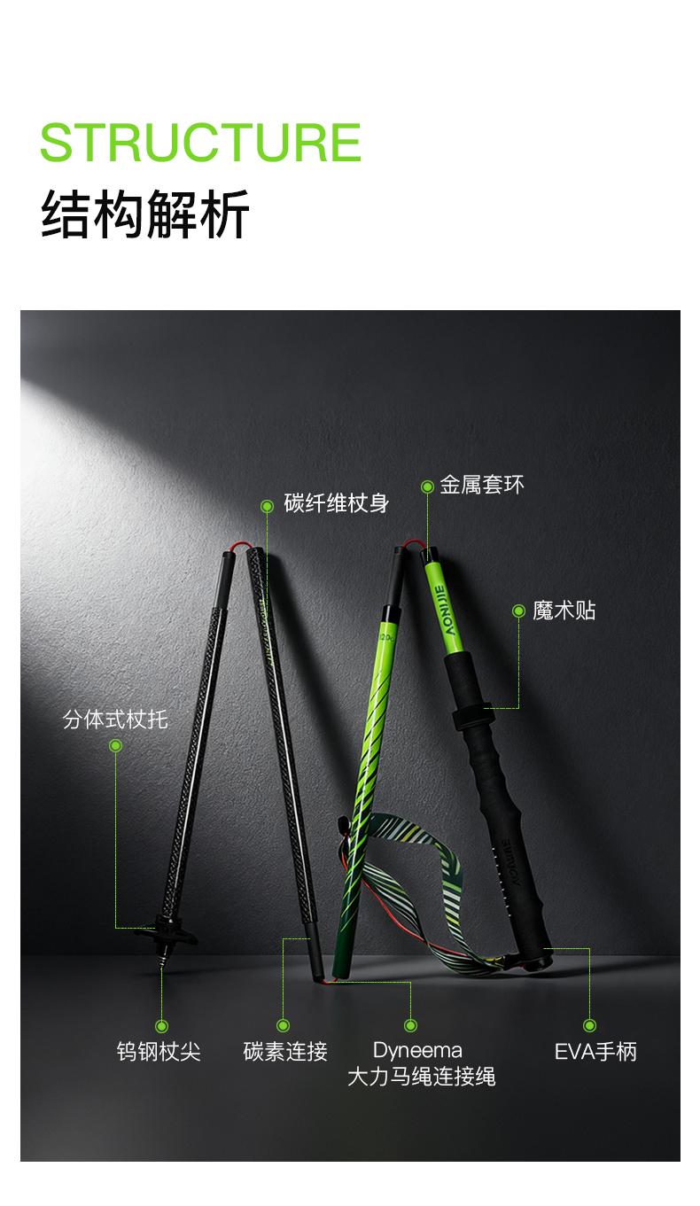 奥尼捷全碳素登山杖跑越野登山荧光绿轻量化四折叠登山越野徒步杖E4204 单根装
