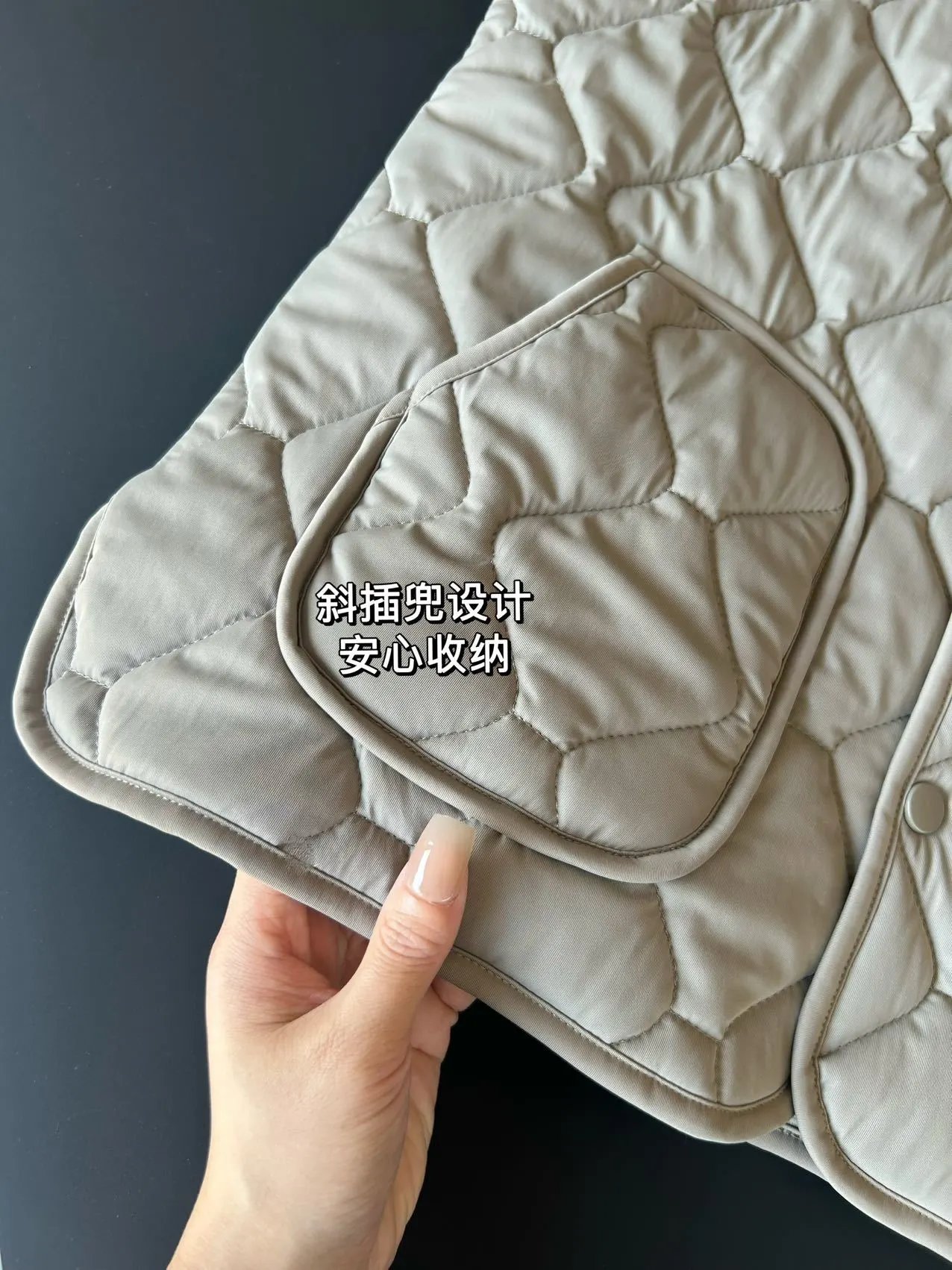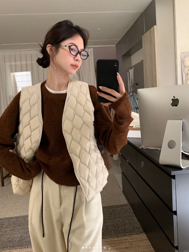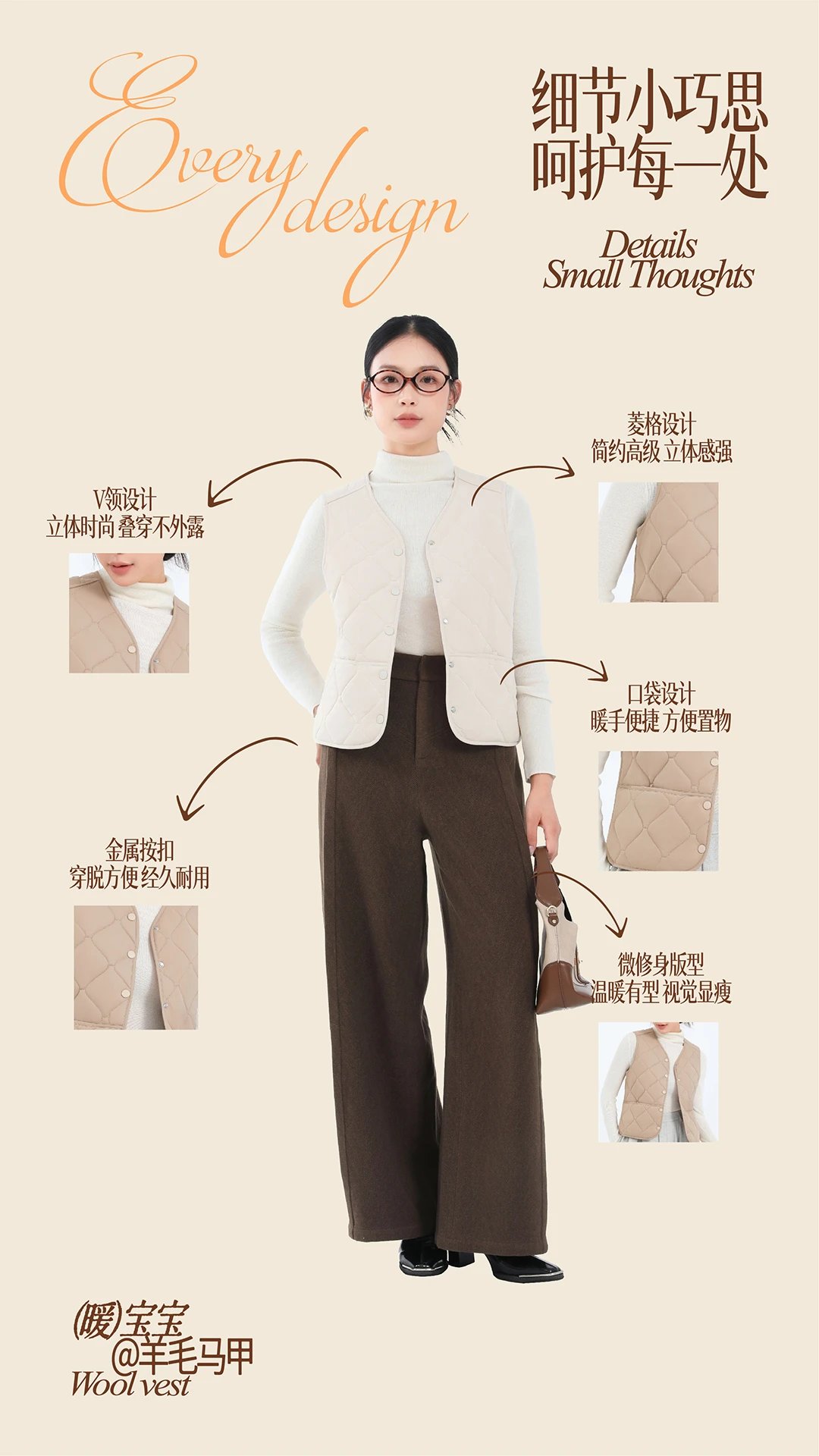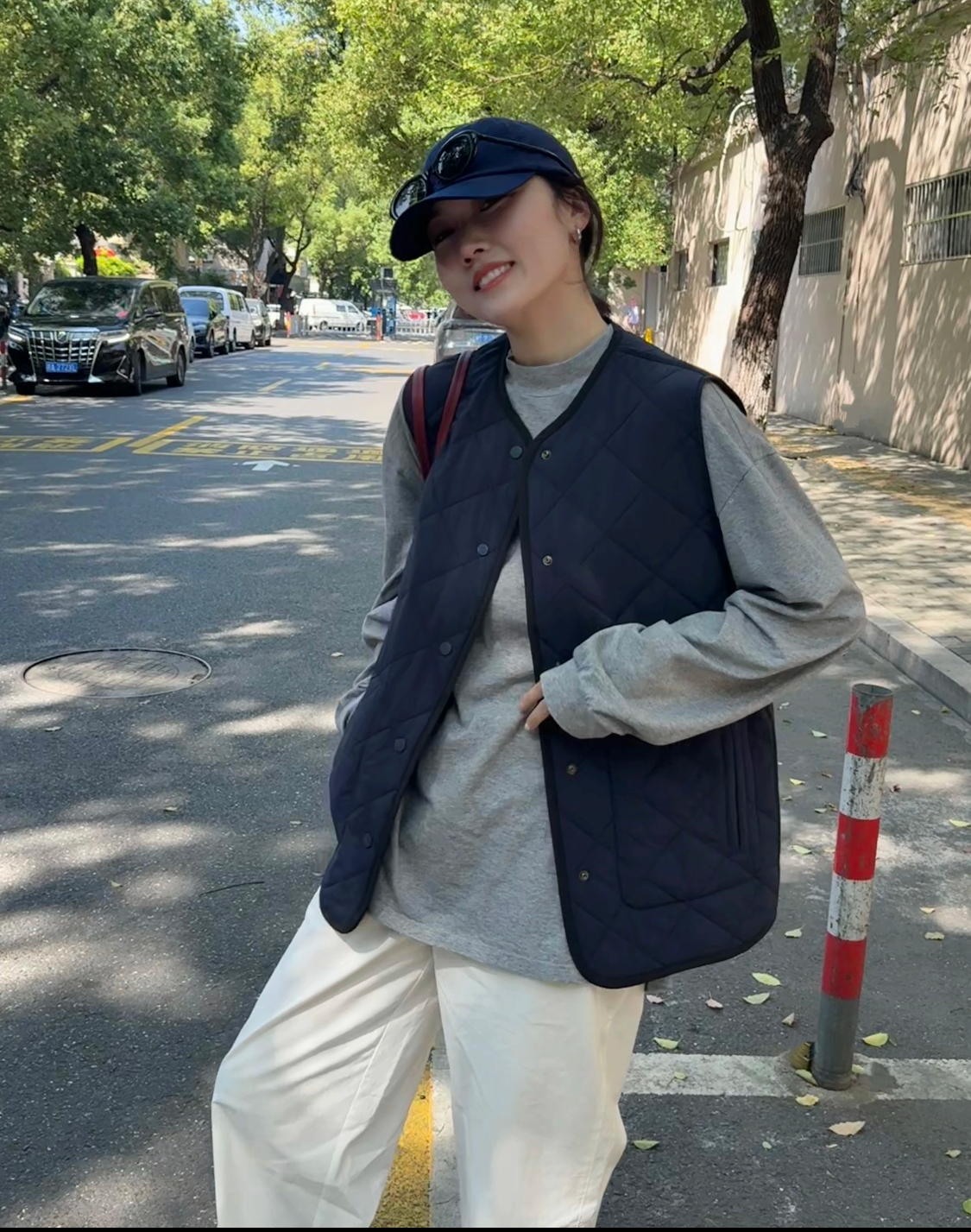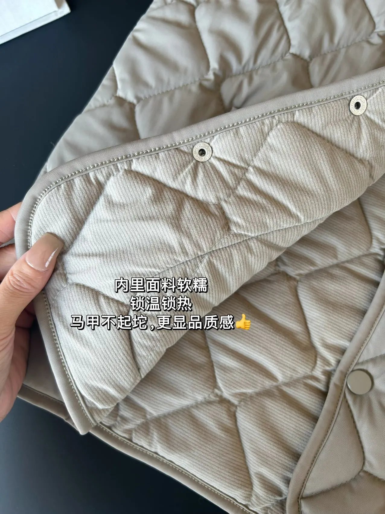 这样的马甲,可外穿,可内搭。近几年博主们也是人手N件,冬天穿大衣,内搭这样一件轻量感马甲,立即get层次感拉满、复古时髦又有设计感的穿搭风格。