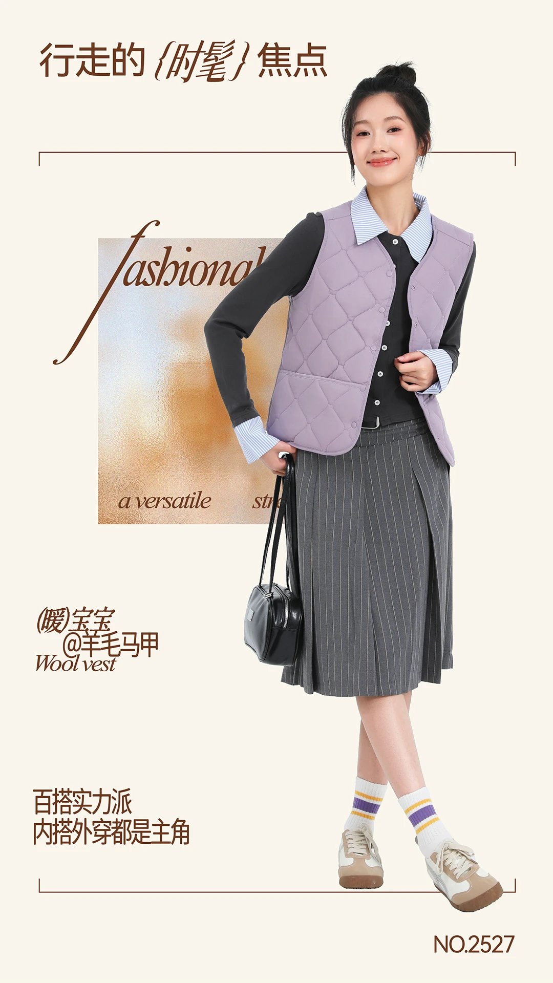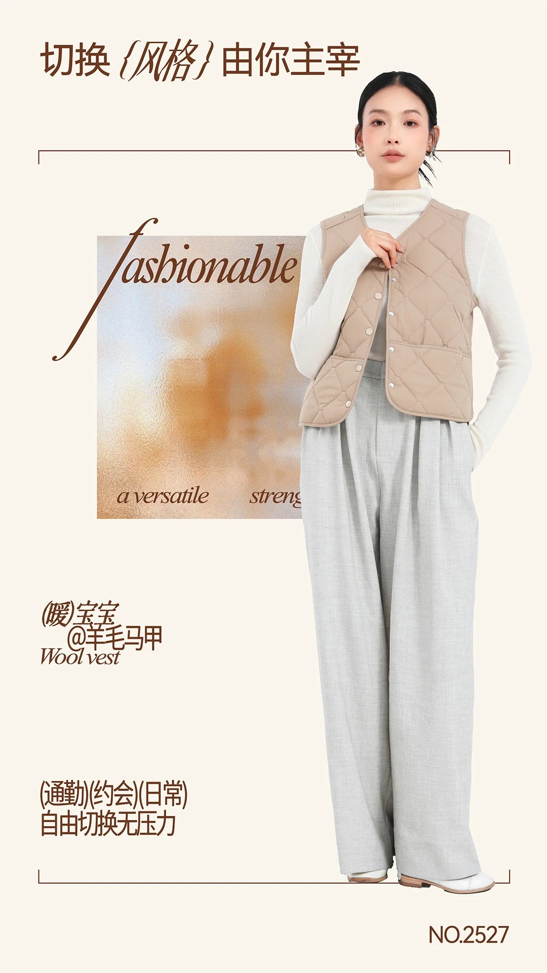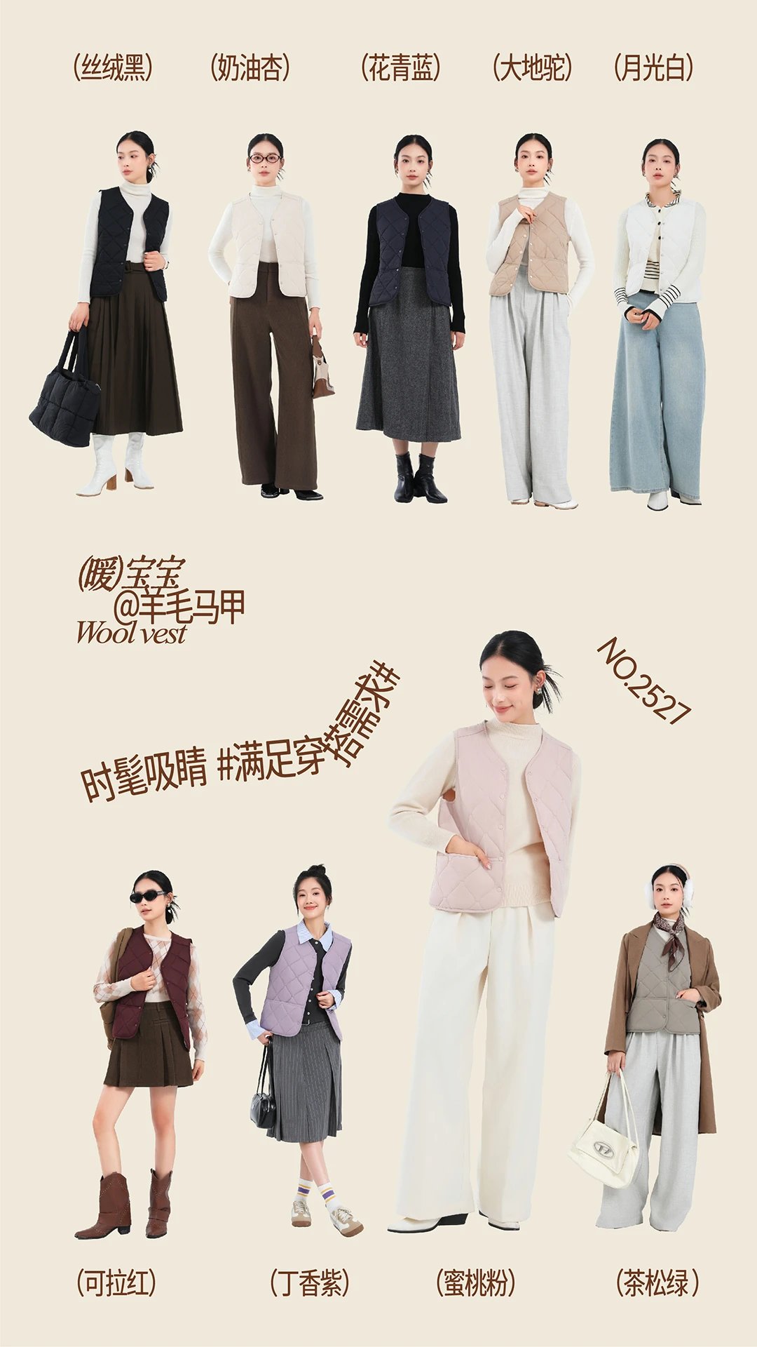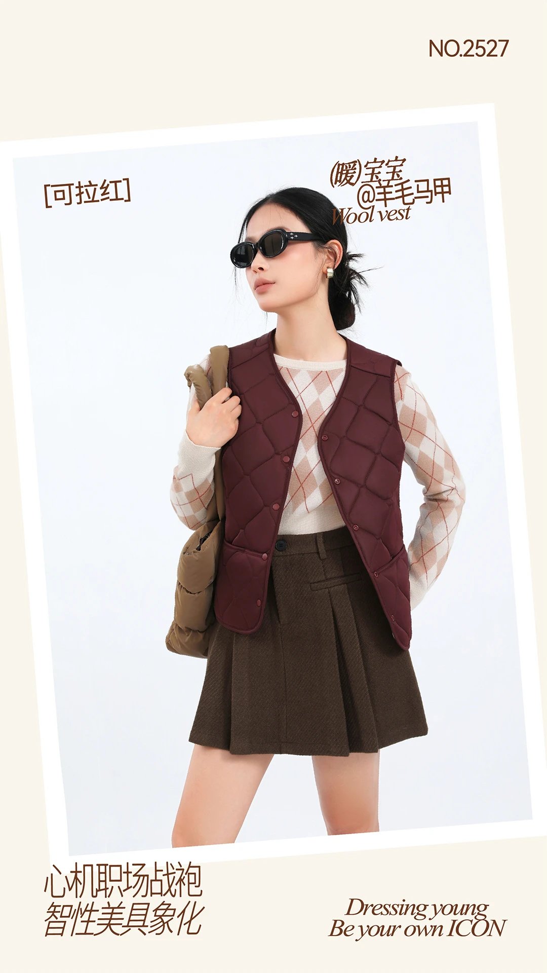 这样的马甲,可外穿,可内搭。近几年博主们也是人手N件,冬天穿大衣,内搭这样一件轻量感马甲,立即get层次感拉满、复古时髦又有设计感的穿搭风格。