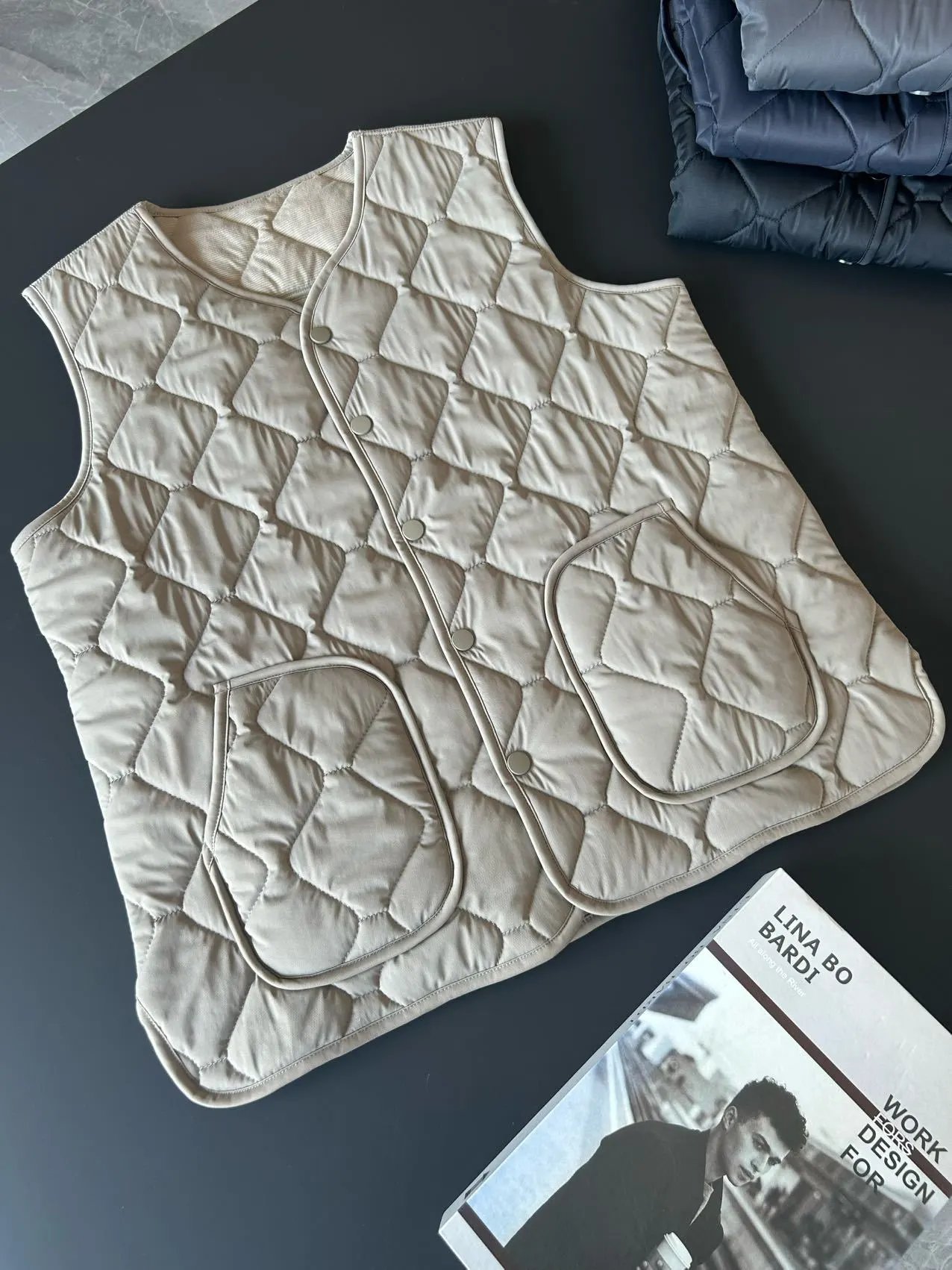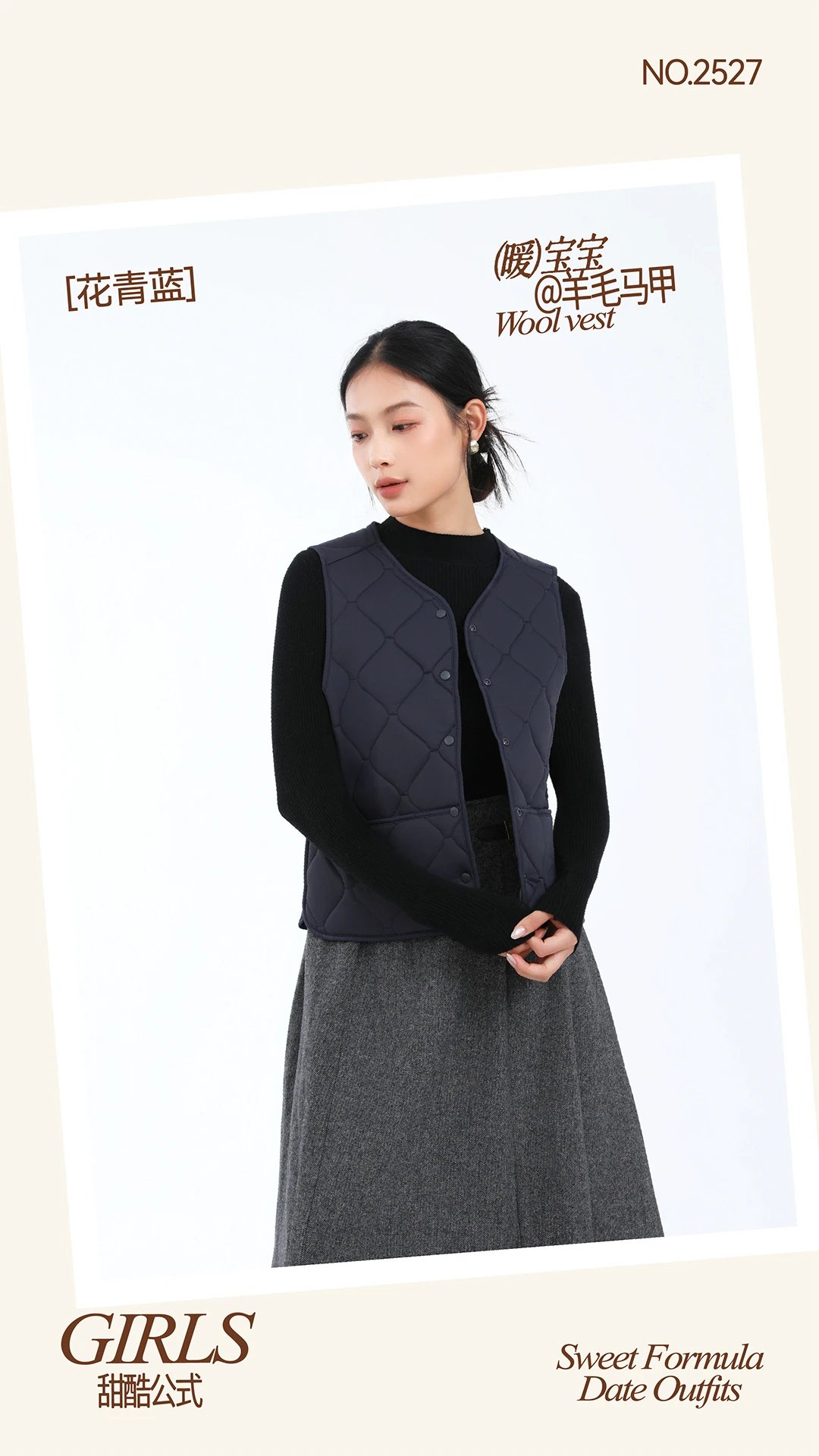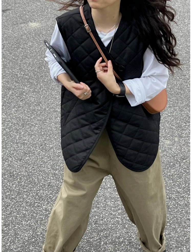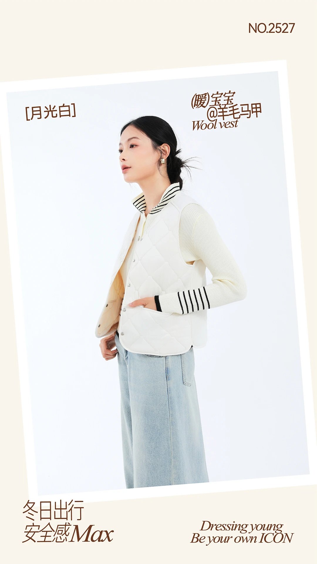 这样的马甲,可外穿,可内搭。近几年博主们也是人手N件,冬天穿大衣,内搭这样一件轻量感马甲,立即get层次感拉满、复古时髦又有设计感的穿搭风格。