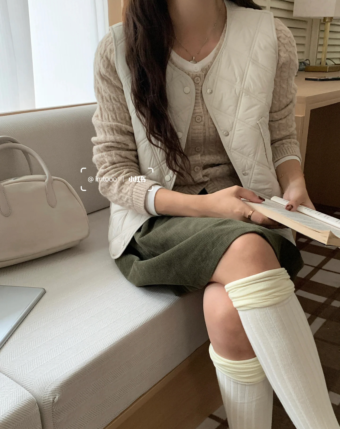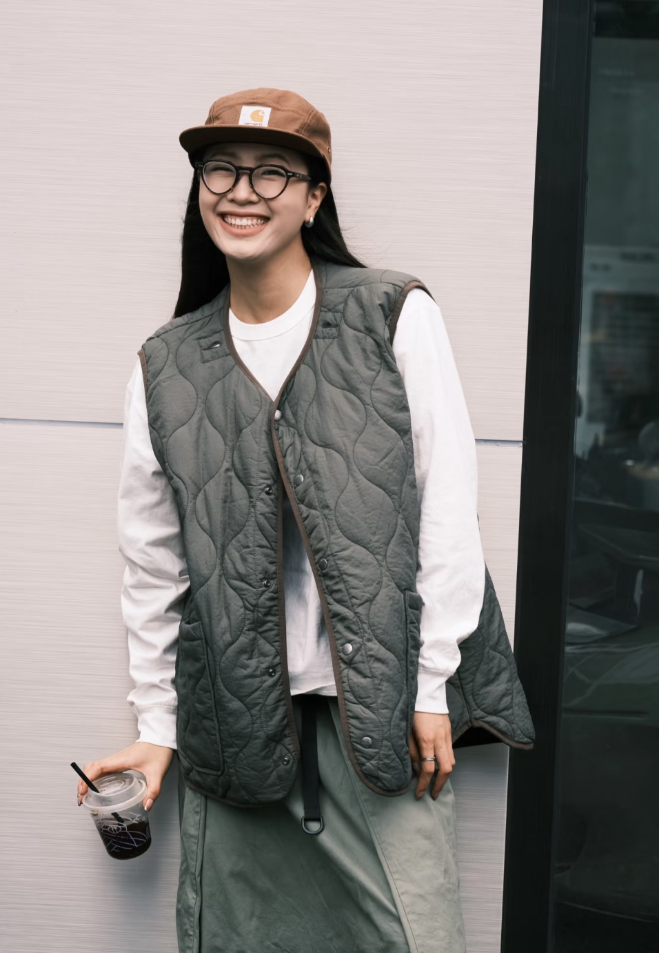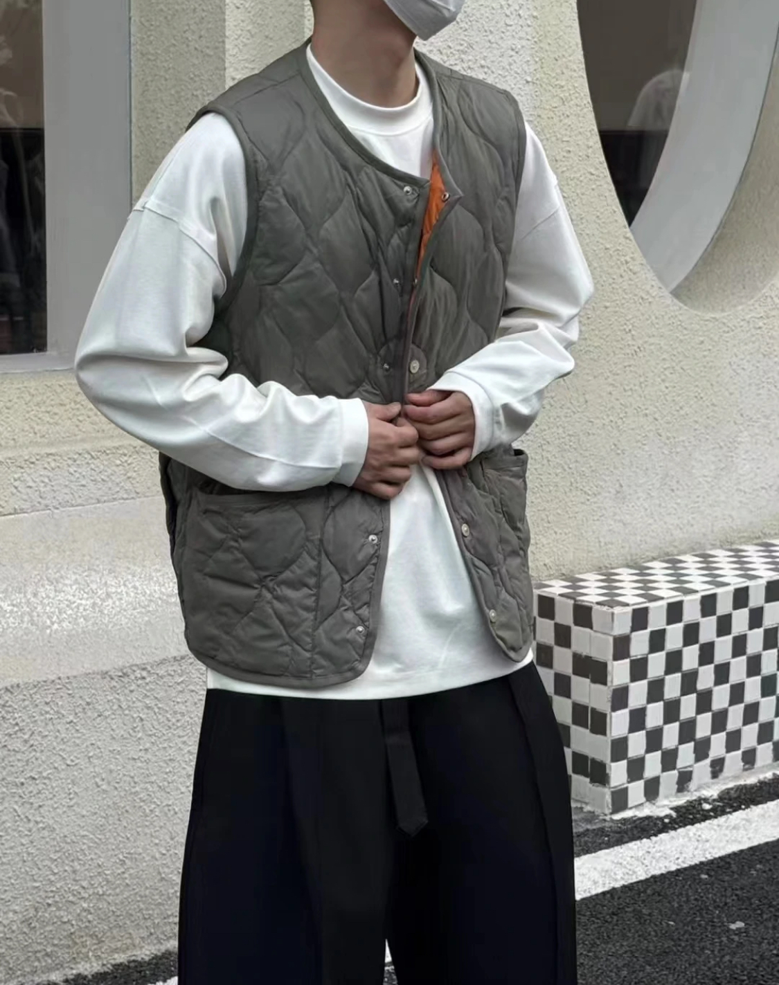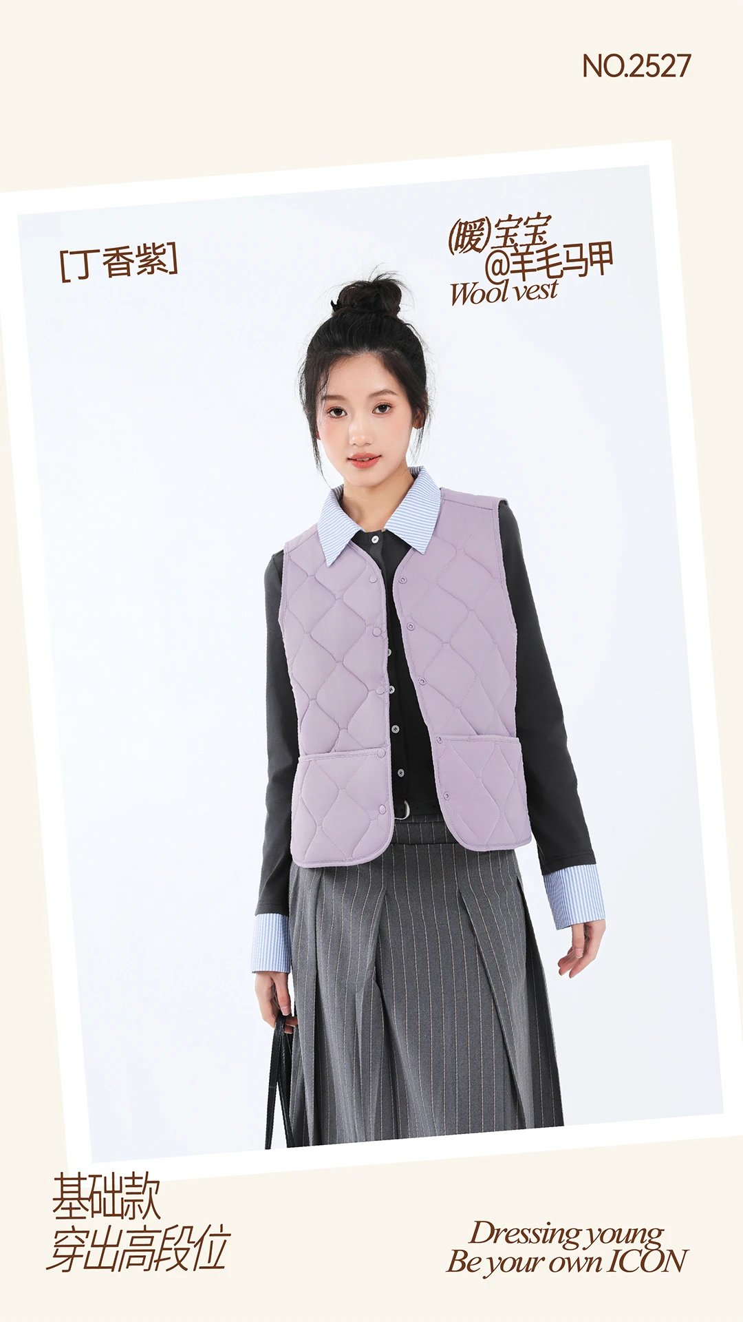 这样的马甲,可外穿,可内搭。近几年博主们也是人手N件,冬天穿大衣,内搭这样一件轻量感马甲,立即get层次感拉满、复古时髦又有设计感的穿搭风格。