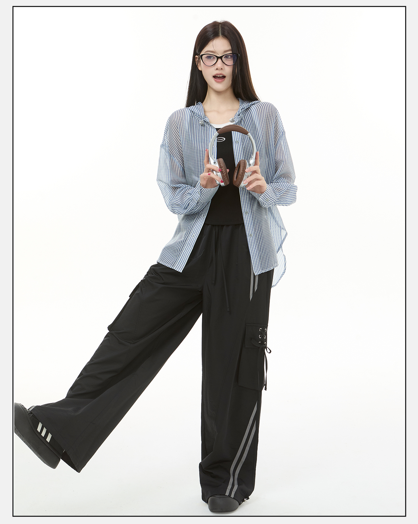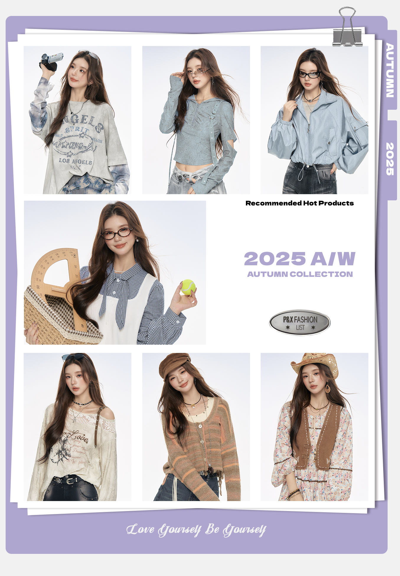 P&X设计师女装2025秋季衬衫格子宽松连帽衬衣 825205079A 蓝格