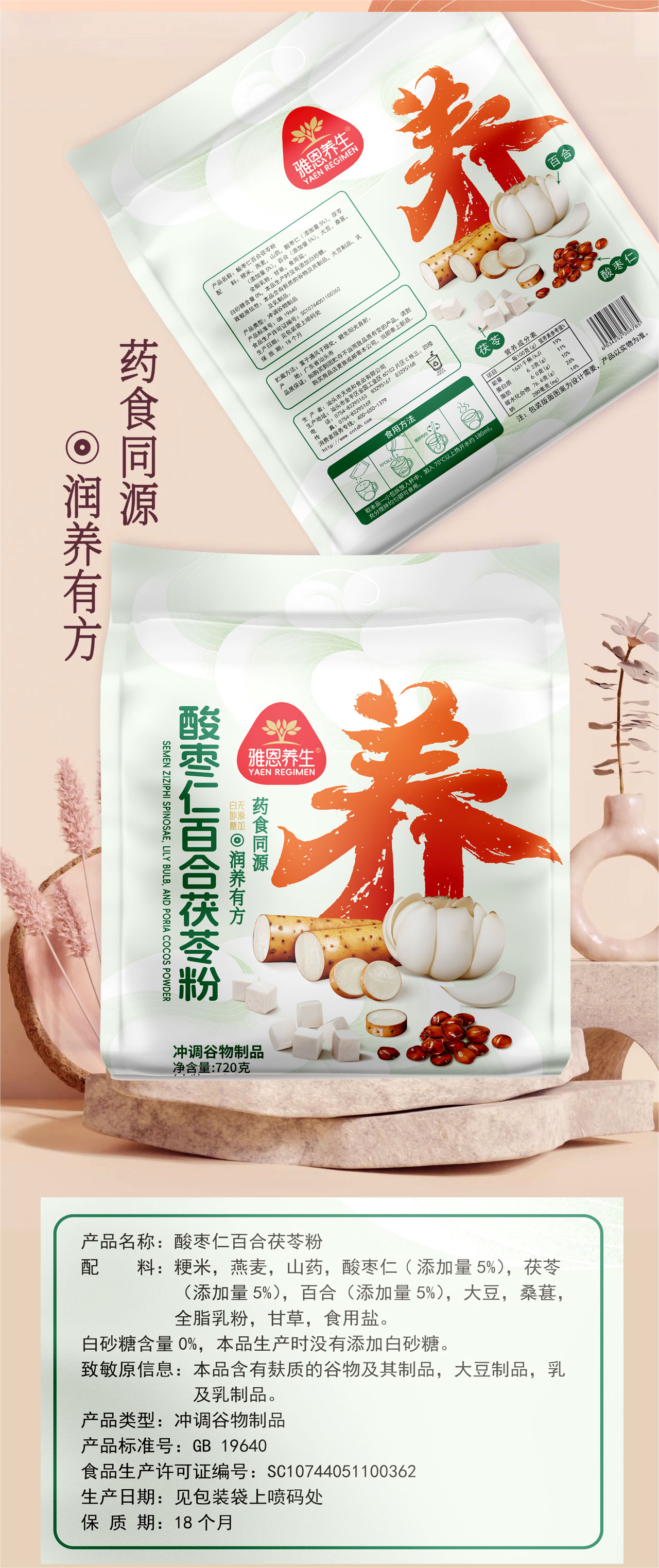 【2袋减10元】酸枣仁百合茯苓粉 精选原料 科学配方 冲泡即食 720克/袋