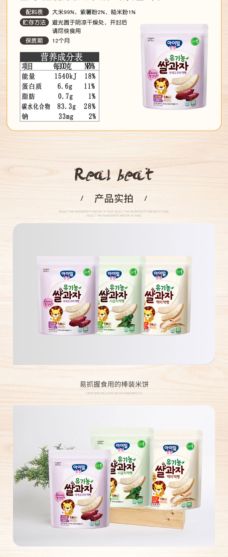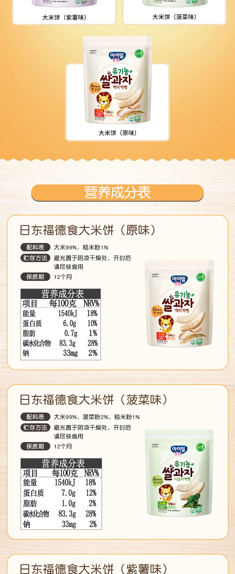 日东福德食 宝宝大米饼6月龄+ 韩国原装进口 不添加糖和食盐