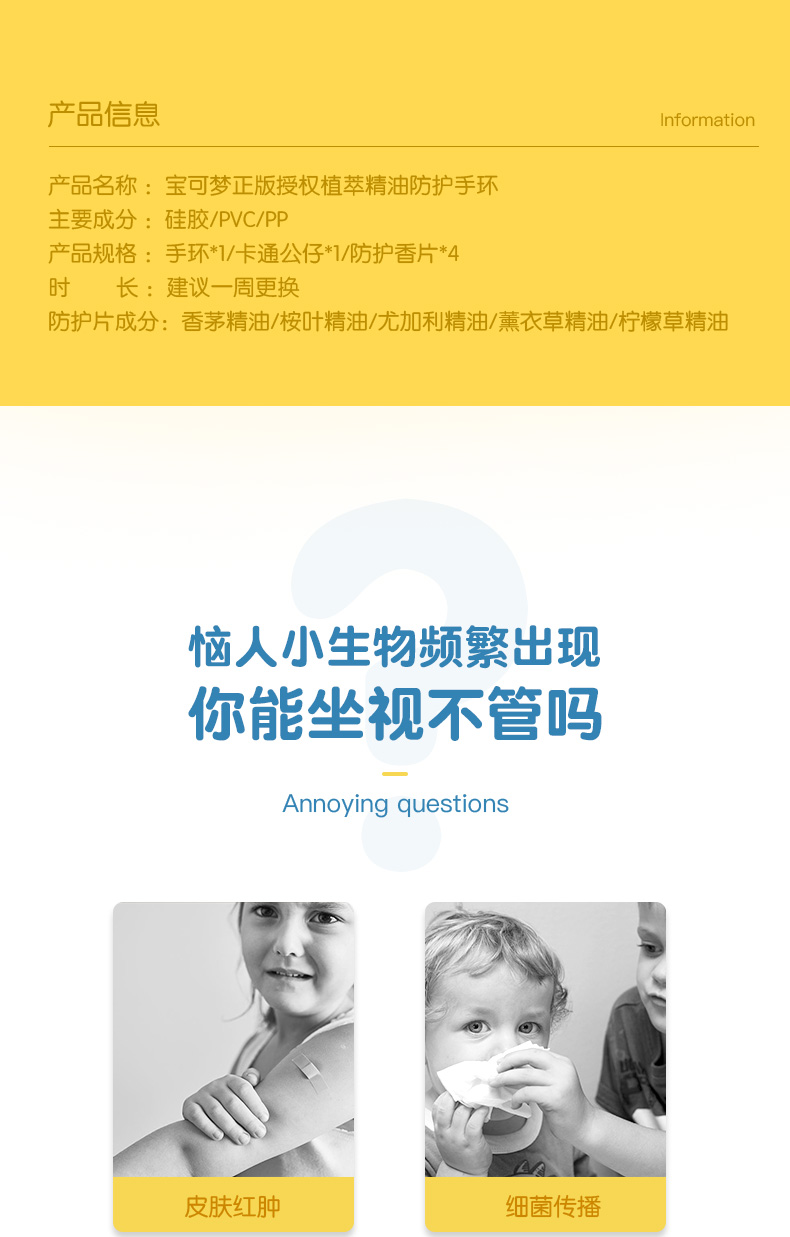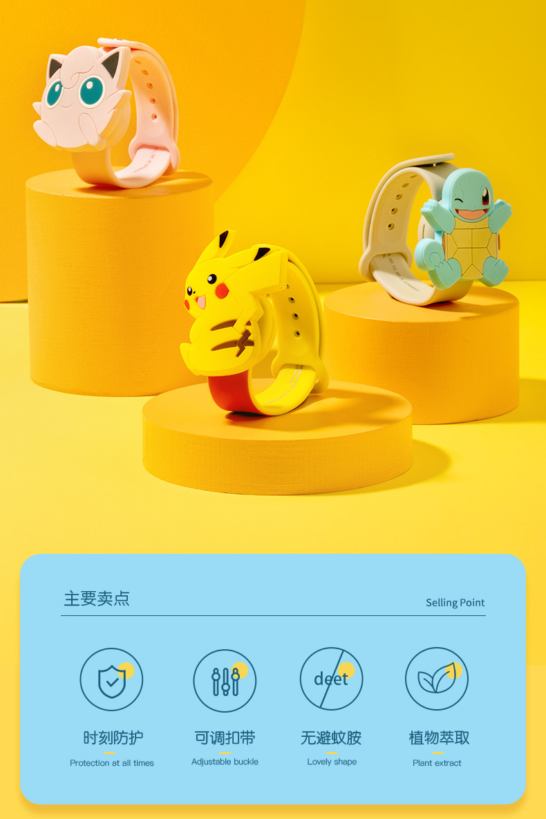 艾优宝可梦驱蚊手环儿童婴儿大人植萃精油防护手环随身户外防蚊虫