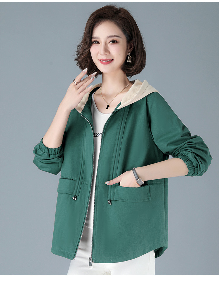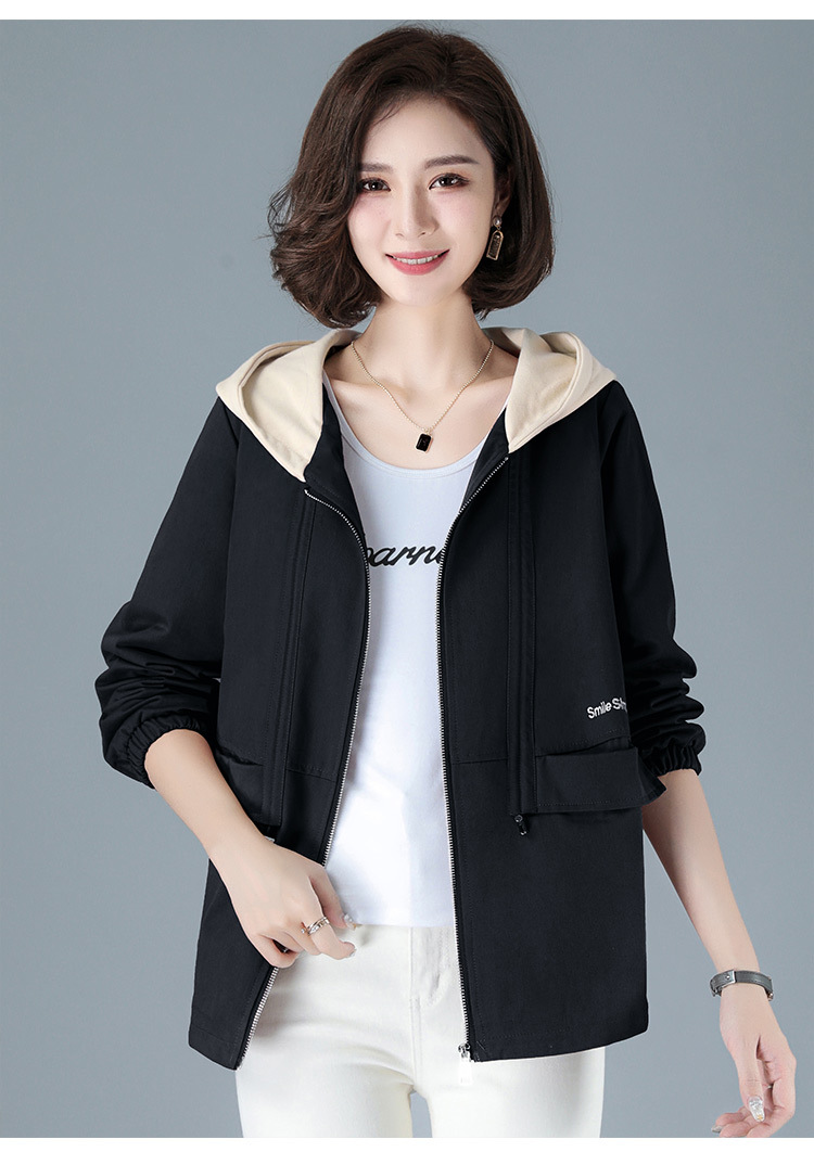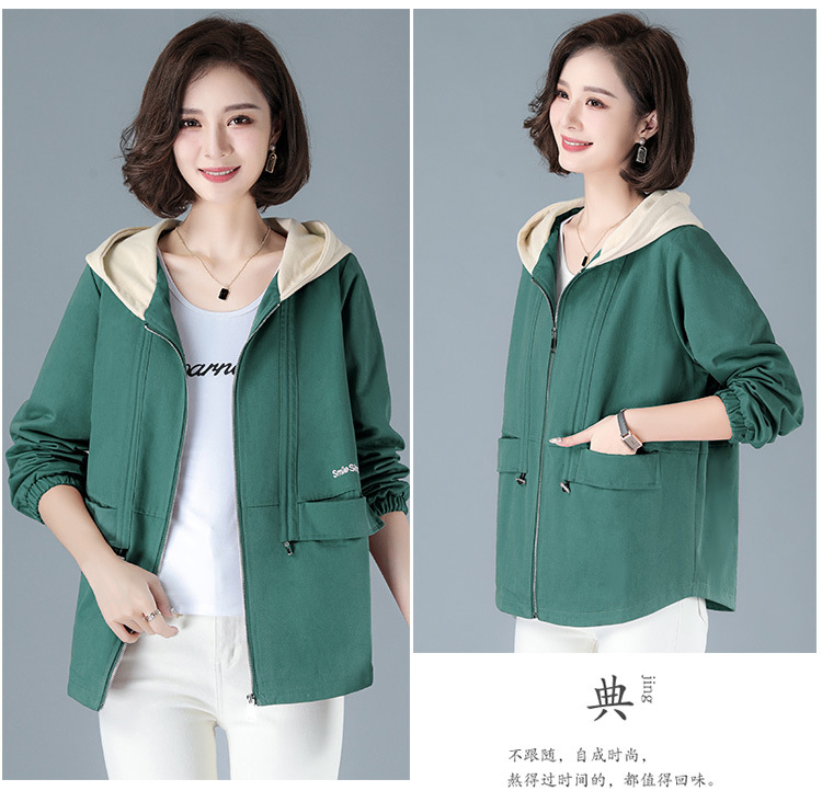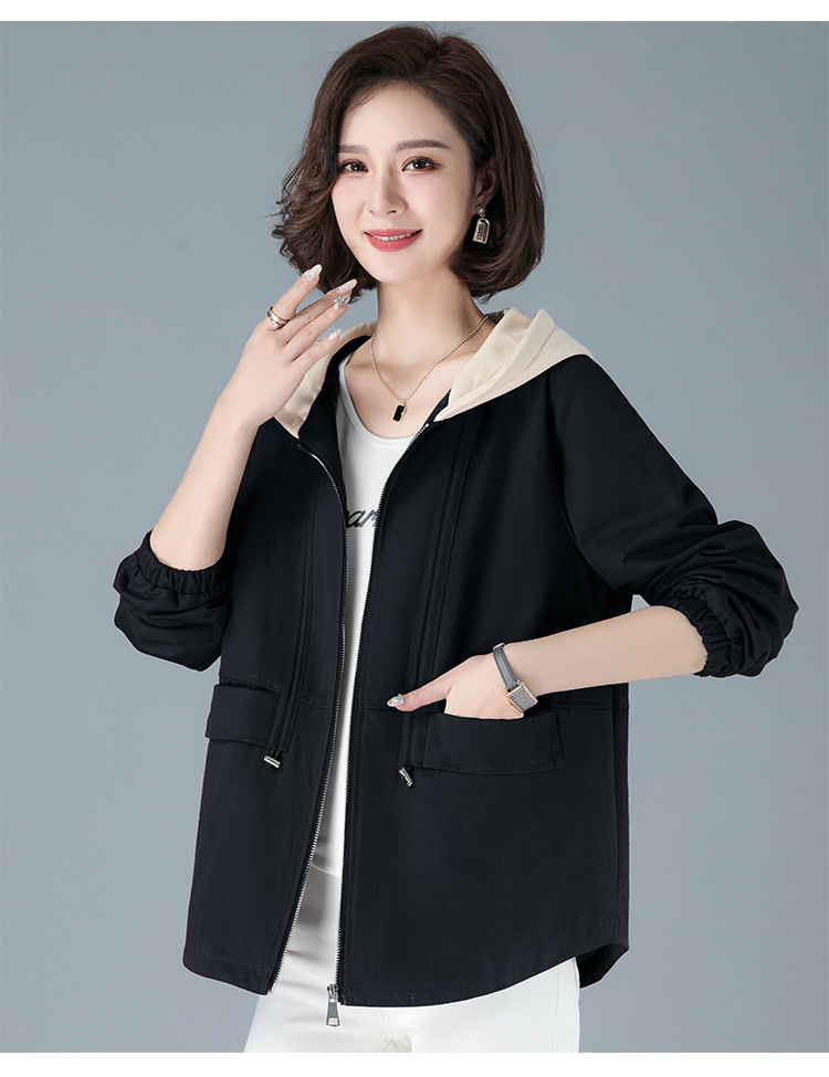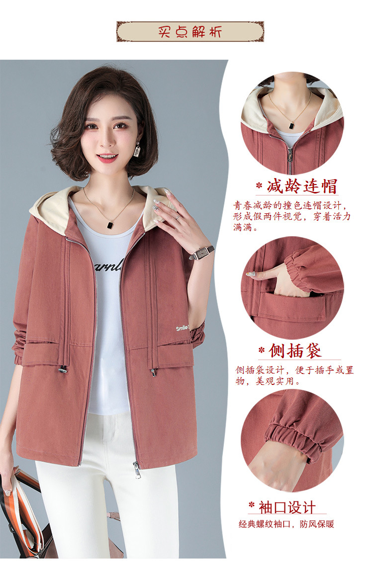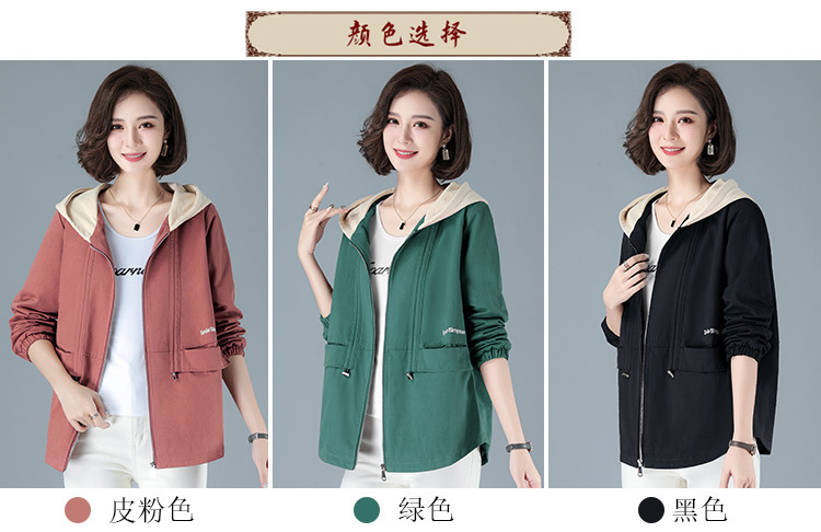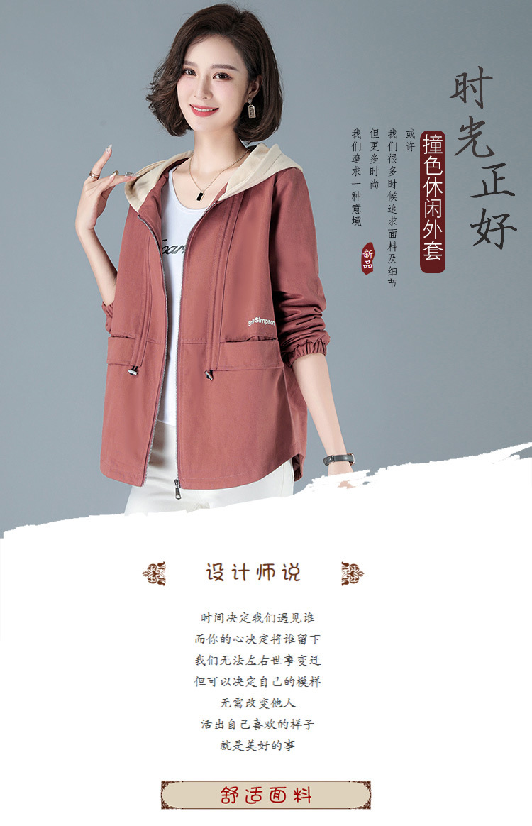 2023年新款女时尚撞色连帽中年妈妈春秋外套HTN-E05-1353