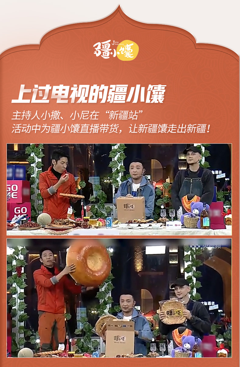 - 疆小馕,舌尖上的新疆!优选天山北坡雪水浇灌特级小麦粉,和田重瓣有机玫瑰,沙湾辣椒与温宿185核桃仁,糅合成新疆特色美食-疆小馕,让世界尝尝新疆的味道!