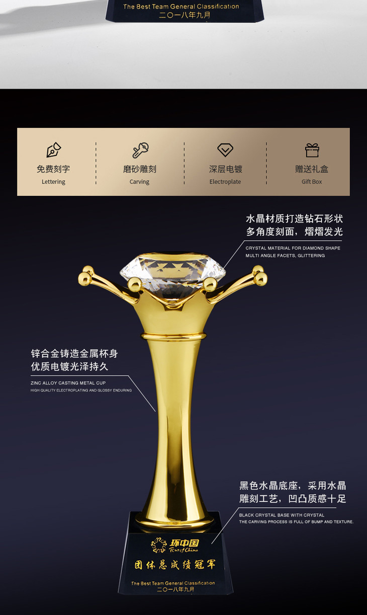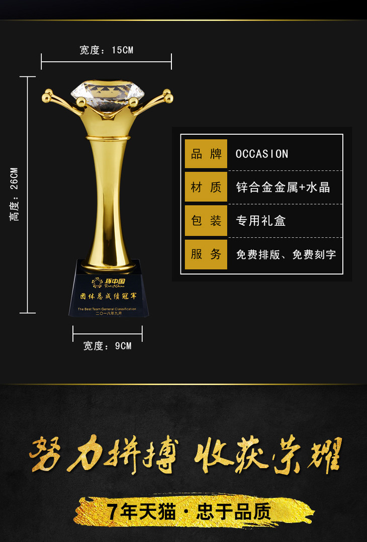 金属奖杯定制定做大号冠军水晶奖杯高档优秀员工奖杯颁奖奖品制作