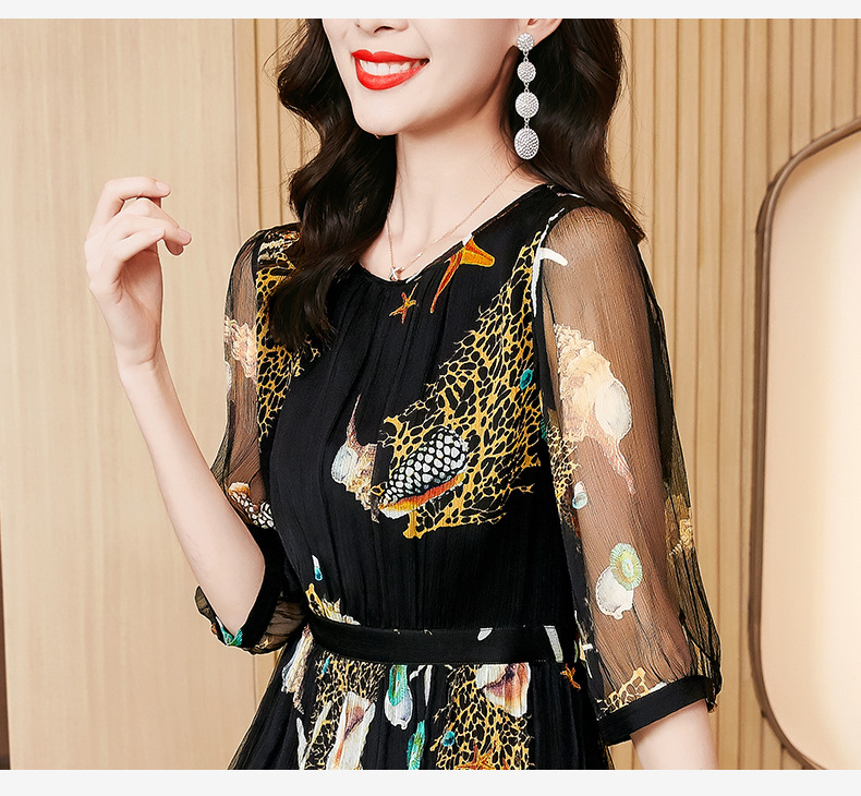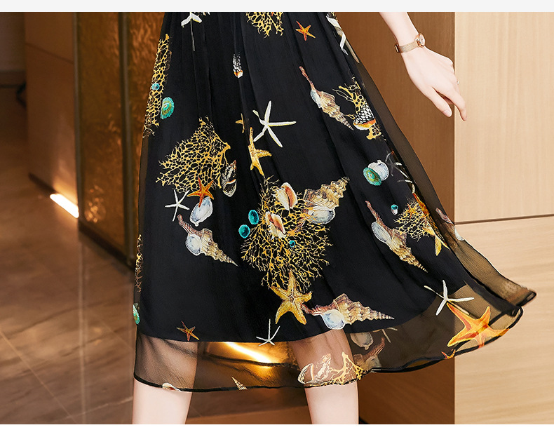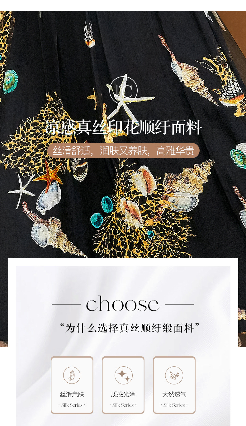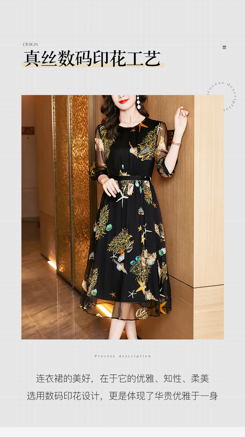 大码10姆米真丝数码印花顺纡缎连衣裙,2022夏季新款桑蚕丝中长裙SM-82298363