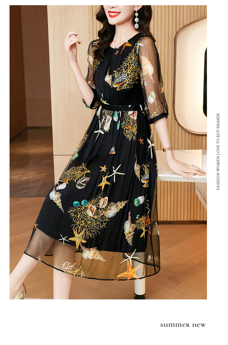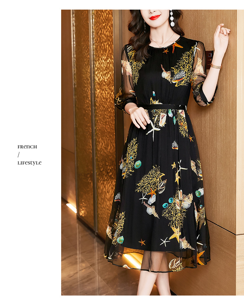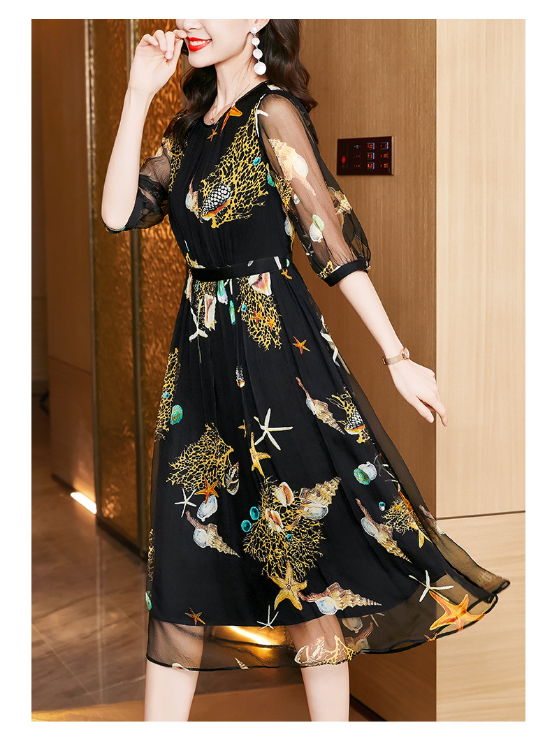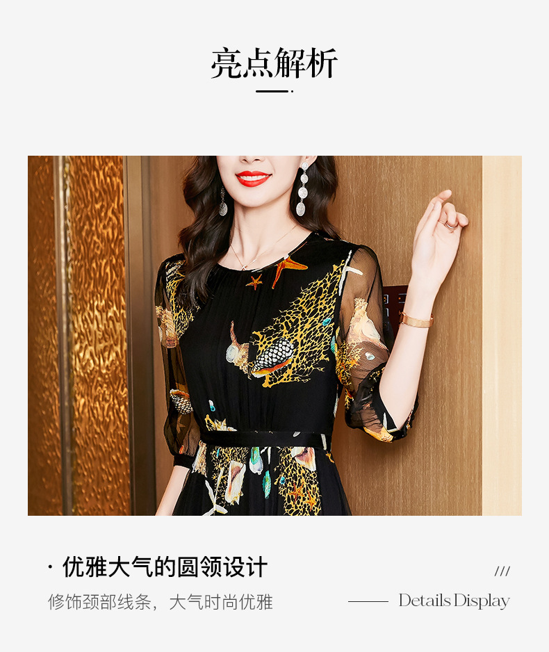 大码10姆米真丝数码印花顺纡缎连衣裙,2022夏季新款桑蚕丝中长裙SM-82298363